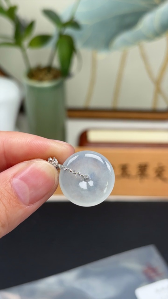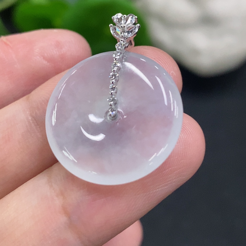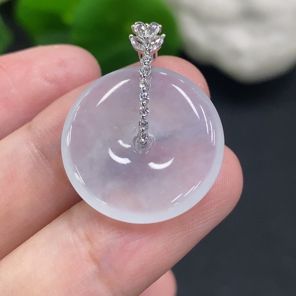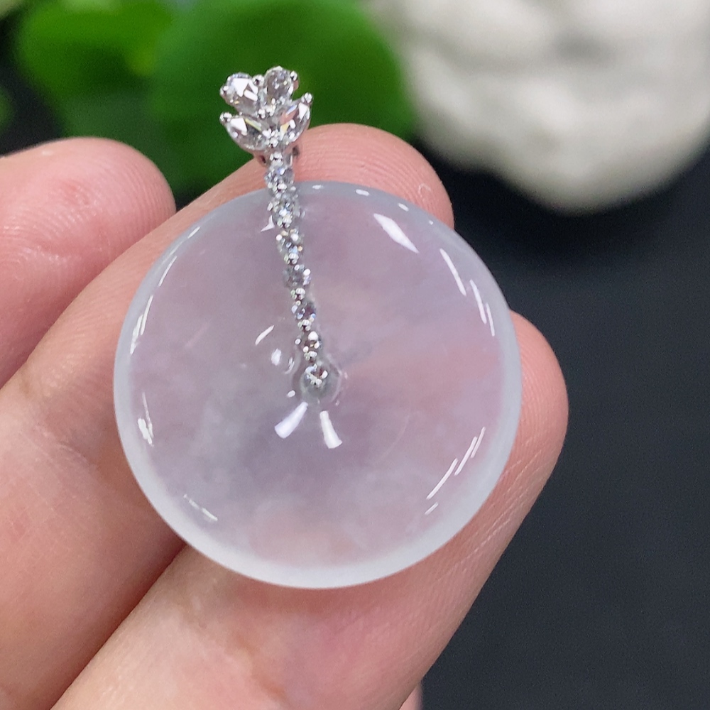 Jadeite Safety Pendant with 18K Gold Clasp, Total Weight Approx. 4g, Diamond Accents