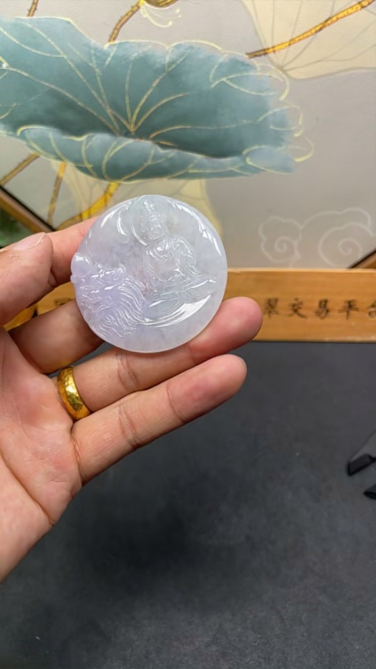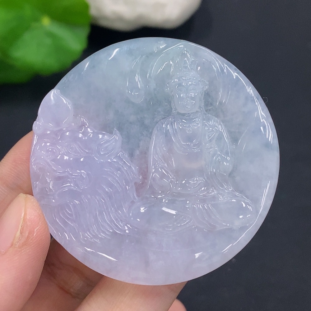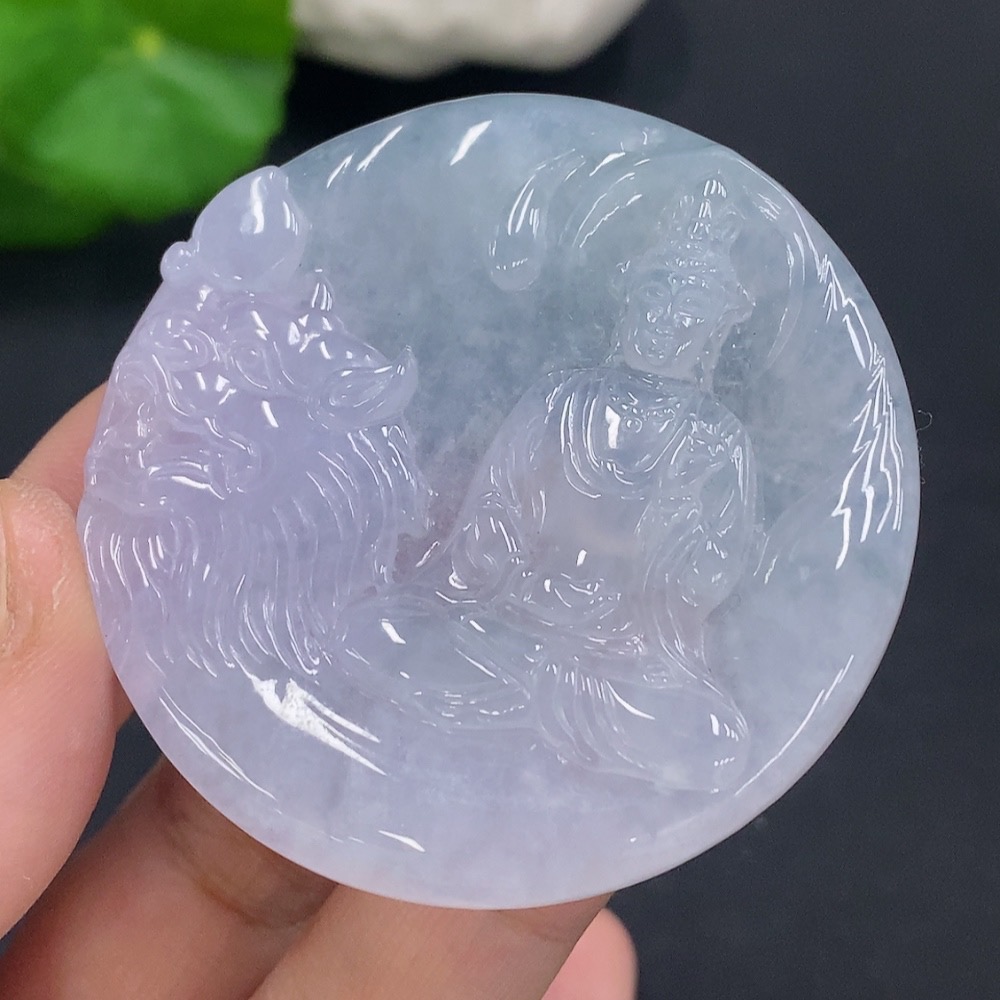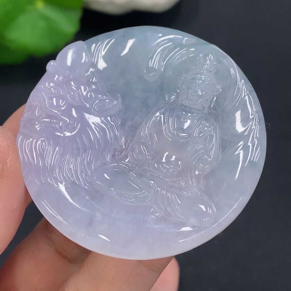 Jadeite Manjusri Bodhisattva Pendant Total Weight About 32.5g