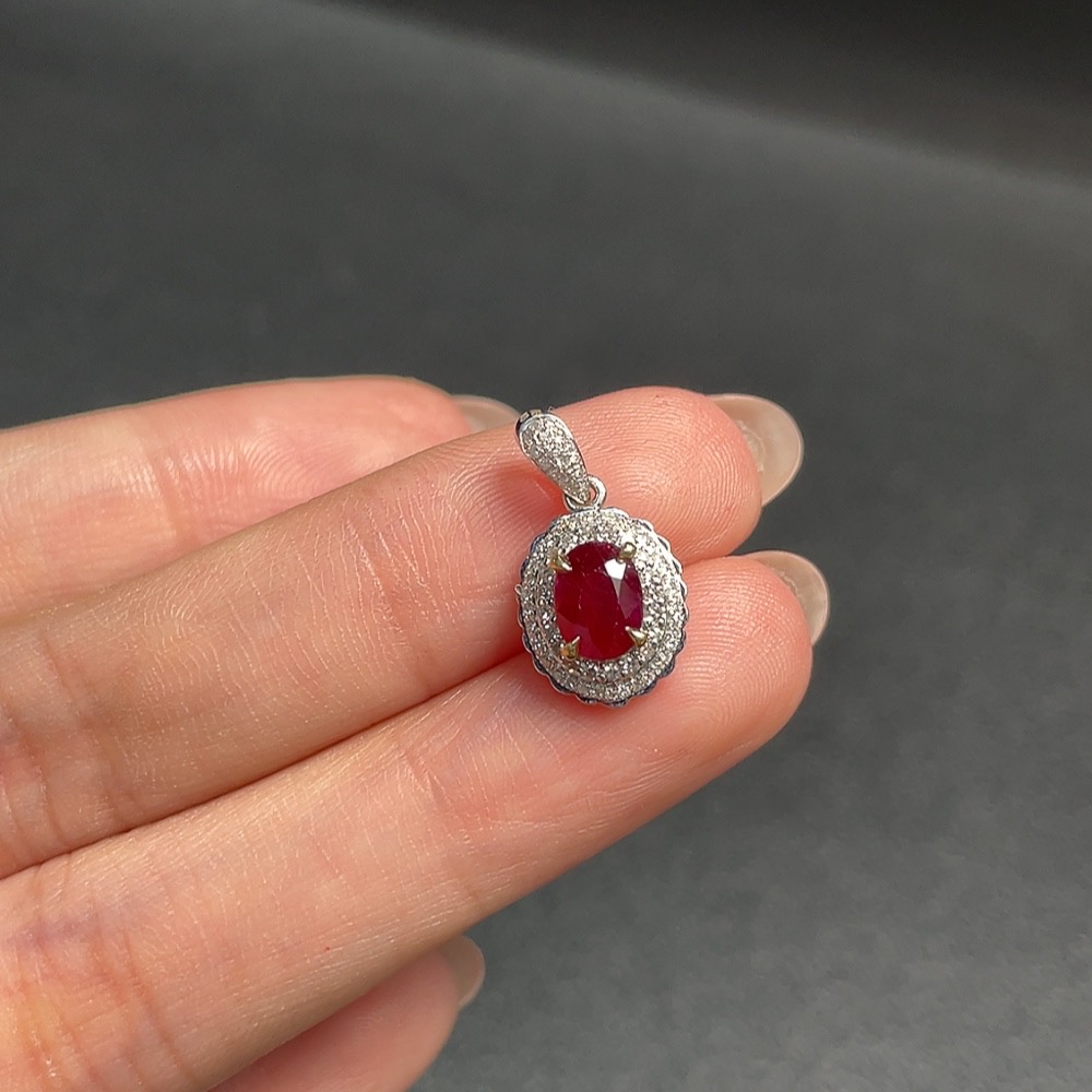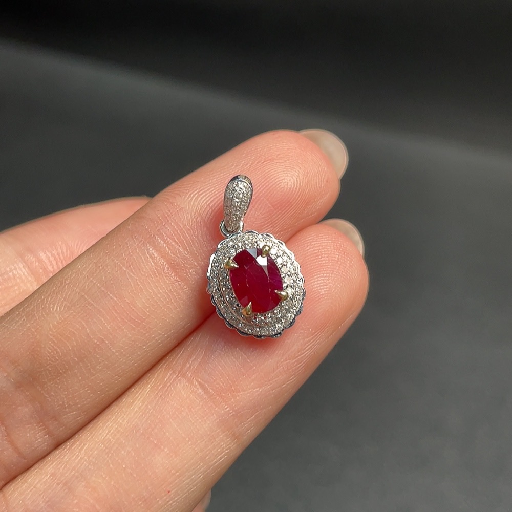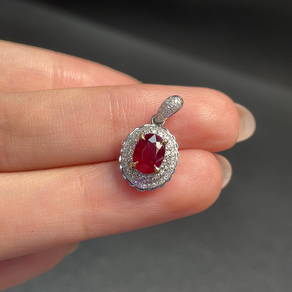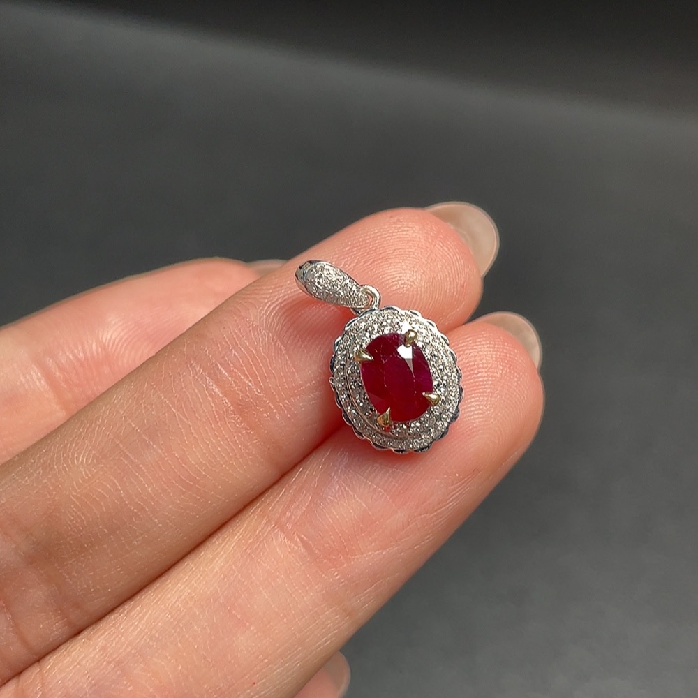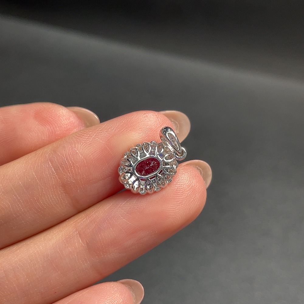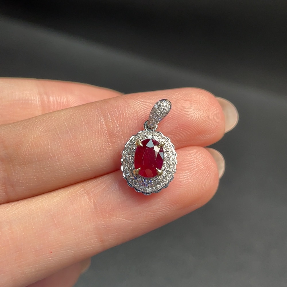 18K Gold Ruby Pendant with Diamond Accents, Total Weight Approx. 1.48g