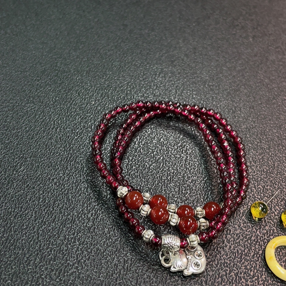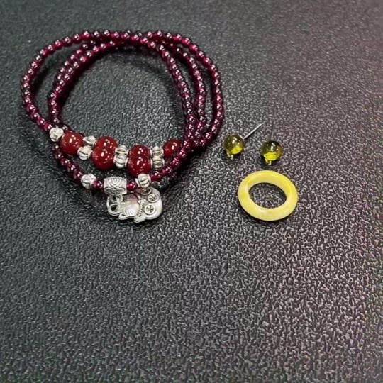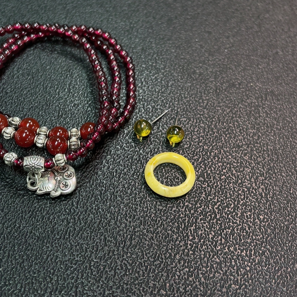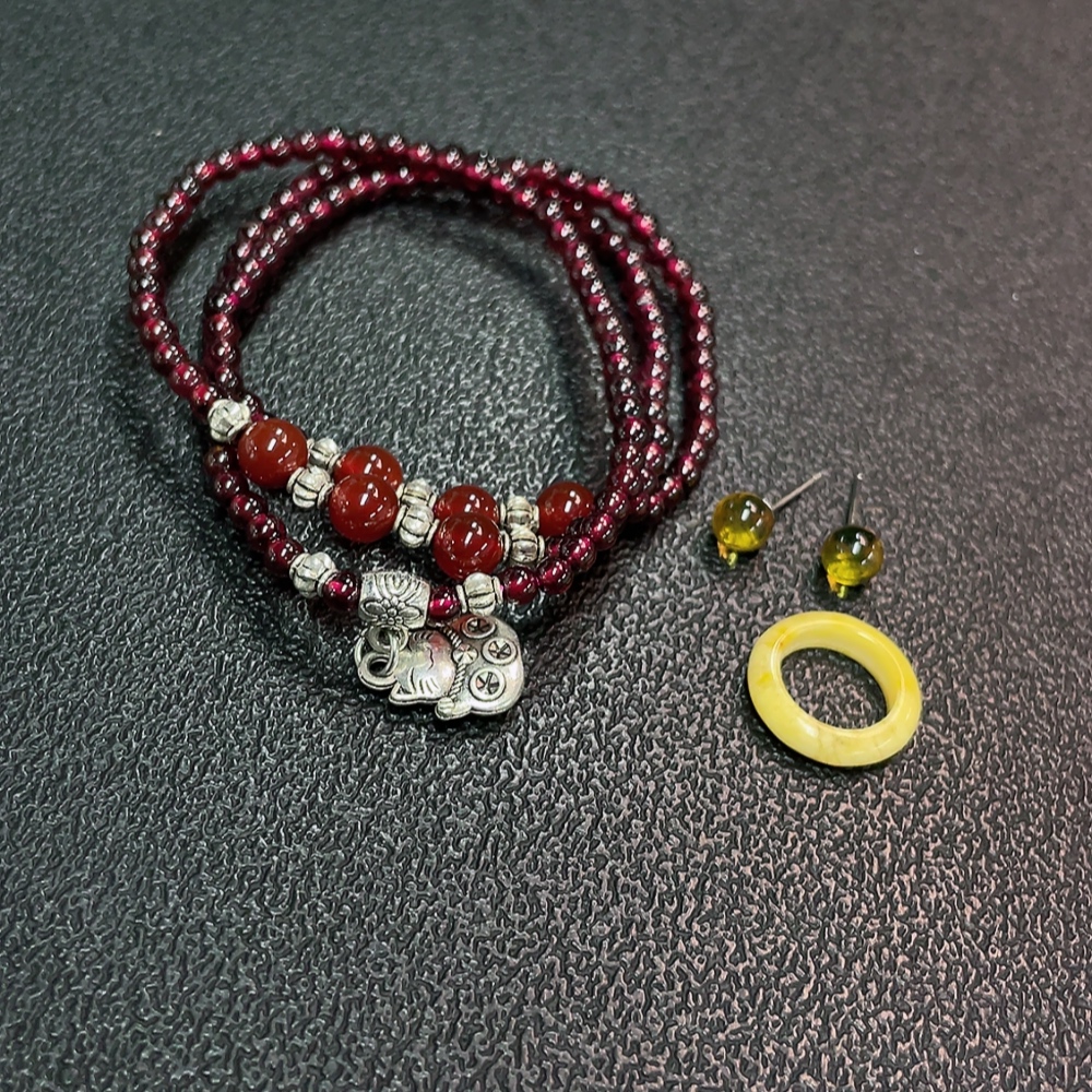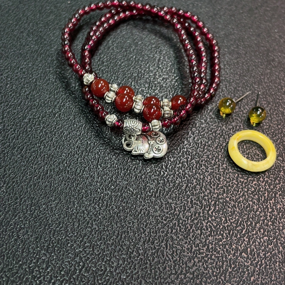 Garnet + Amber Jewelry (Non-natural matching stones, Non-gold, Total weight approx. 18.64g, Sell as a Lot)