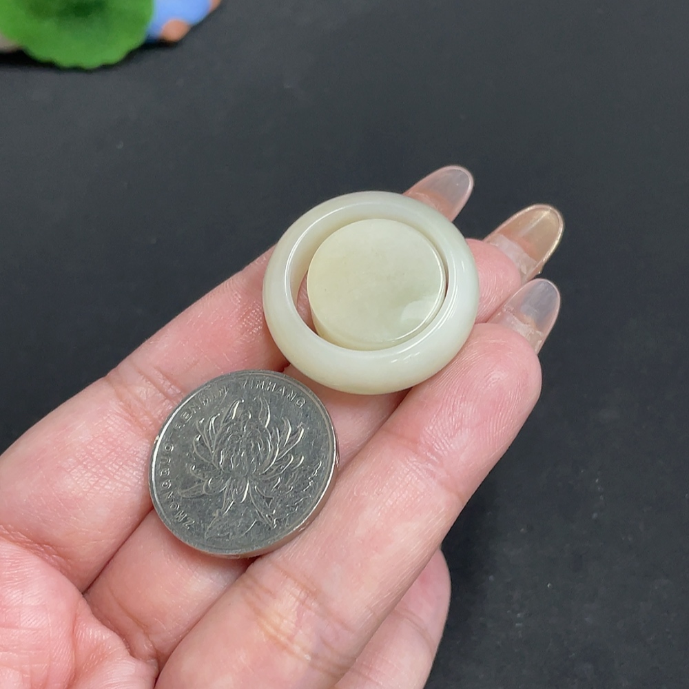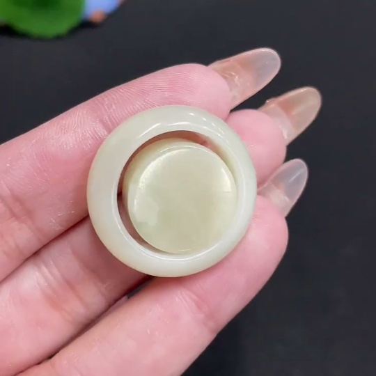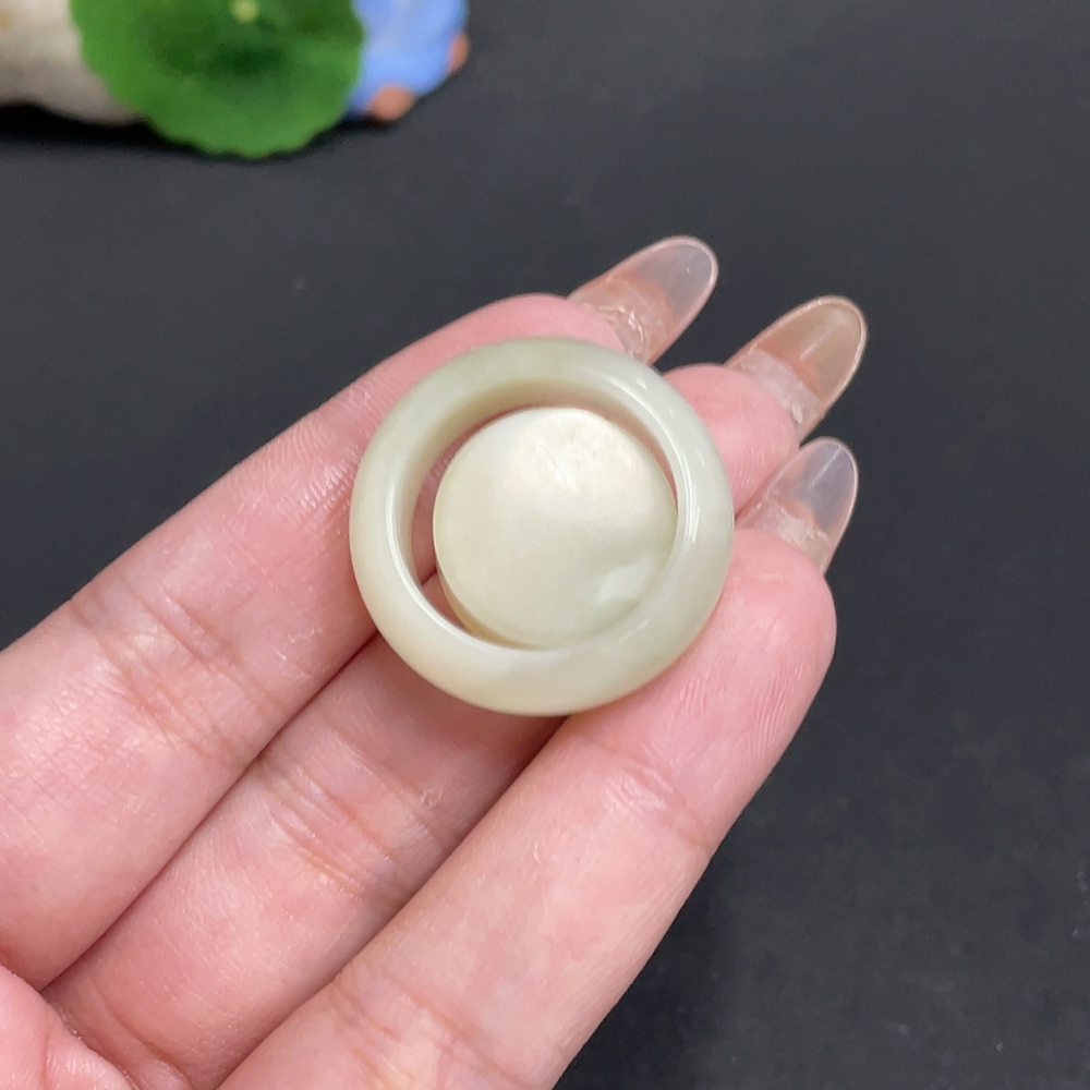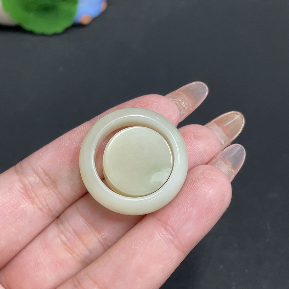 Hetian Jade Pendant Ring, Total Weight Approx. 11.9g