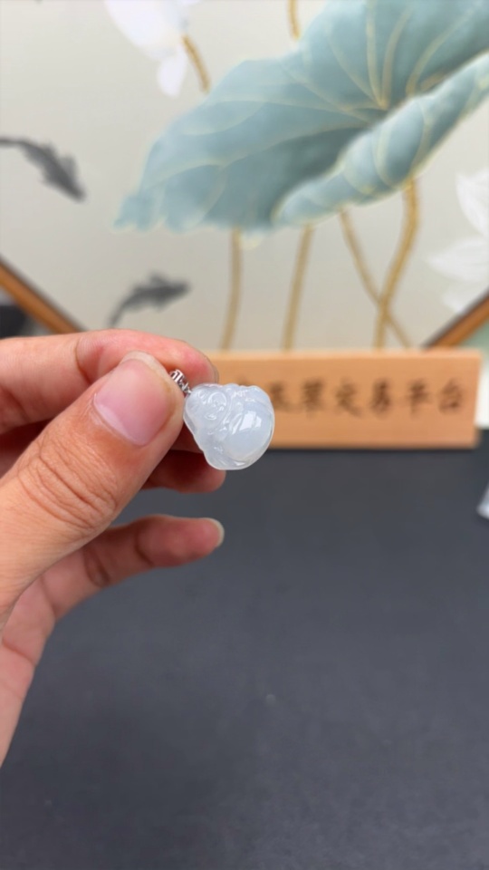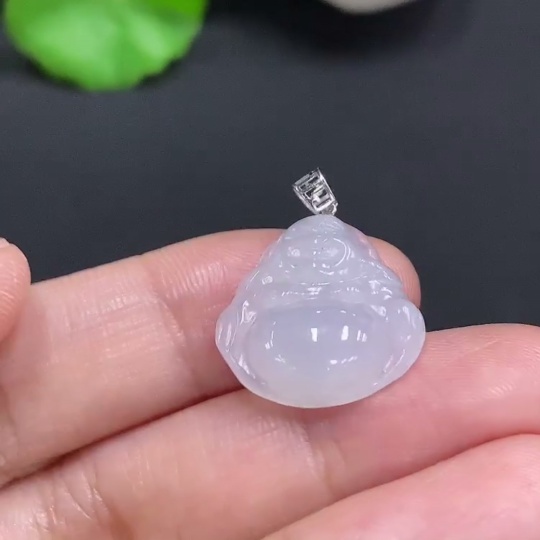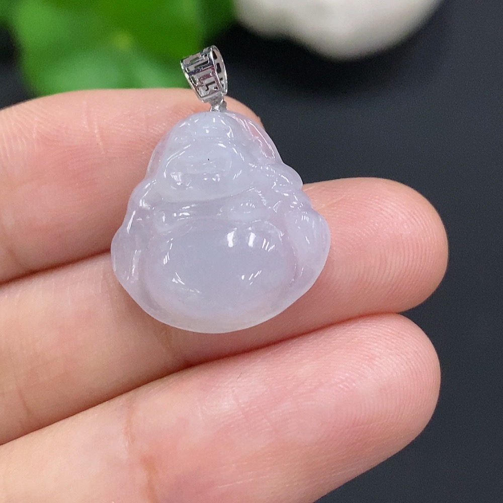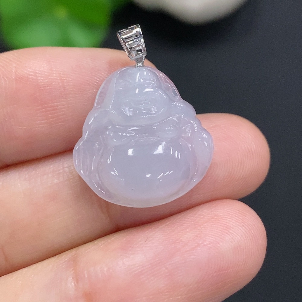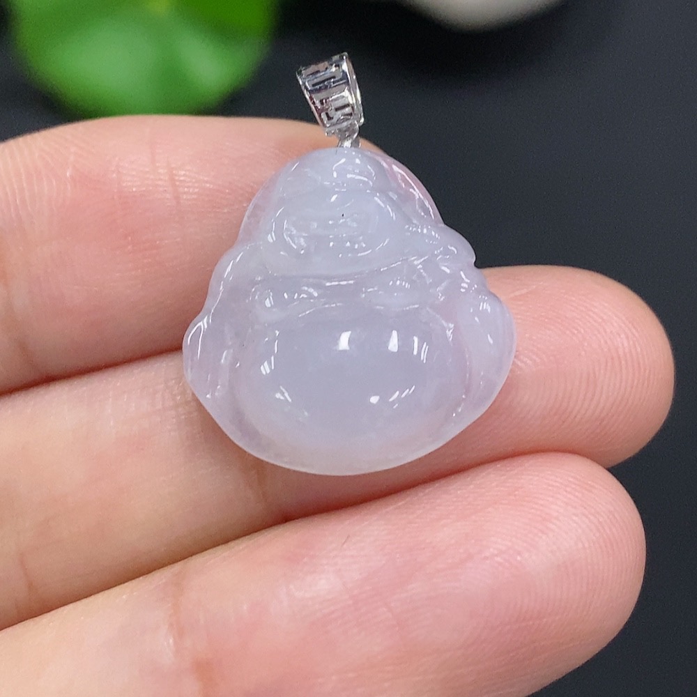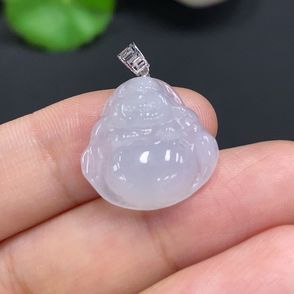 Jadeite Buddha Pendant with 18K Gold Clasp, Total Weight Approx. 2.4g