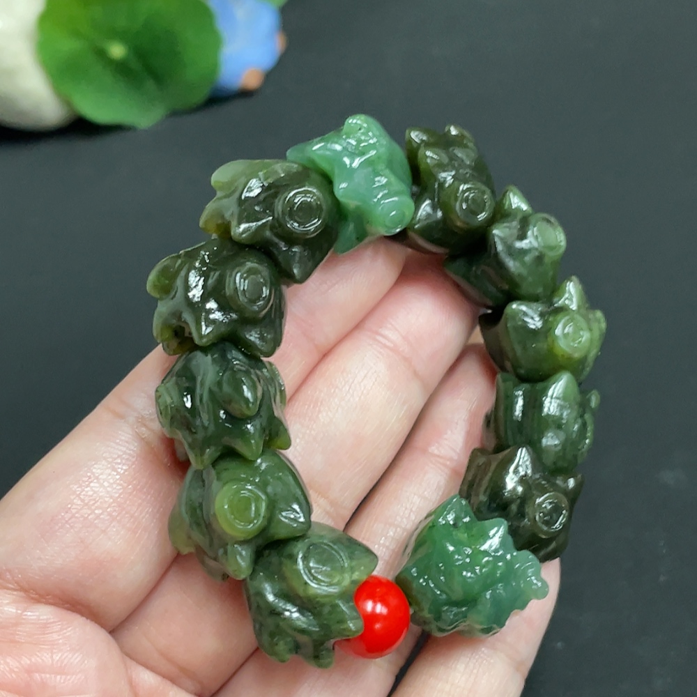 Hetian Jade Dragon Bracelet, Total Weight Approx. 64.5g