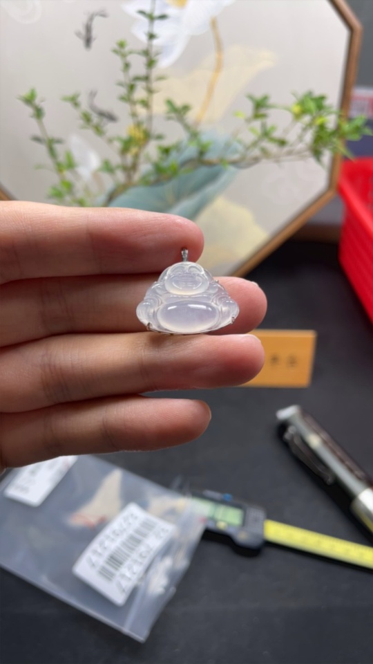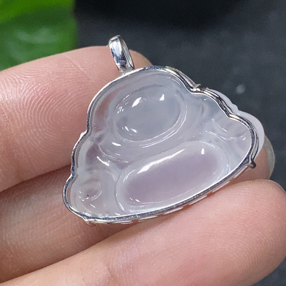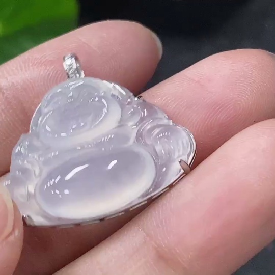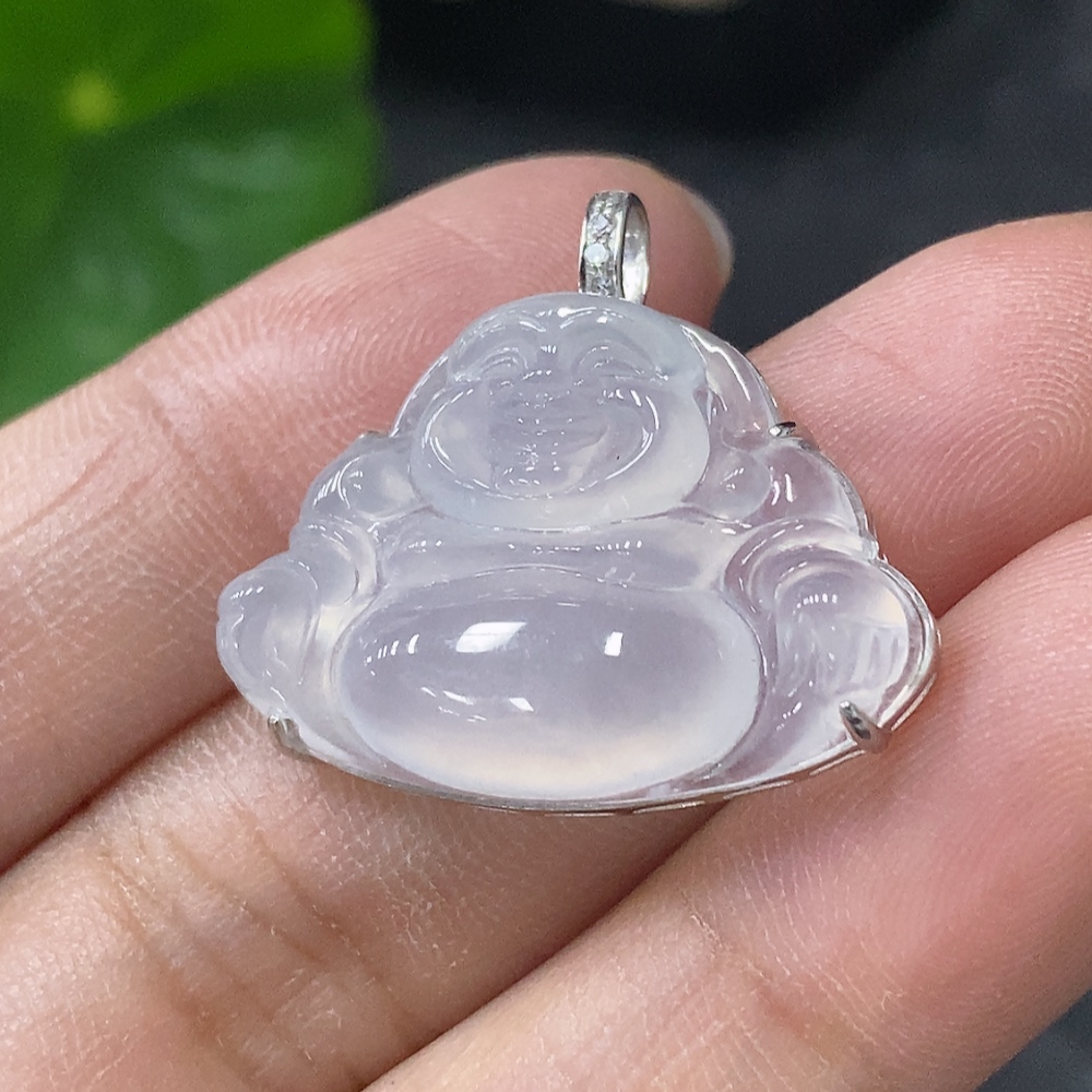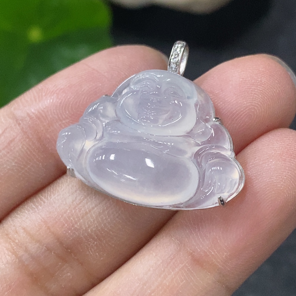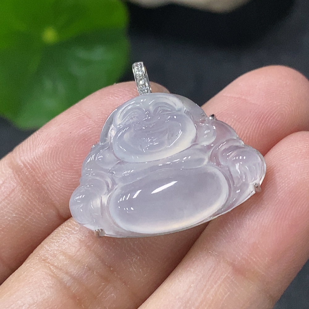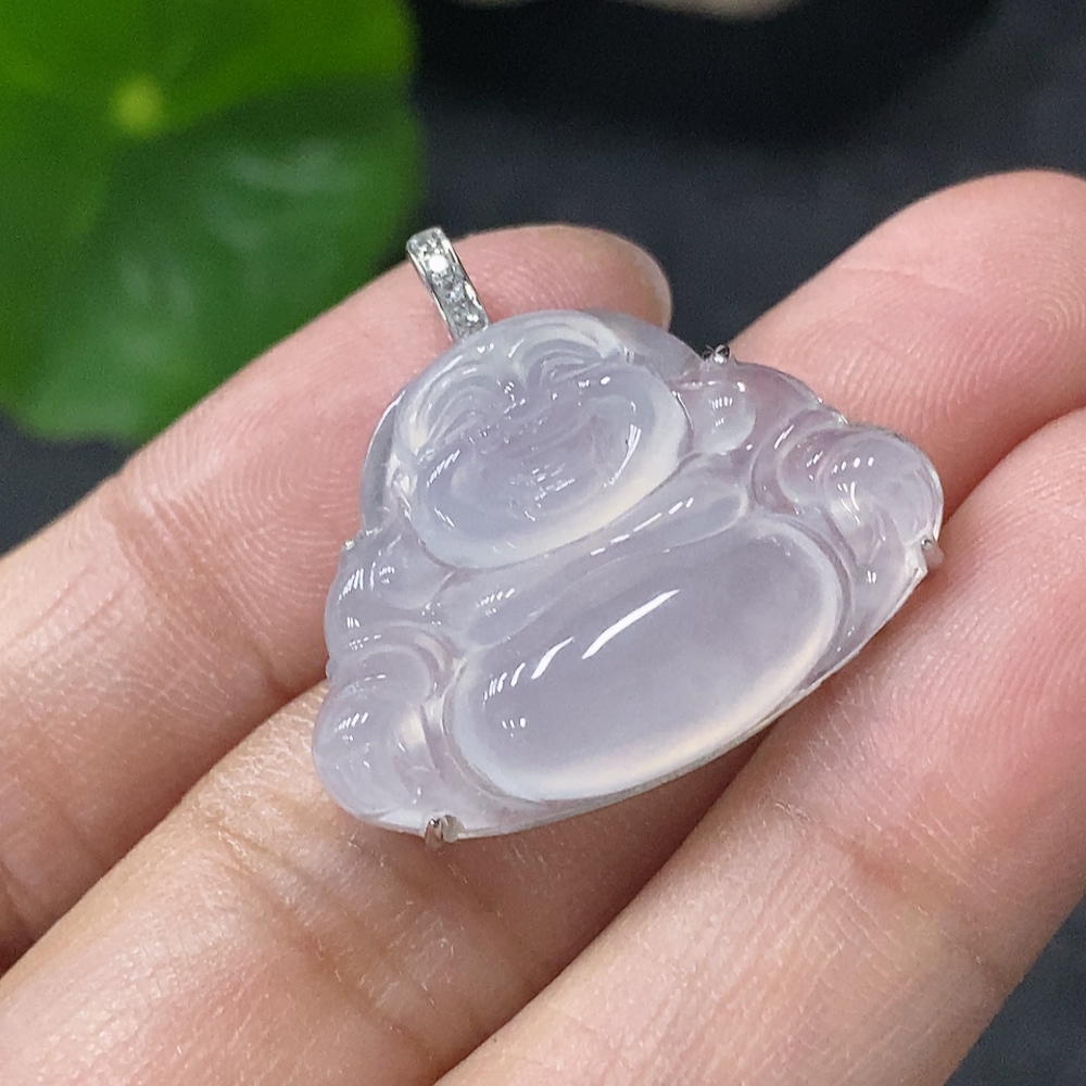 Jadeite Inlaid Buddha Pendant with 18K Gold and Diamond Accents, Total Weight Approx. 3.96g