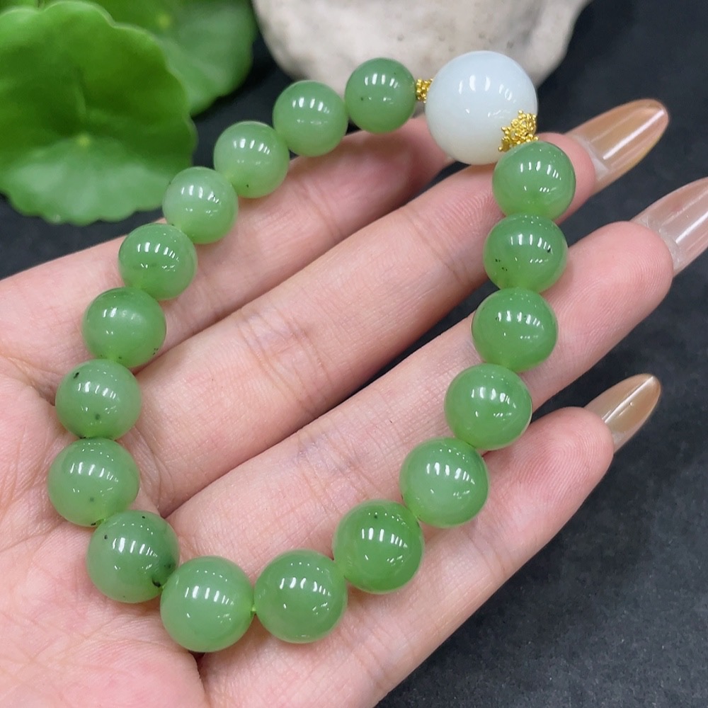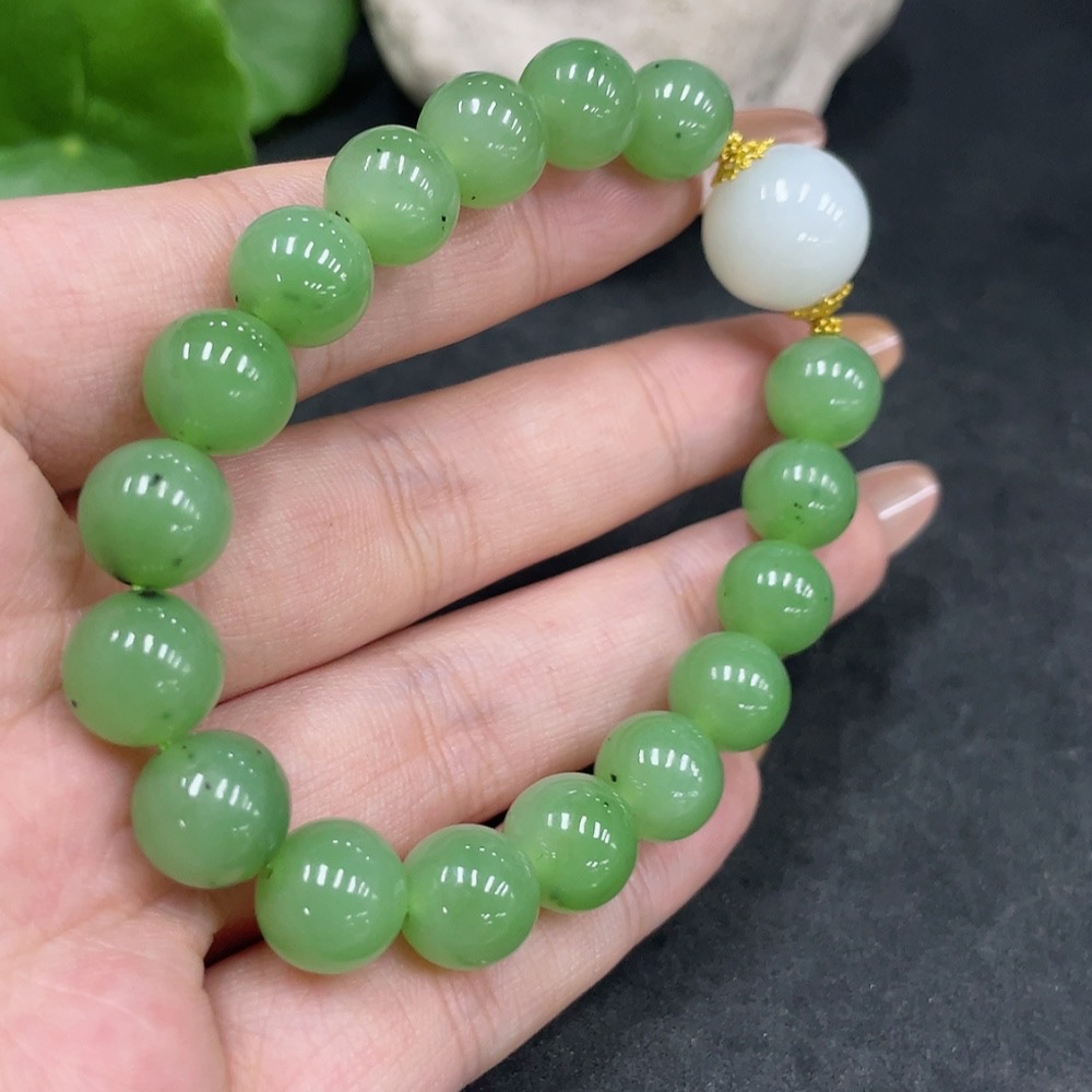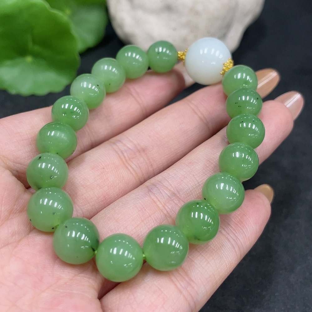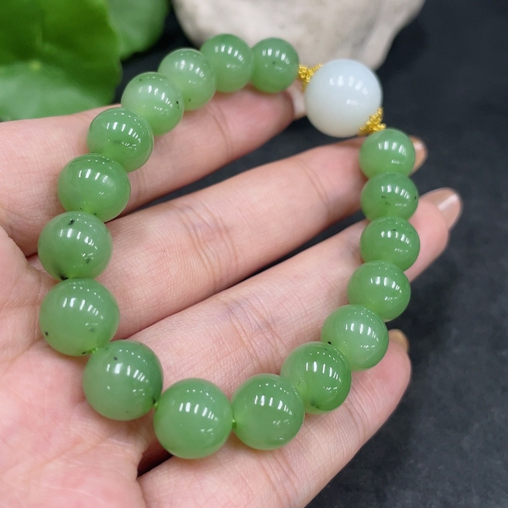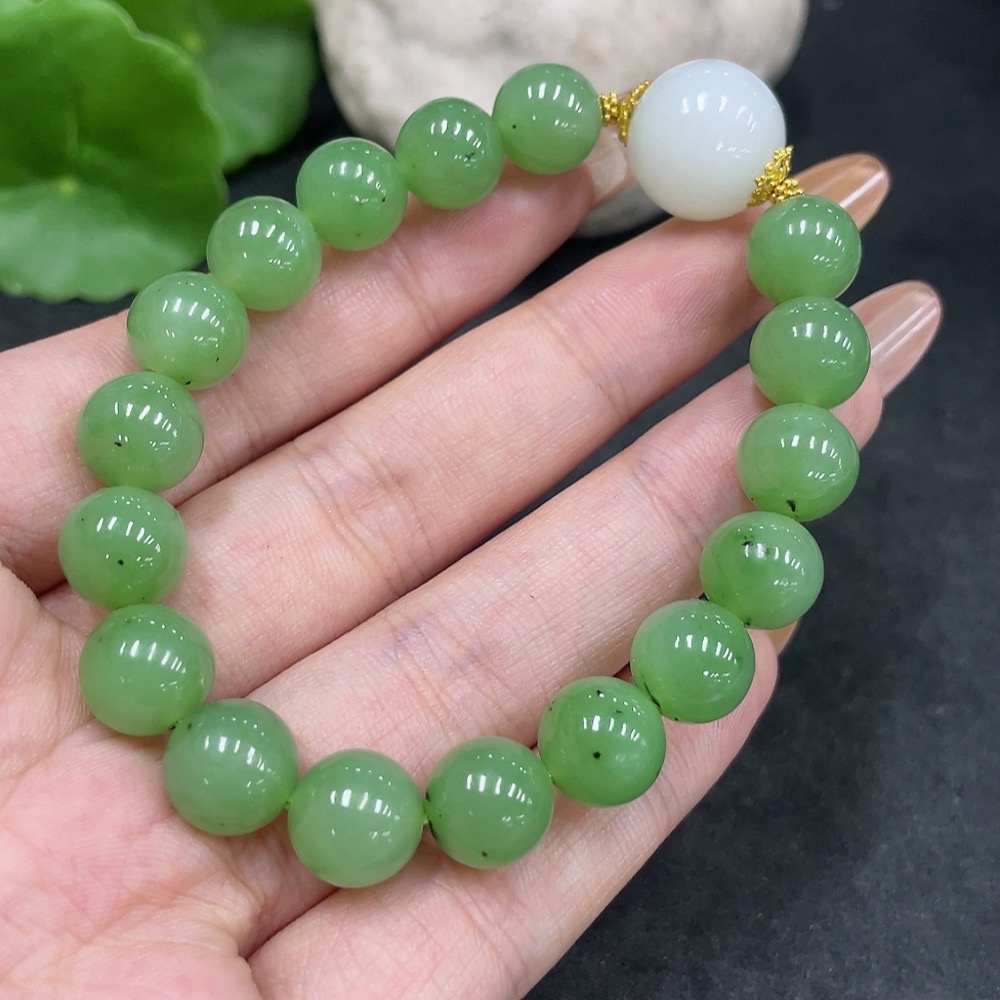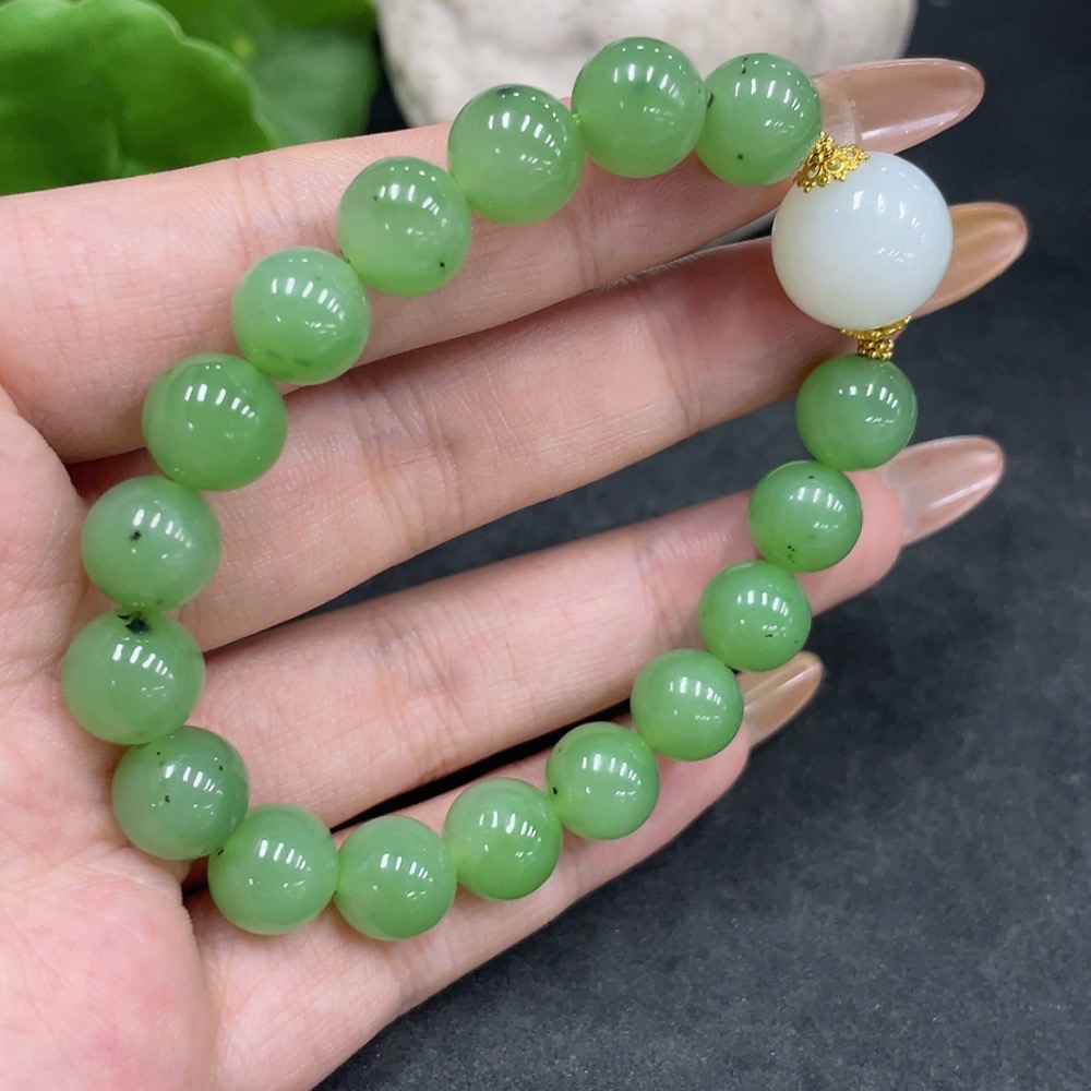 Hetian Jade Bracelet, approx. 9.5mm, total weight approx. 28.7g, non-gold