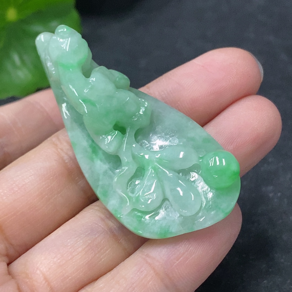 Jadeite Pendant Grass Dragon Total Weight Approx. 17.71g