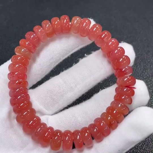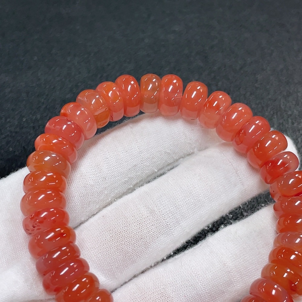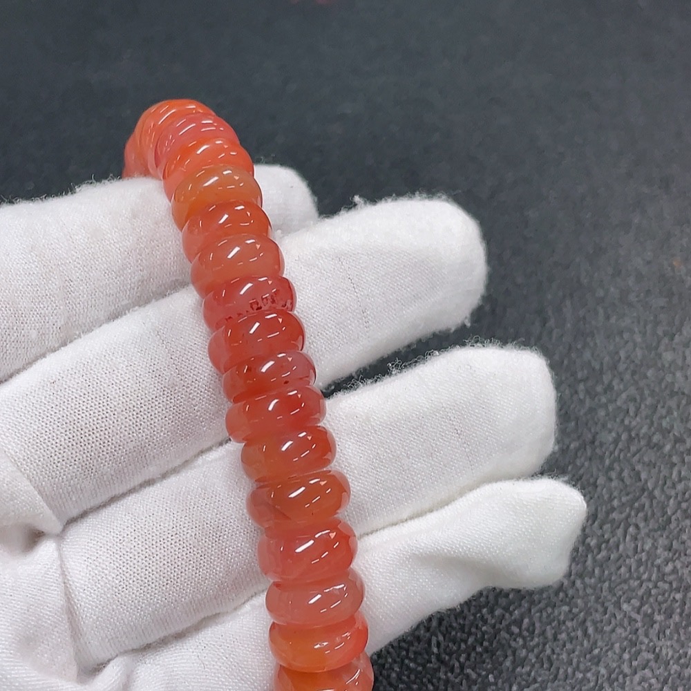 Red Agate Bracelet with Visible Organic Matter, Total Weight Approx. 46.5g, Bead Size 11.5mm