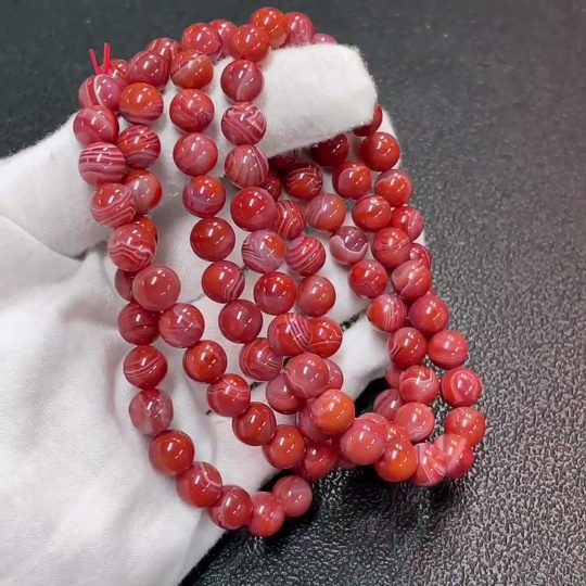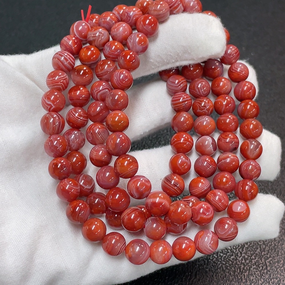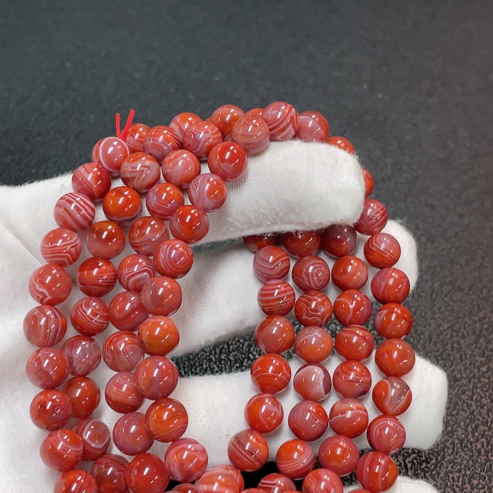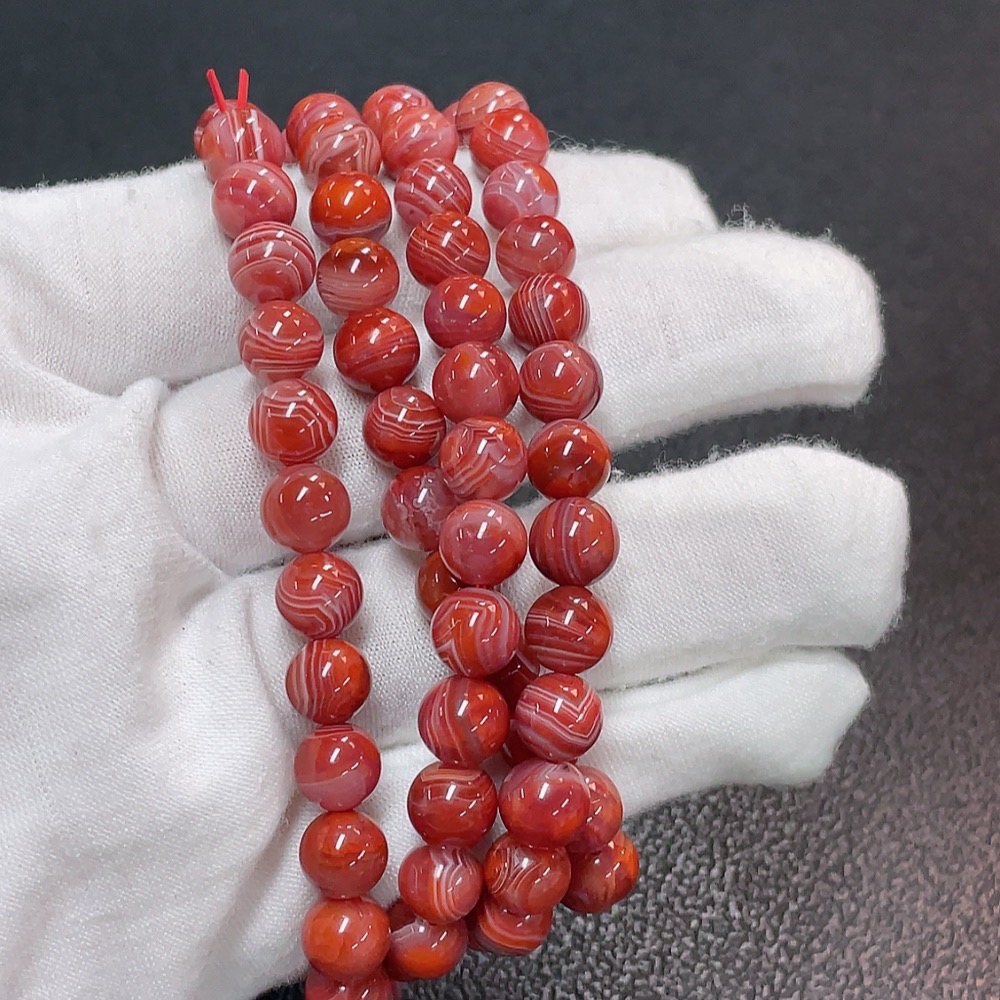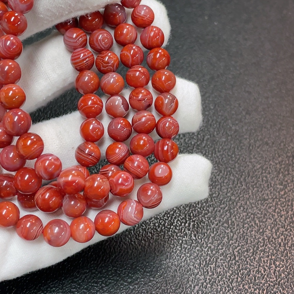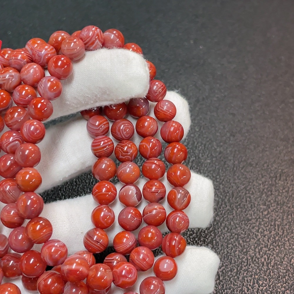 Red Agate Bead Strand with Visible Organic Matter, Total Weight Approx. 65.43g, Size About 7.5mm