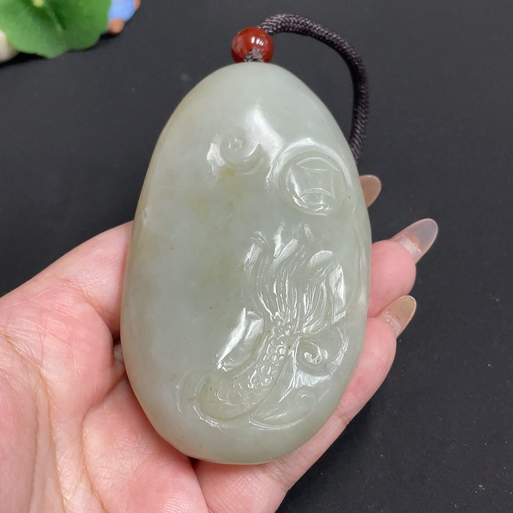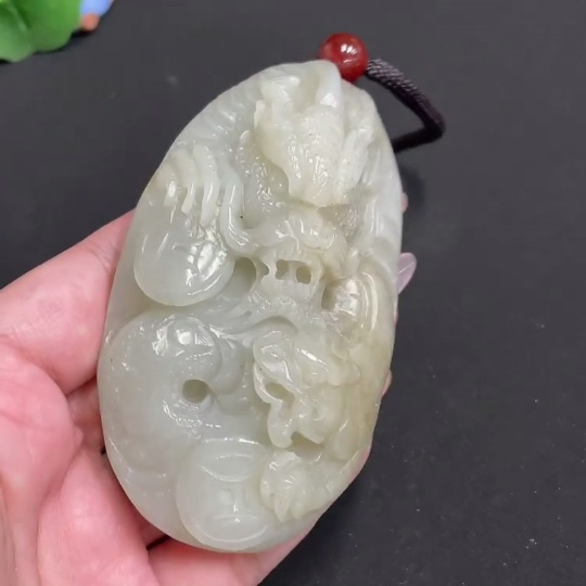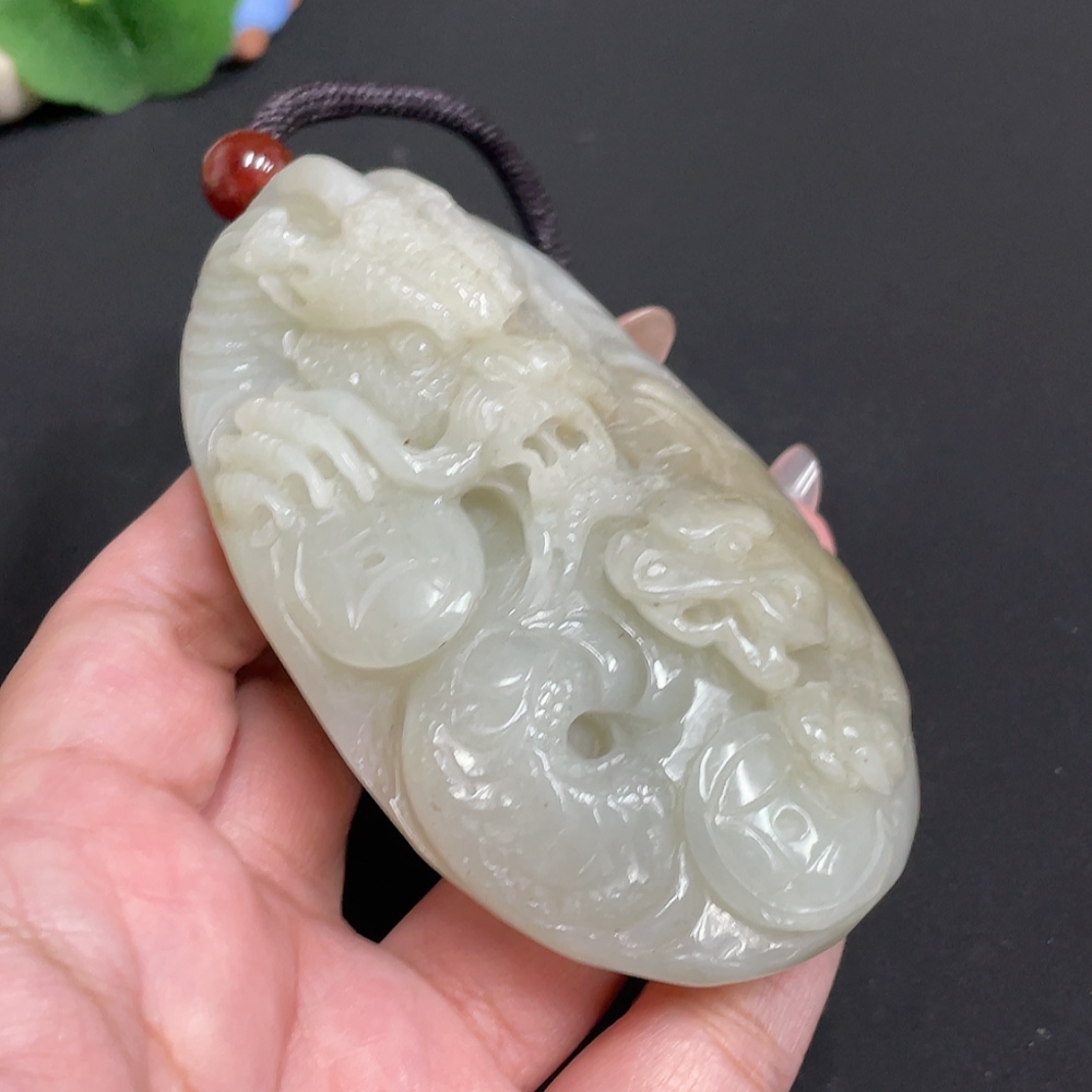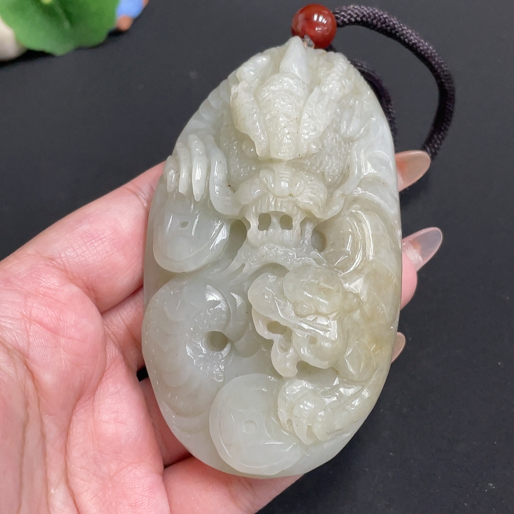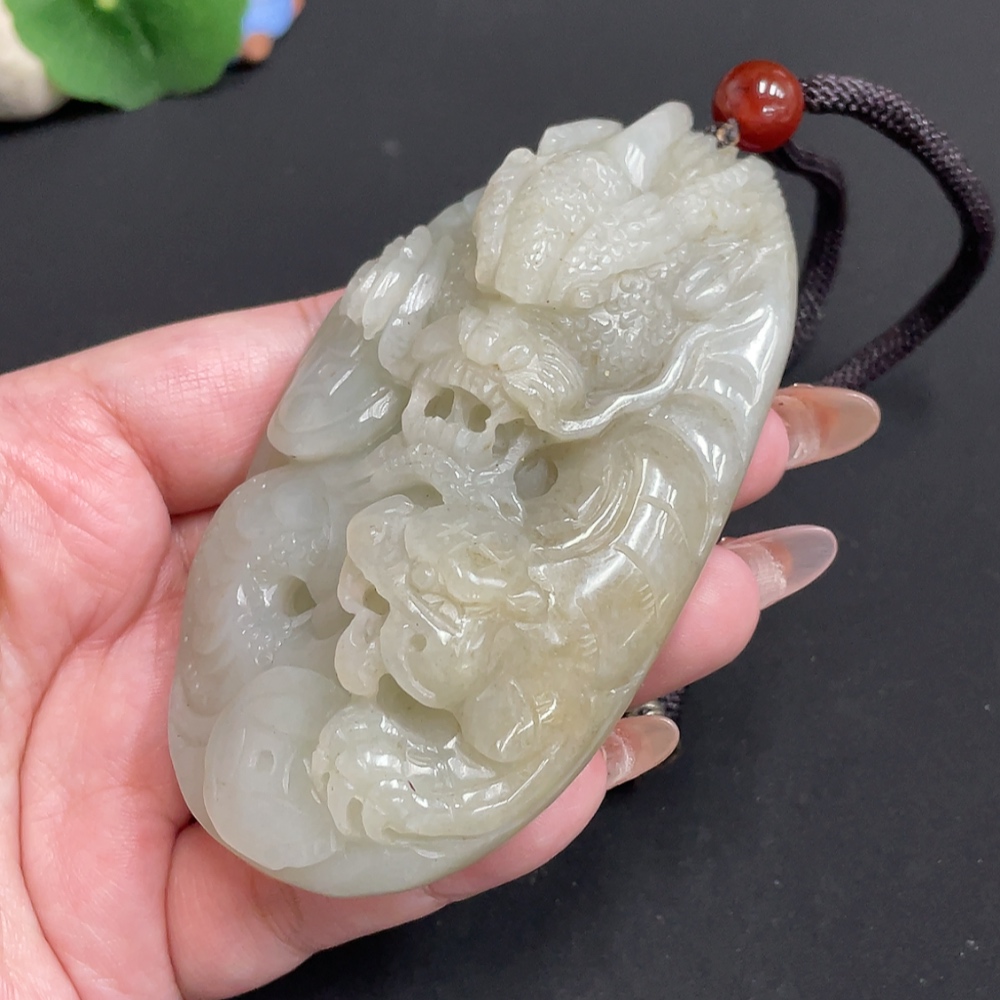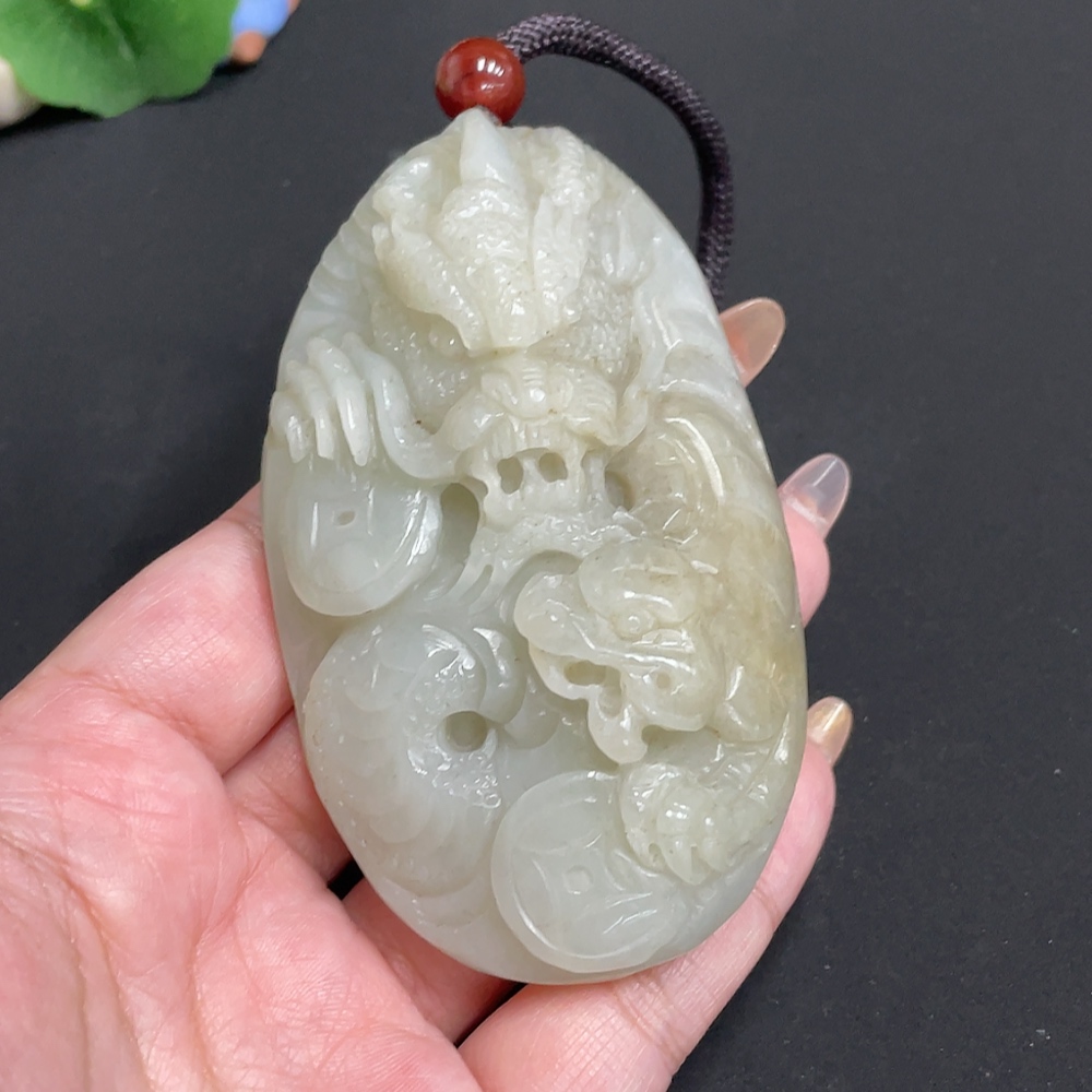 Hetian Jade Handheld Ornament - Dragon (Total Weight: approx. 193.1g [including rope])