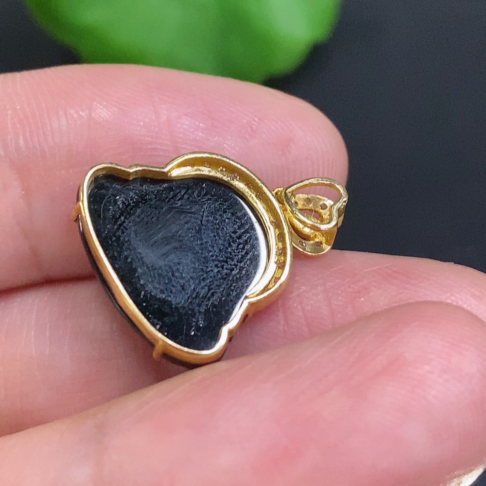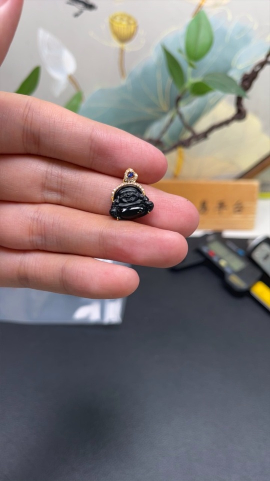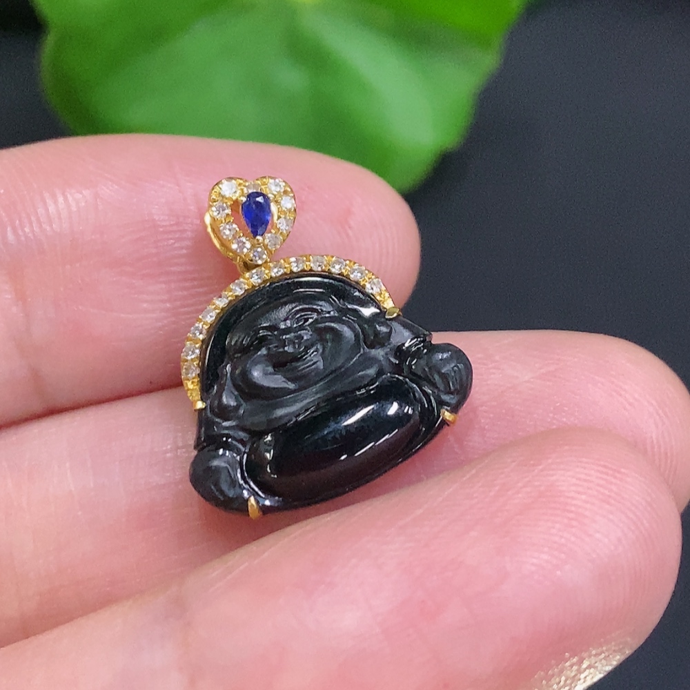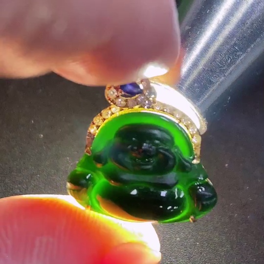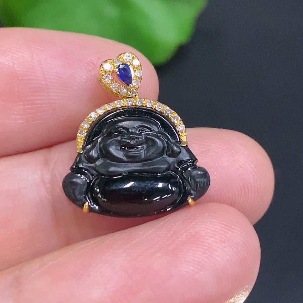Jadeite Buddha Pendant (18K Gold Bail, 71% Gold Content in Main Body) Total Weight Approximately 1.6g (With Diamond Accents)