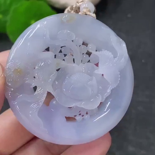 Trezaar - JadeitePendant Birds Singing and Flowers Fragrant