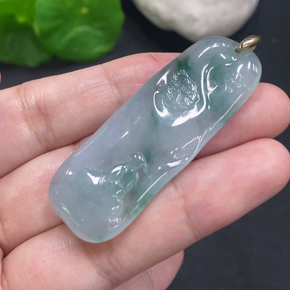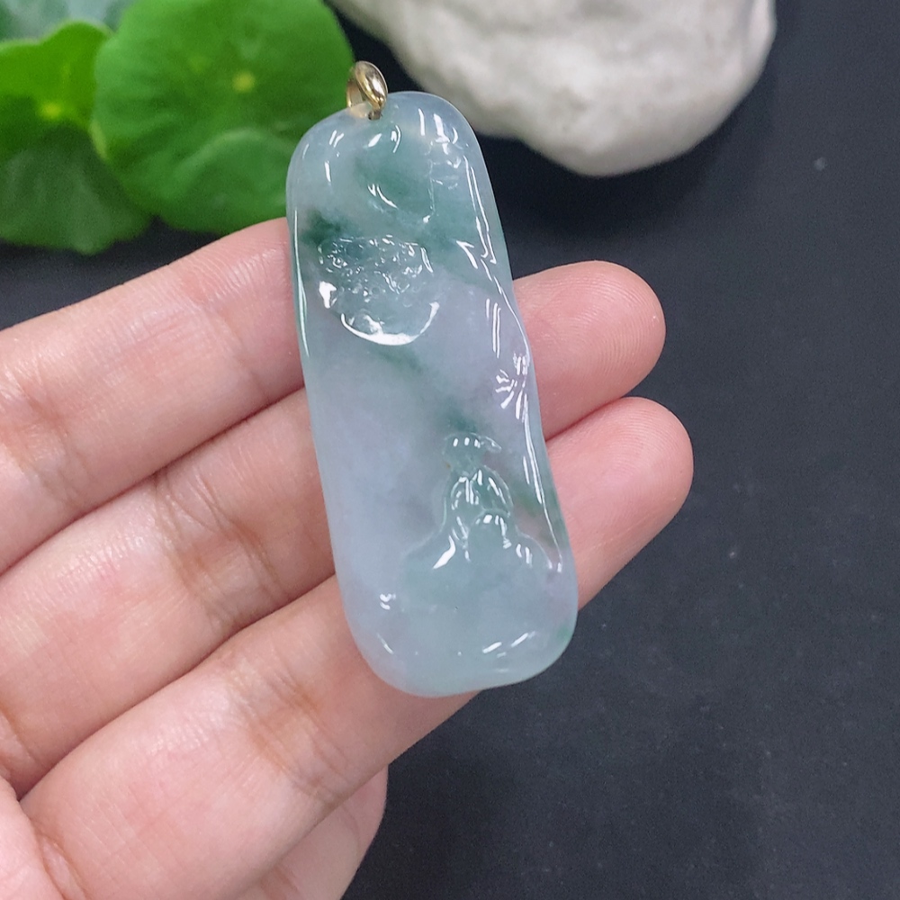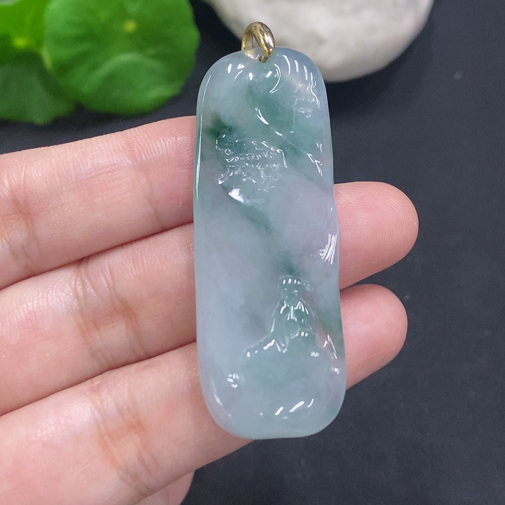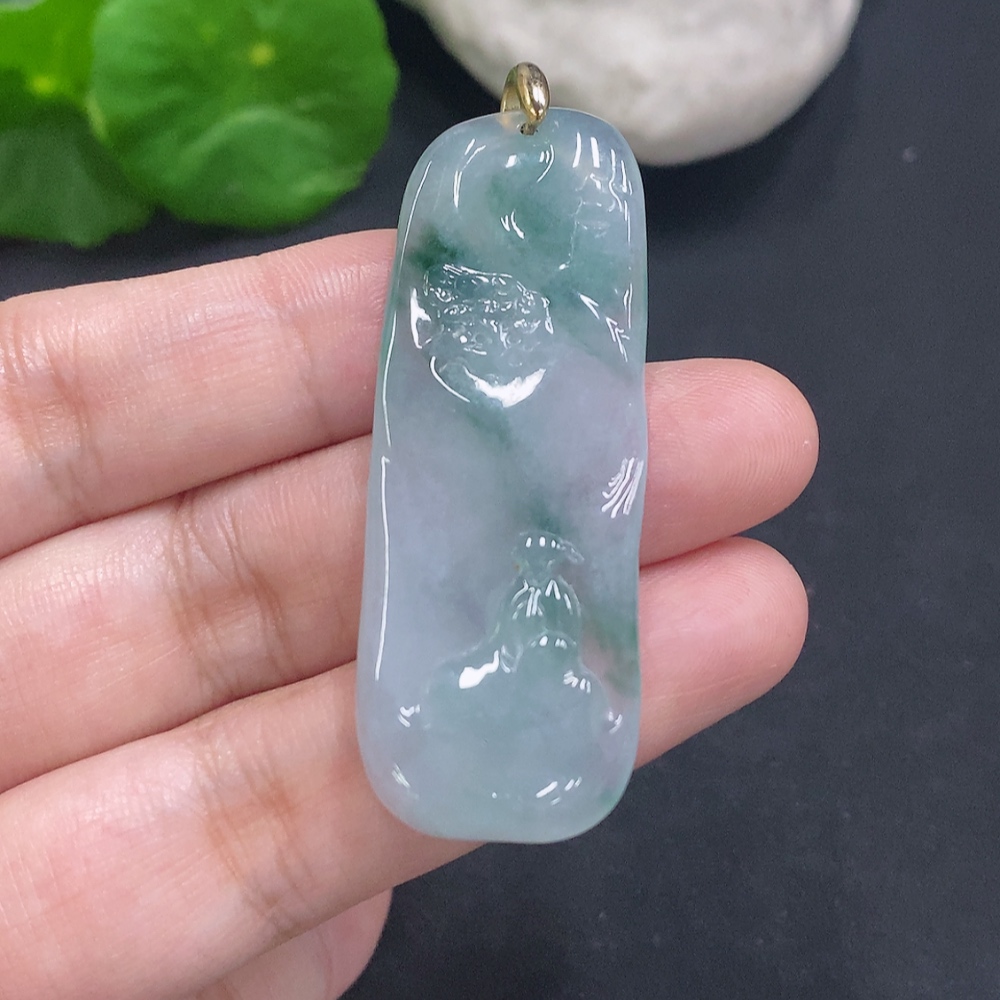 Jadeite Enlightenment Pendant with Non-Gold Clasp Chain, Total Weight Approx. 15.9g