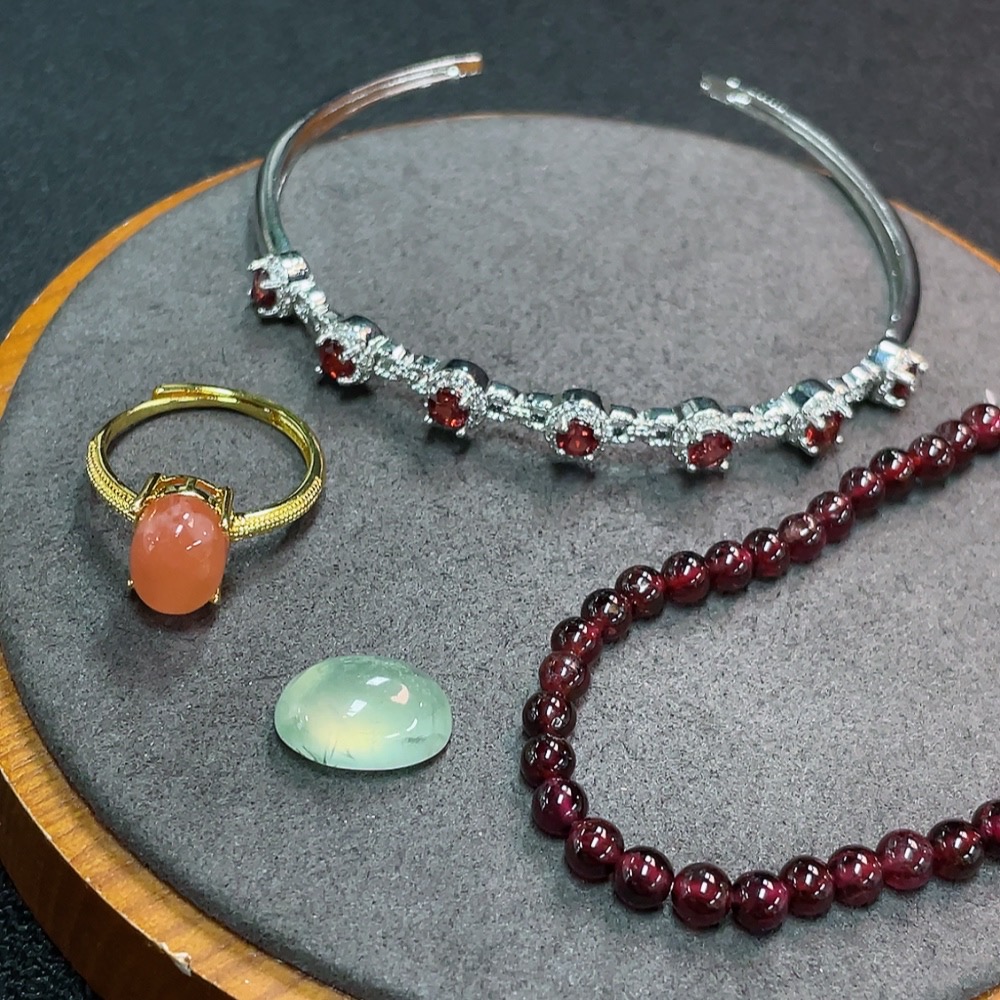 Red Agate + Prehnite + Garnet Jewelry Non-Gold Total Weight Approx. 19.46g Sell as a Lot