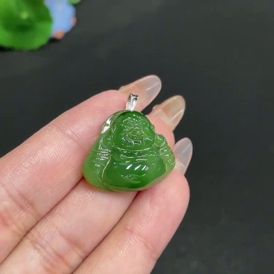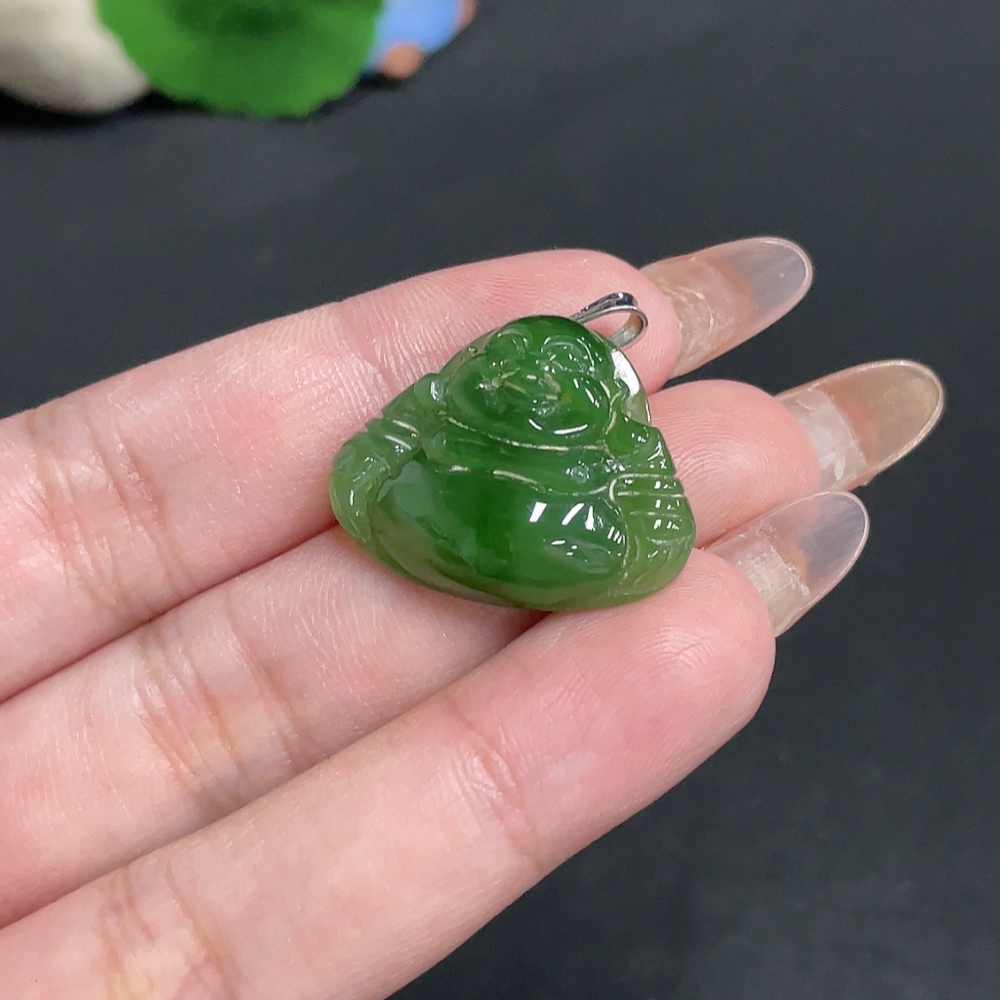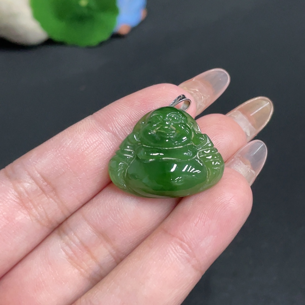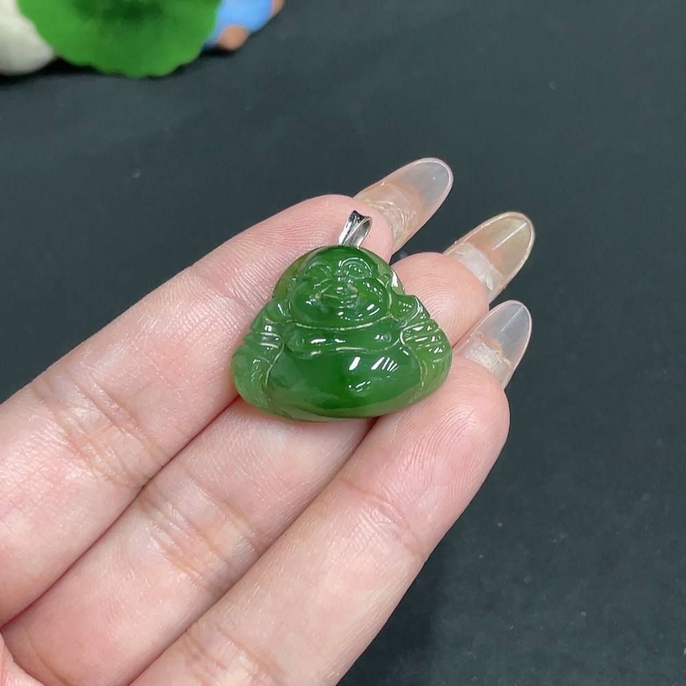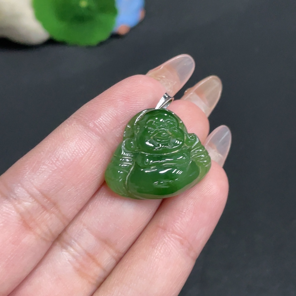 Hetian Jade Inlaid Pendant, Buddha, Total Weight Approx. 5.7g, 18k
