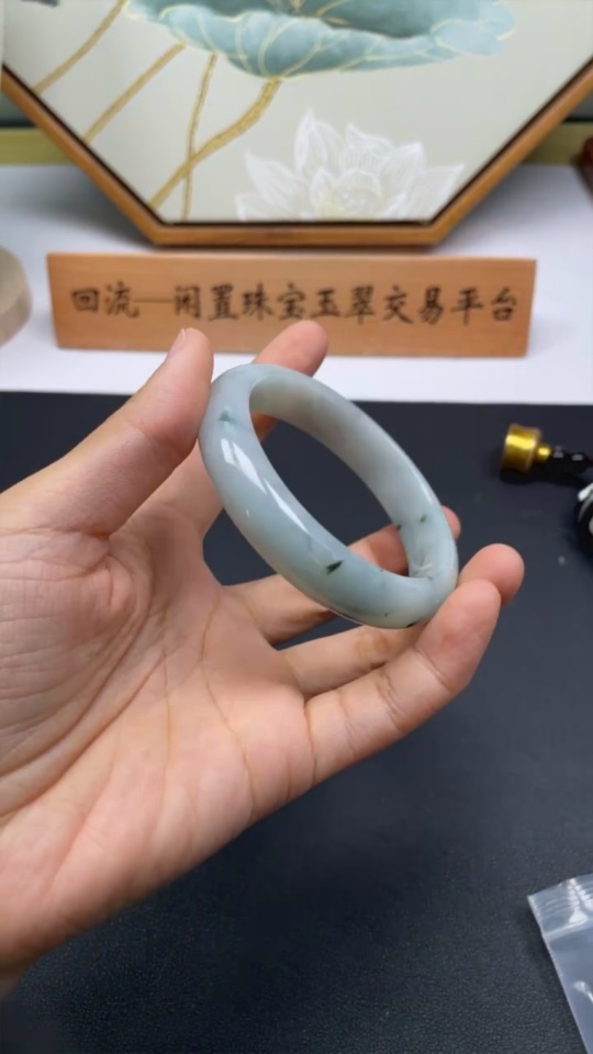 Jadeite Circular Bracelet with Other Mineral Components, Total Weight Approximately 62.45g, Inner Diameter 58.7