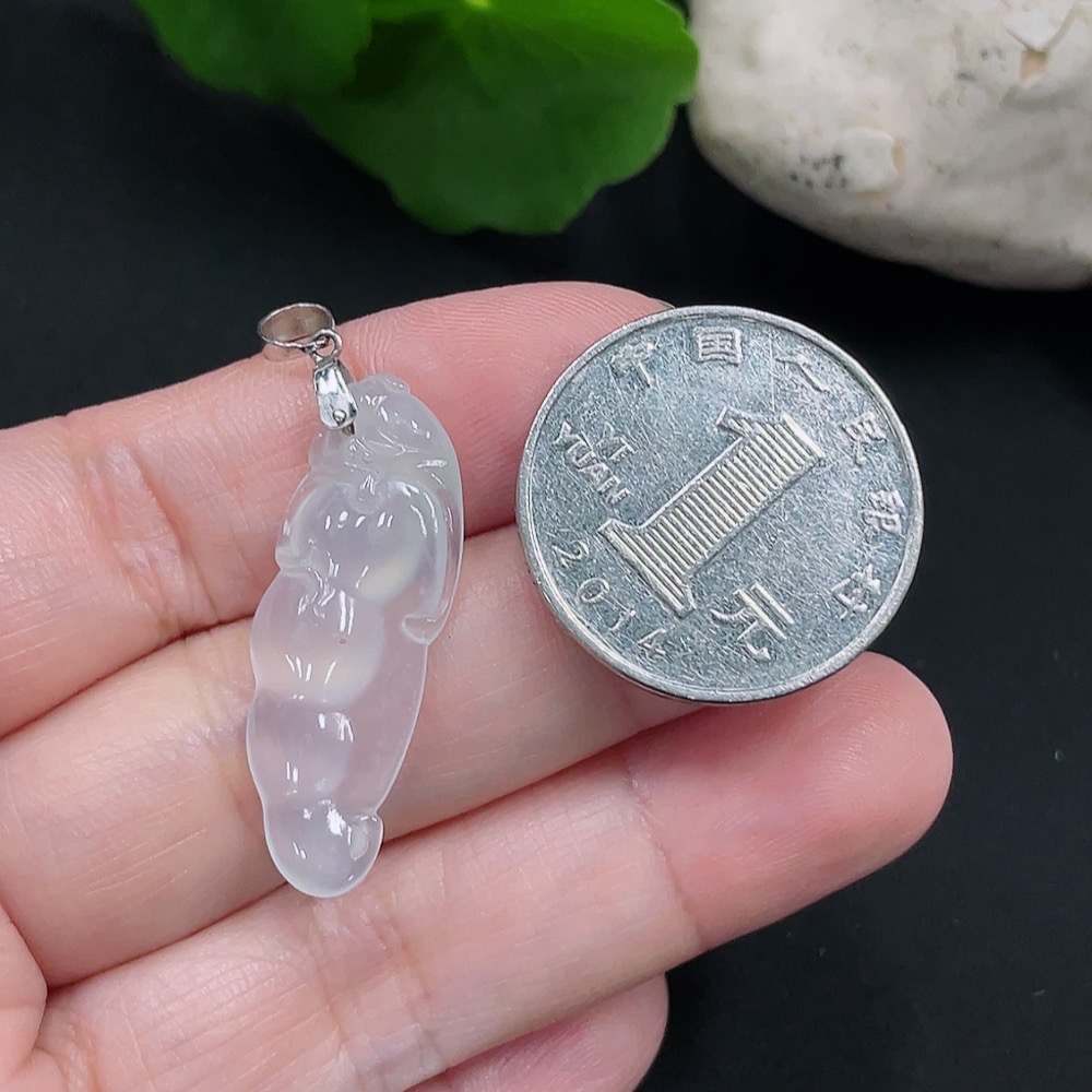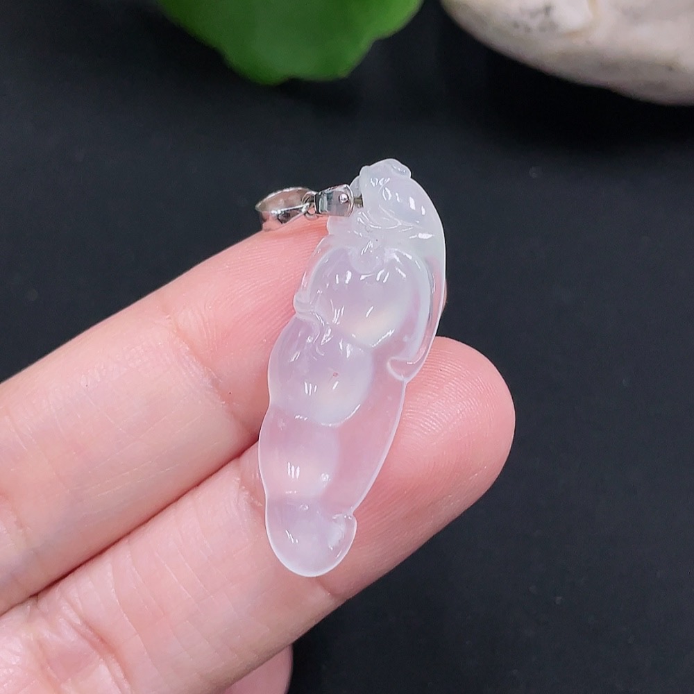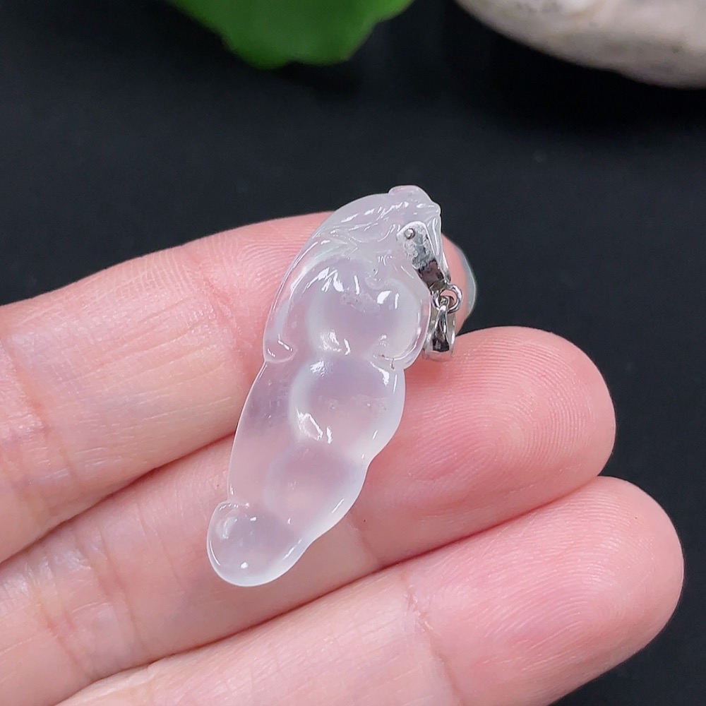 Jadeite Lucky Bean Pendant with 58% Gold Clasp, Total Weight Approx. 2.6g