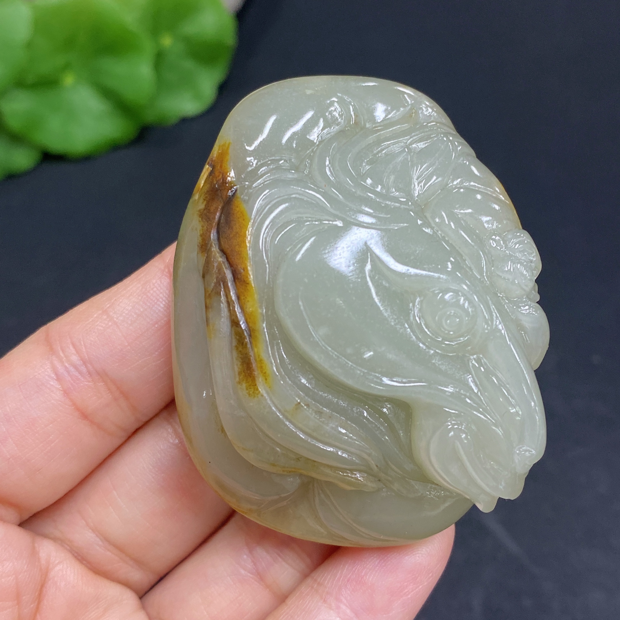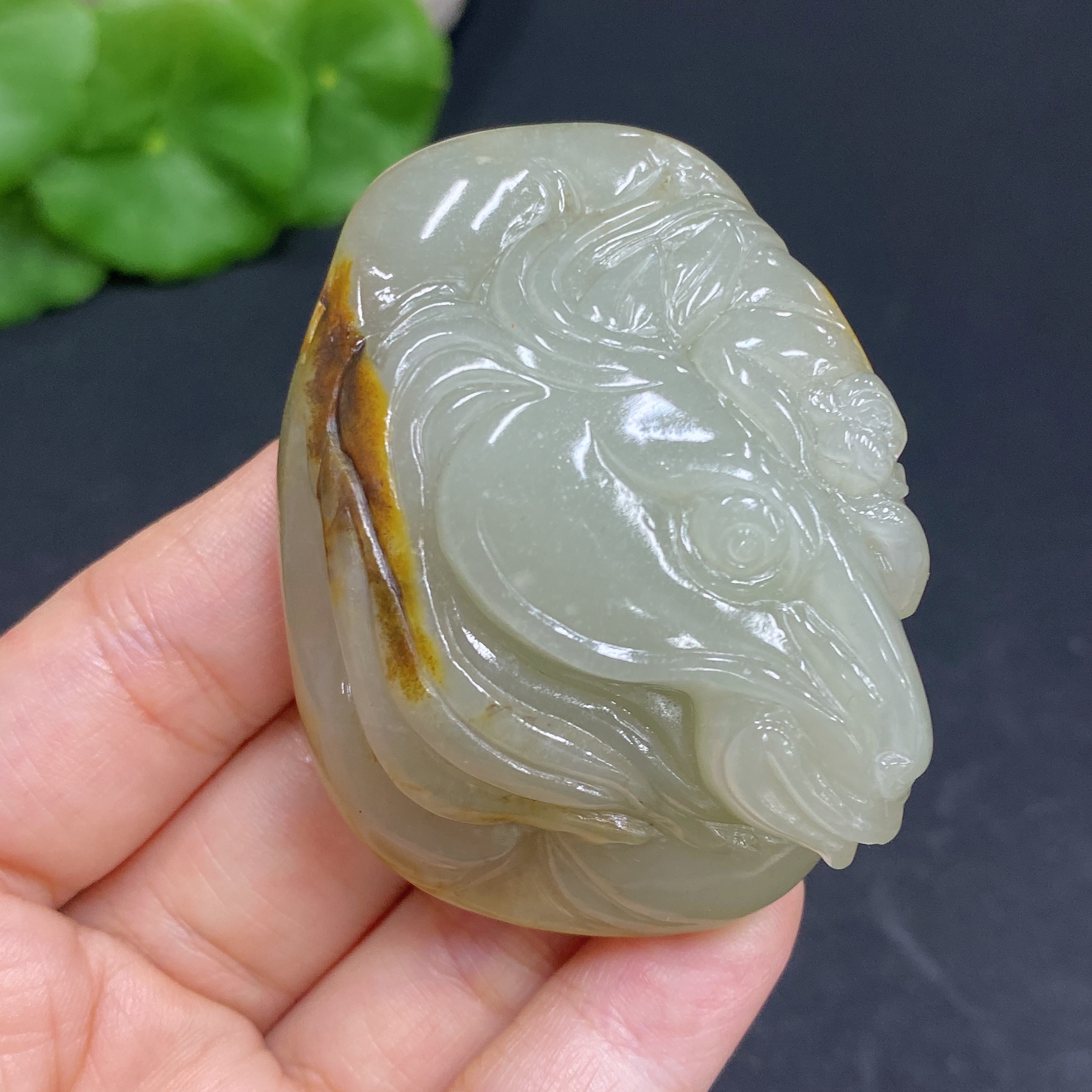 Hetian Jade Pendant - "Instant Promotion upon Riding a Horse" - Total weight approx. 74.5g - Undetermined skin color origin