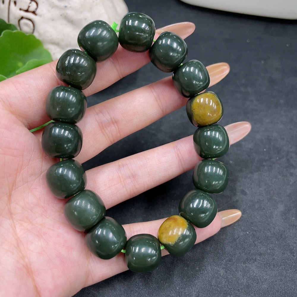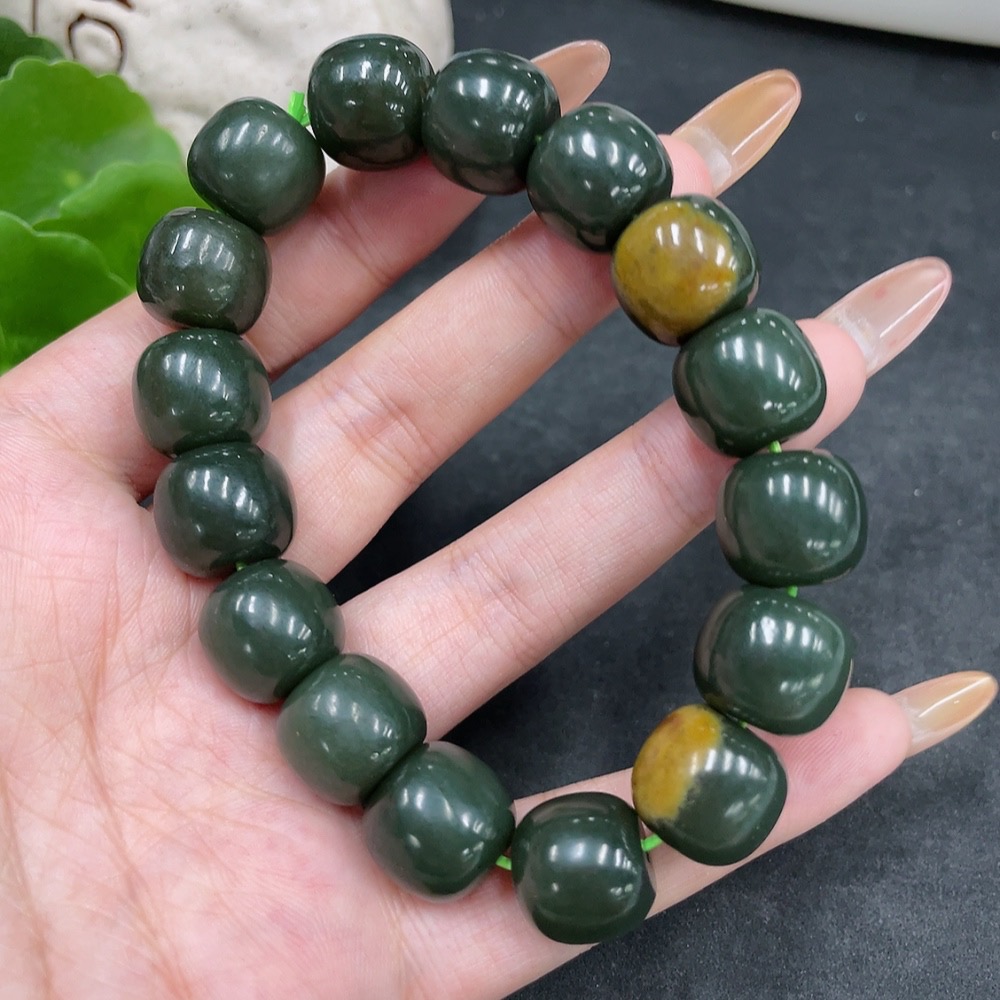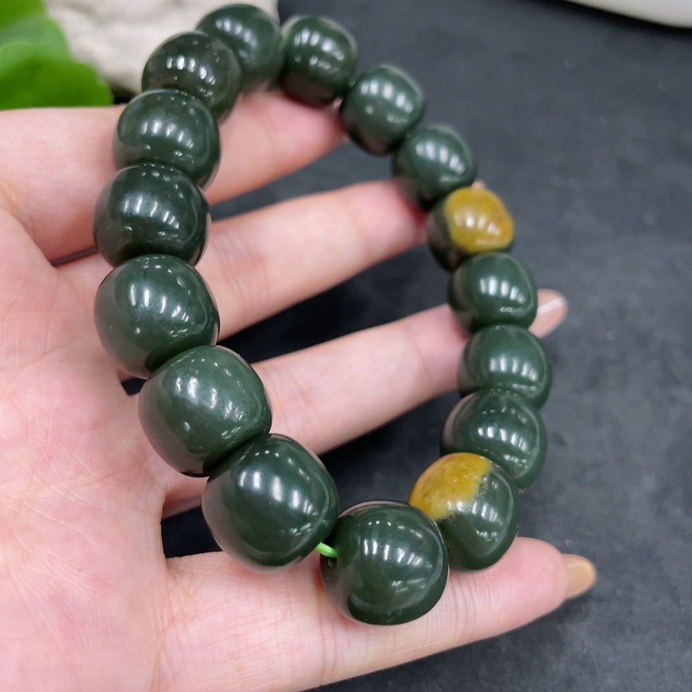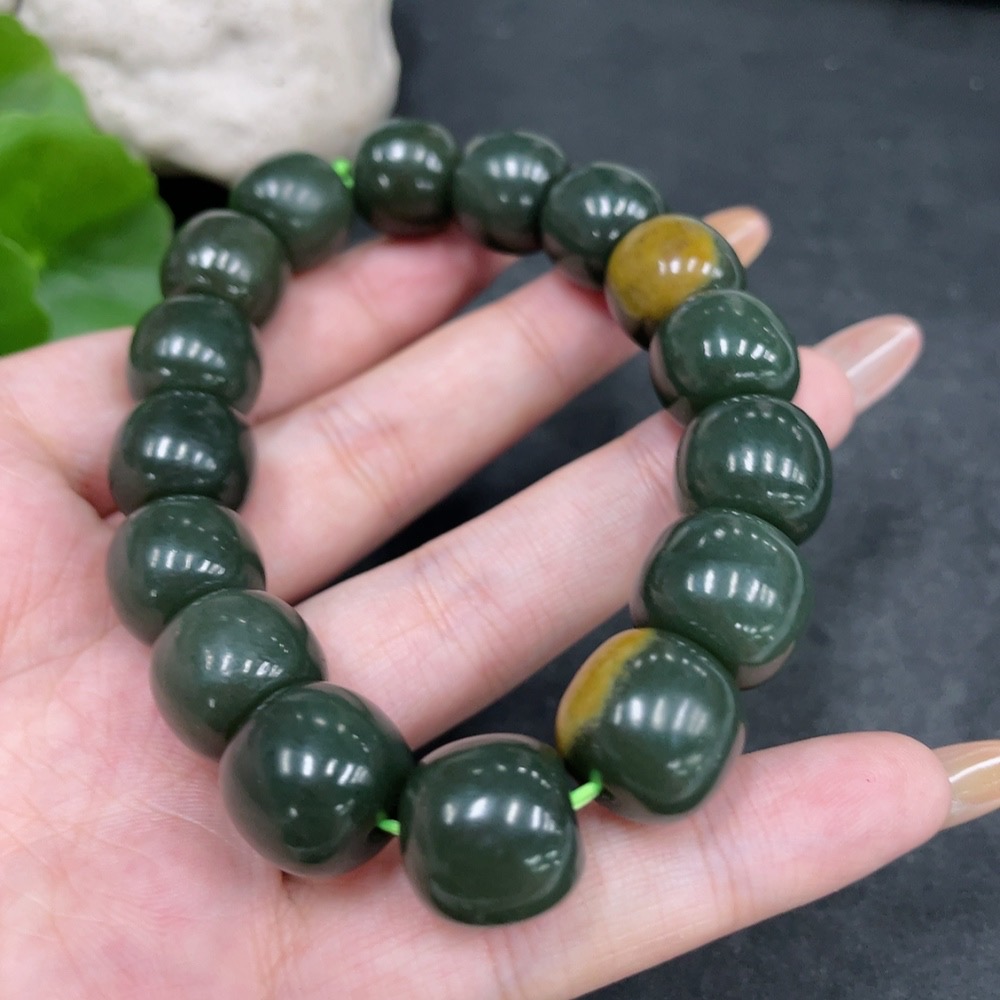 Hetian Jade Beads, Undetermined Skin Color Cause, Approx. 14mm, Total Weight About 74.6g
