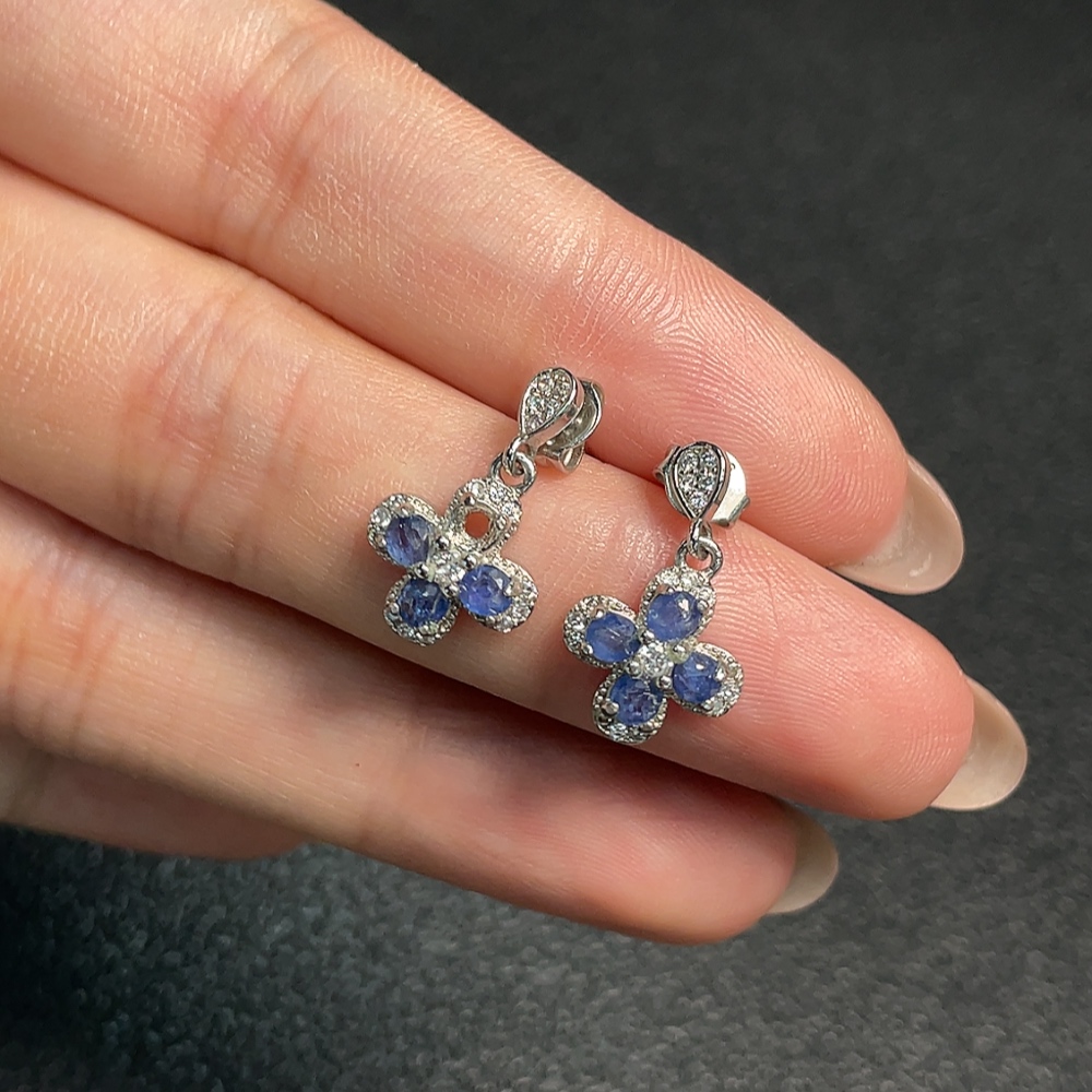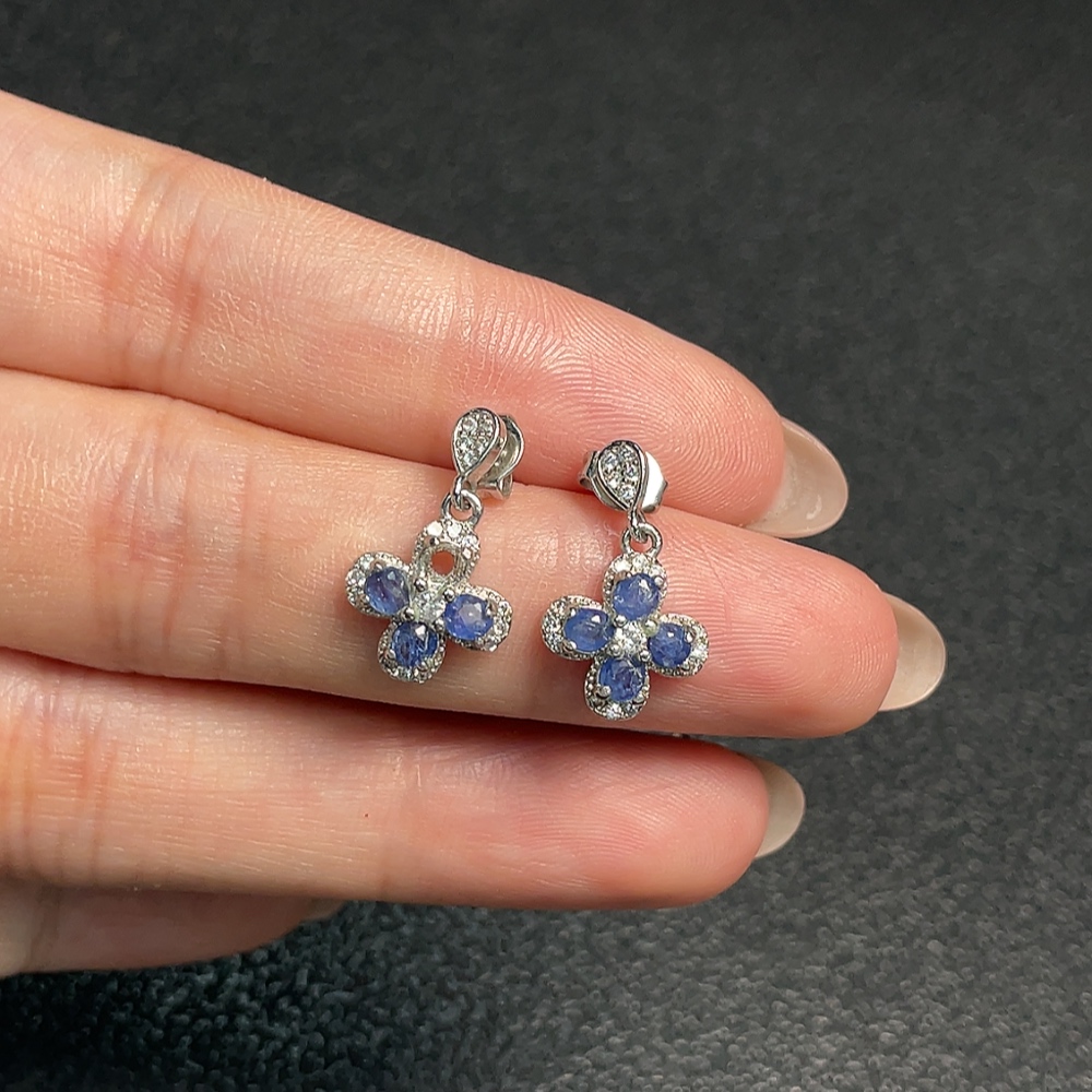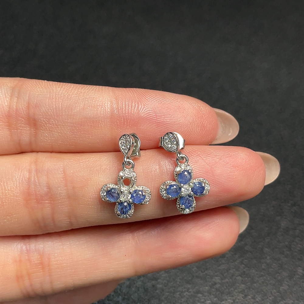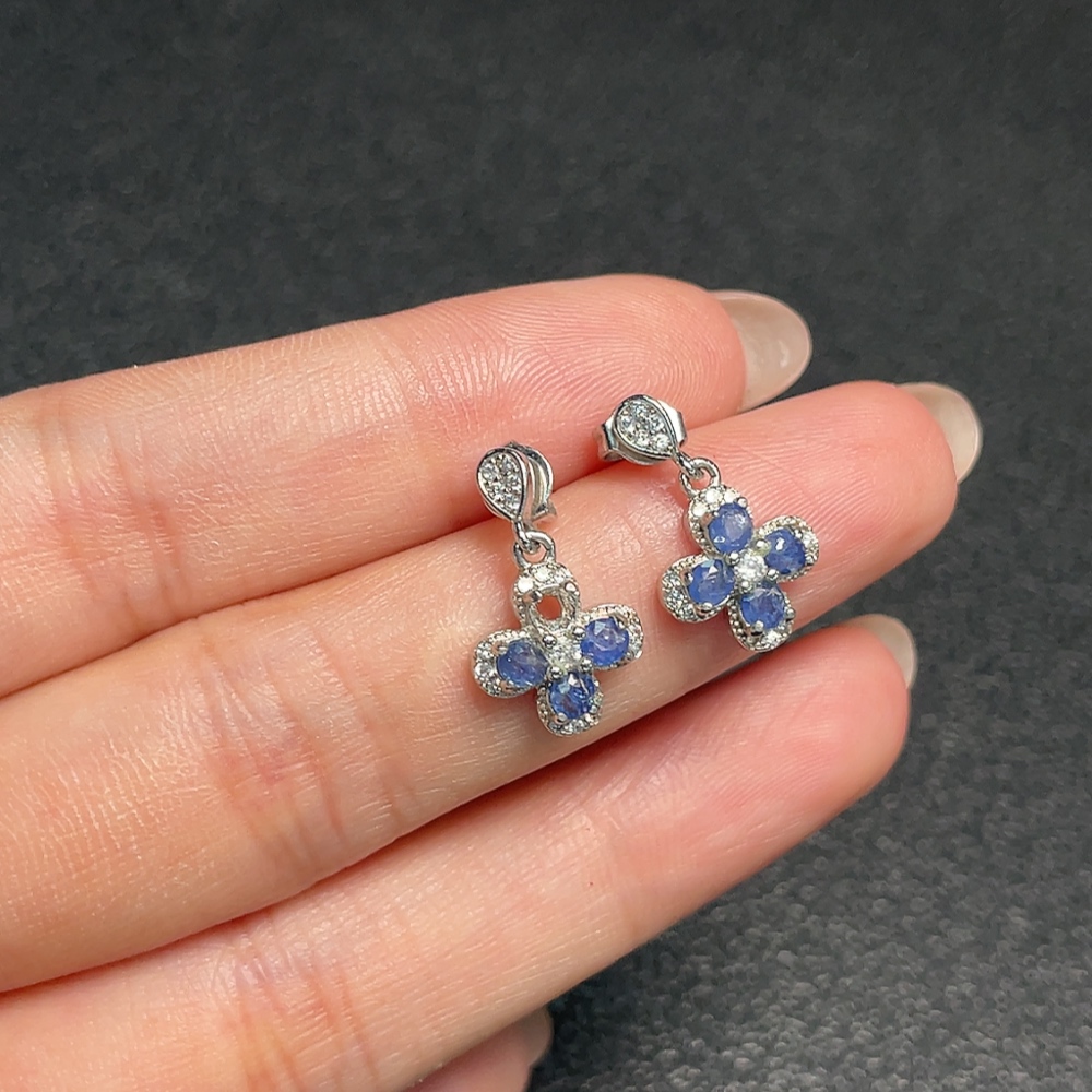 Sapphire earrings, one stone missing, non-gold, total weight approximately 1.85 grams