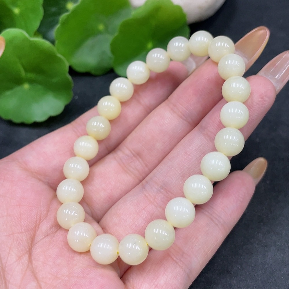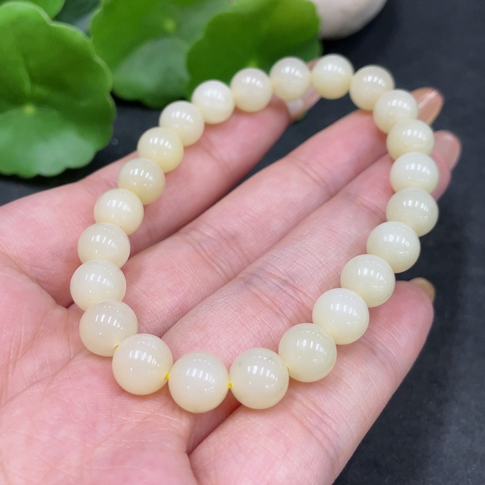 Hetian Jade Bracelet, Approx. 8mm Beads, Total Weight Approx. 18.1g