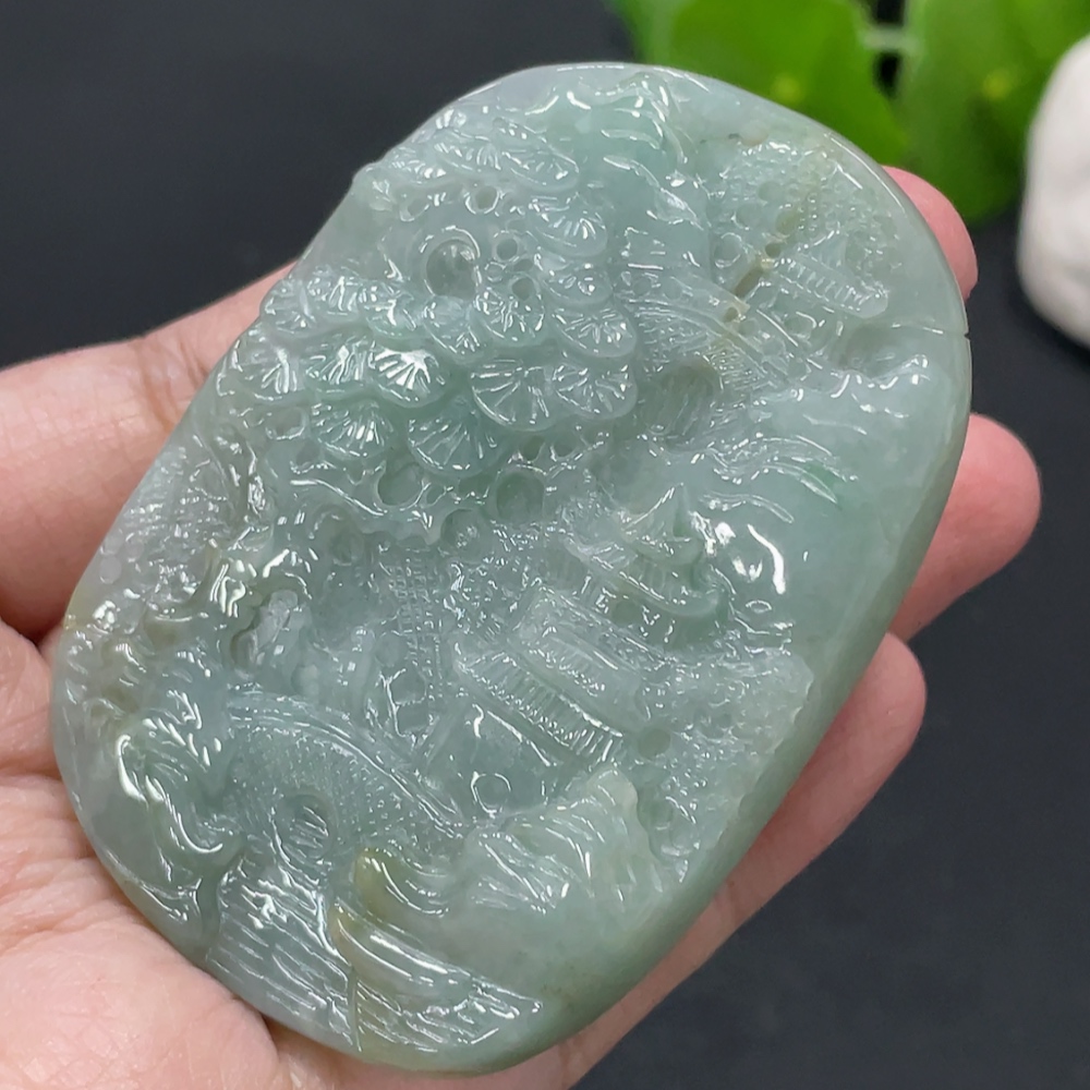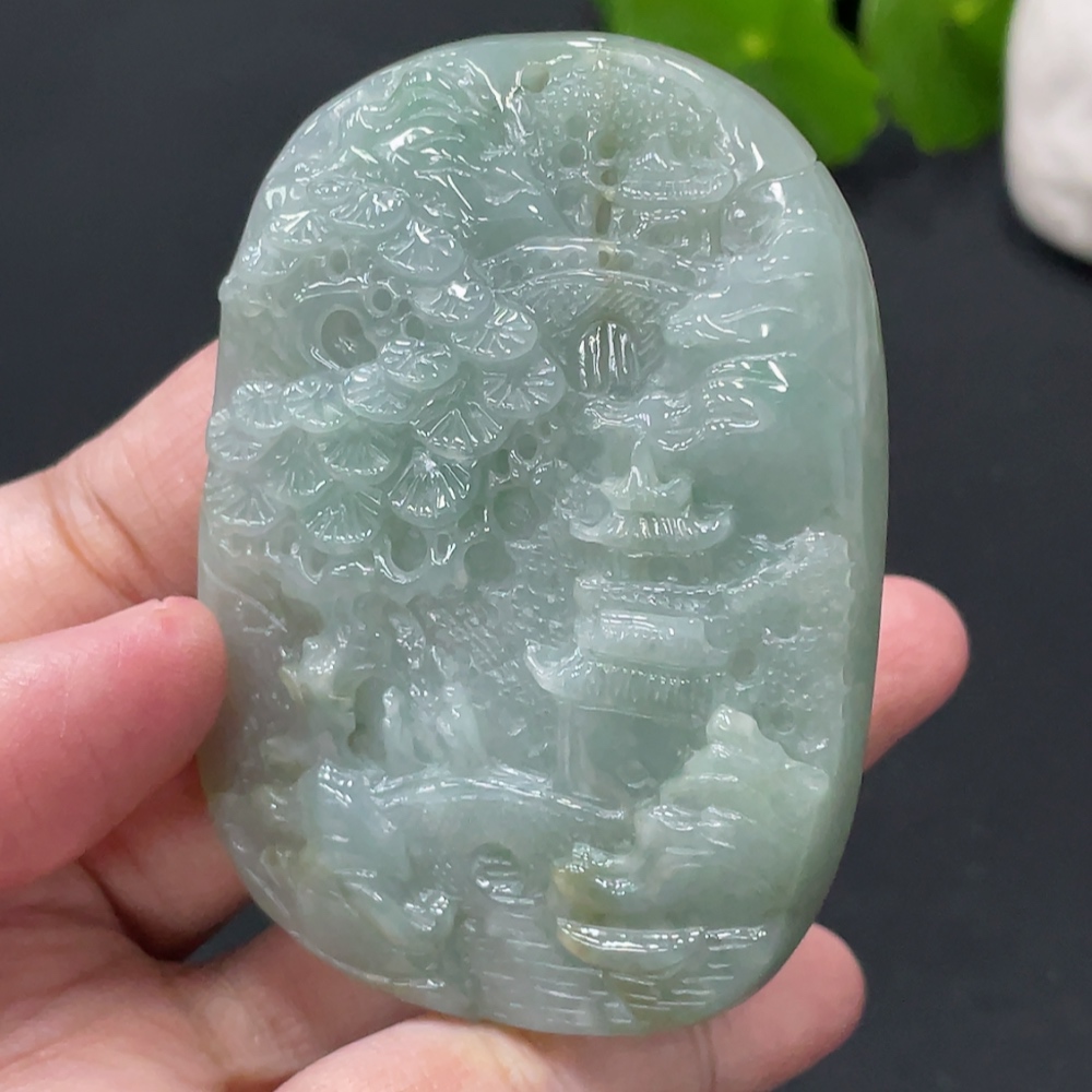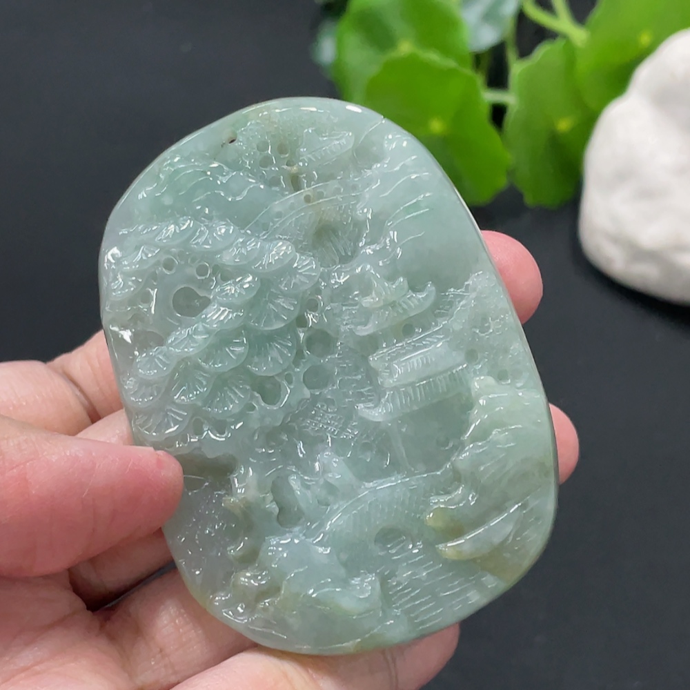 Jadeitelandscape pendant (Total weight approx. 53.7g, with defects)