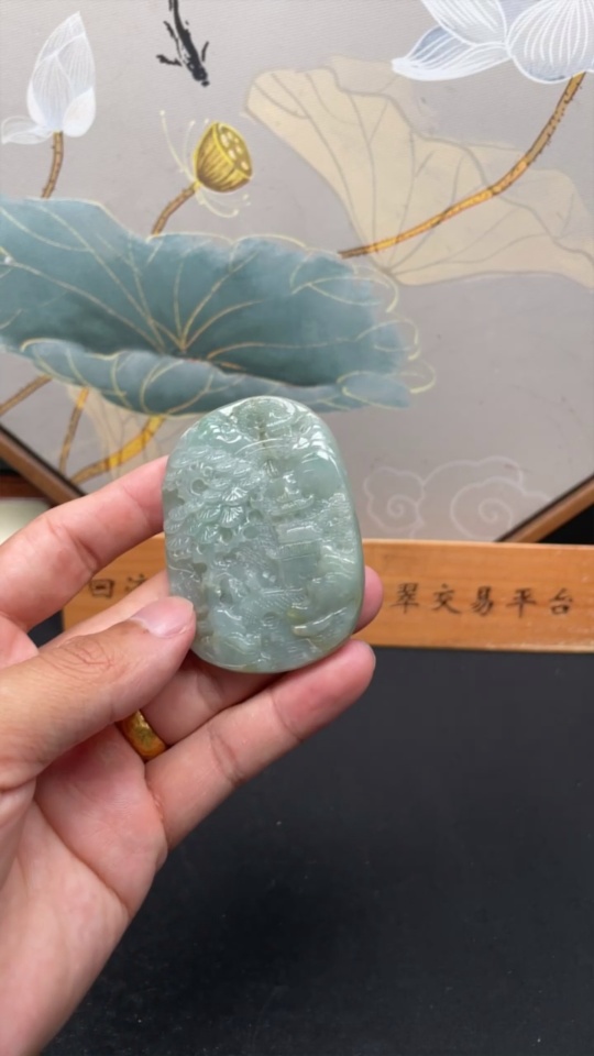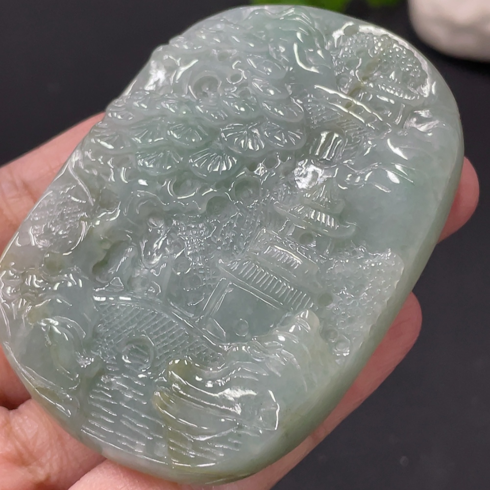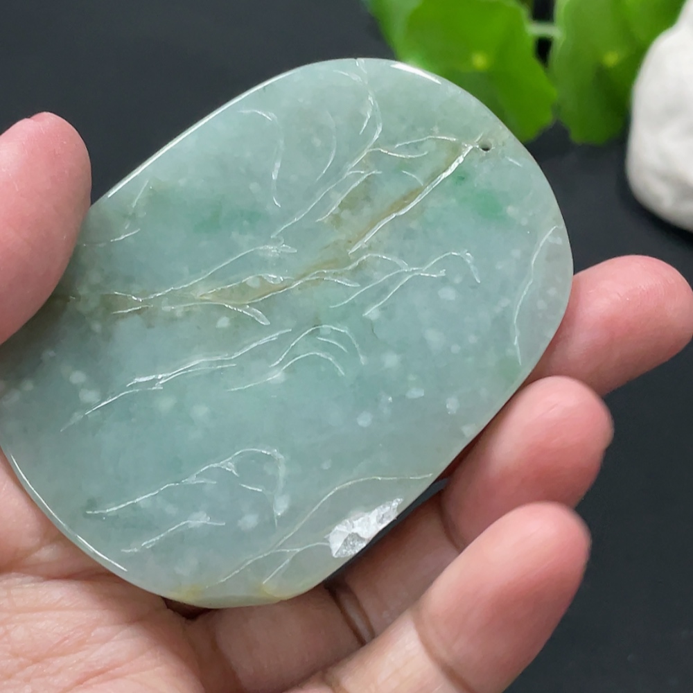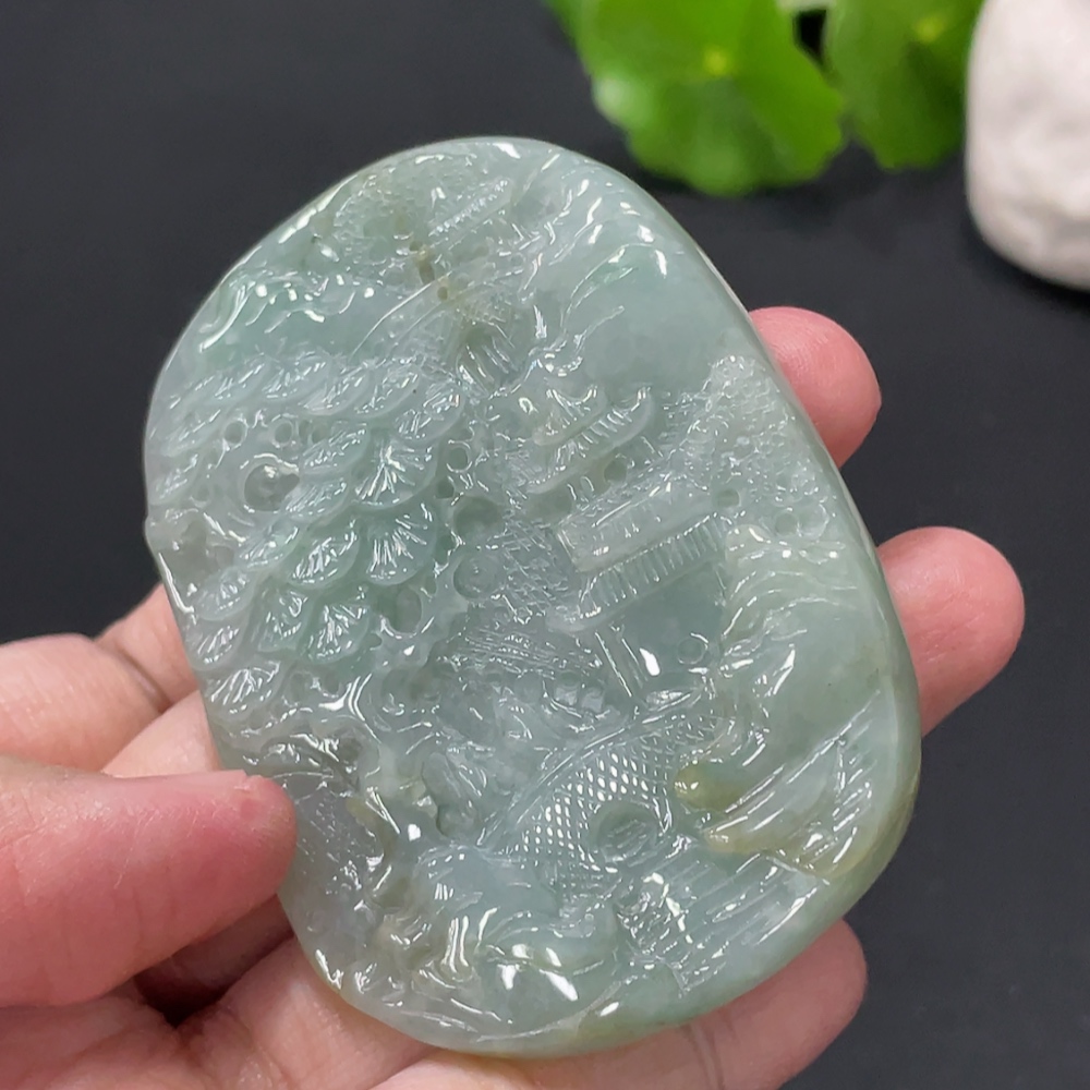 Jadeitelandscape pendant (Total weight approx. 53.7g, with defects)