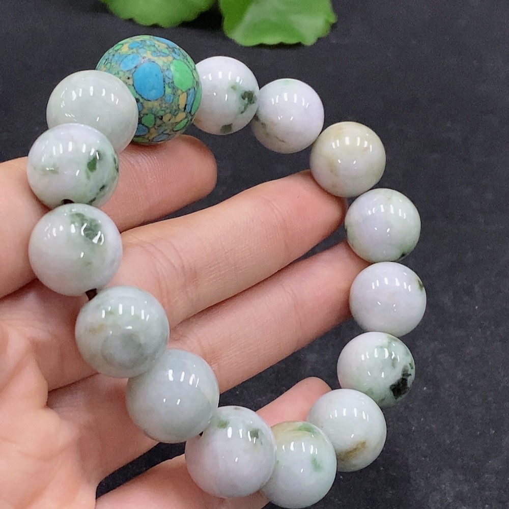 Jadeite Bracelet Approx. 13.4mm Total Weight Approx. 62.42g Non-Grade A Beads Containing Other Mineral Components