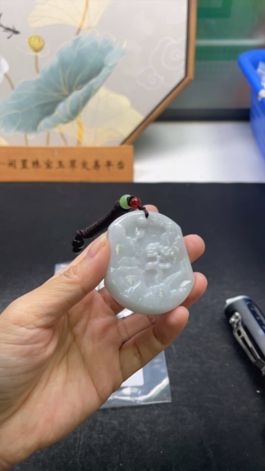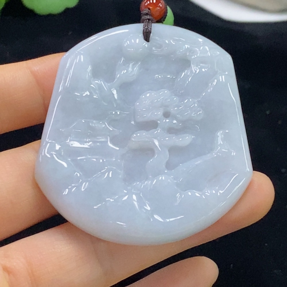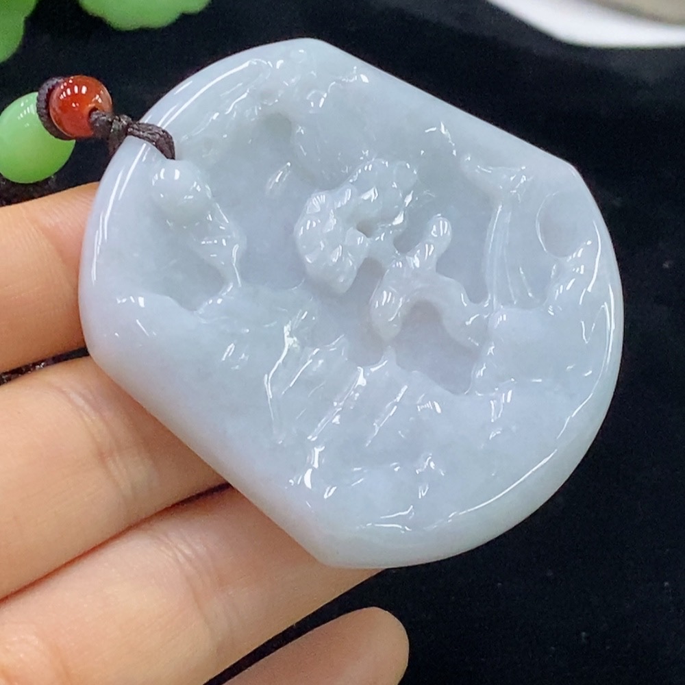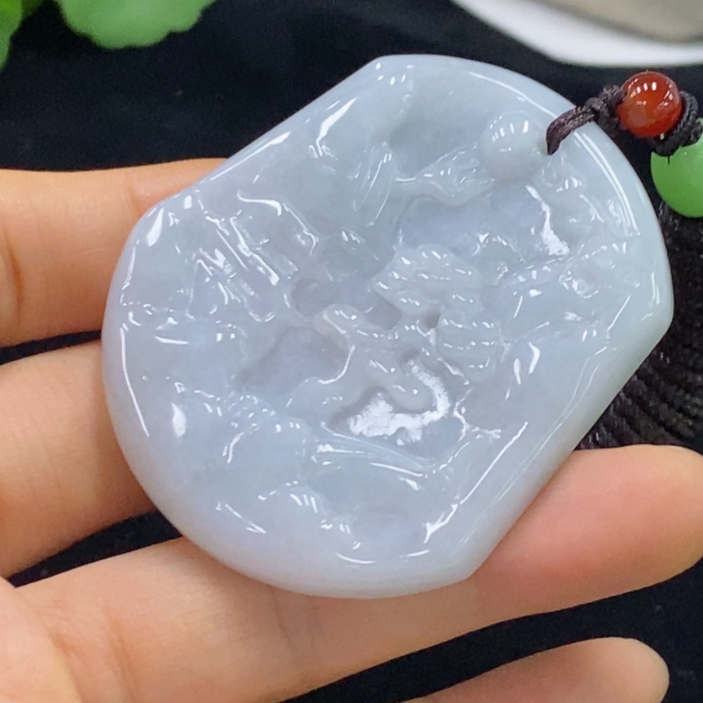Jadeite Landscape Pendant Total Weight Approx. 41.43g (Including Cord Weight) Matching Beads Non-Grade A