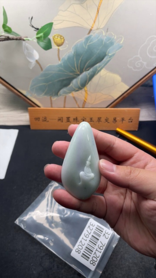 Jadeite Pendant of Formless Guanyin, total weight approximately 61.28g