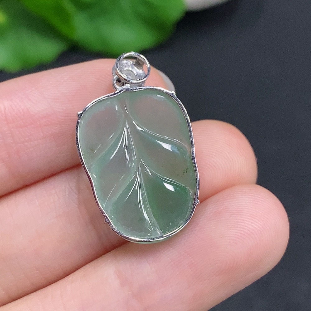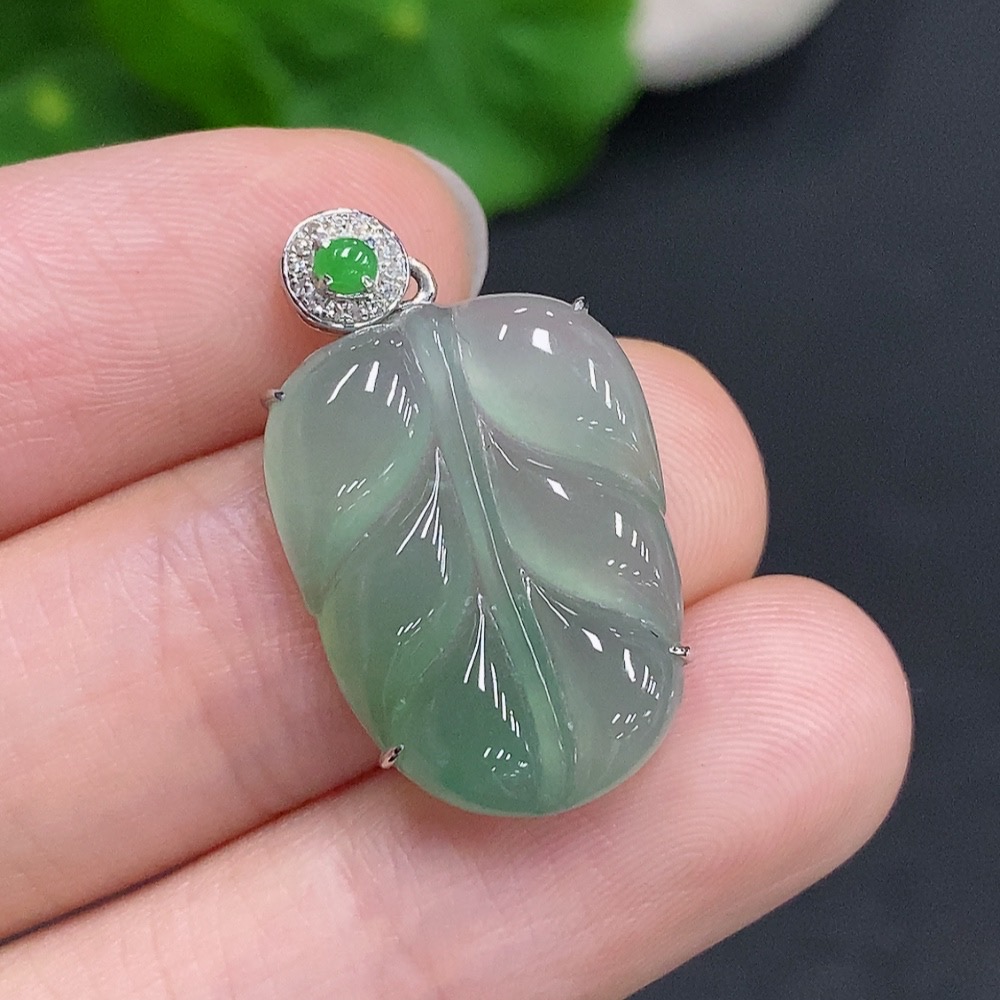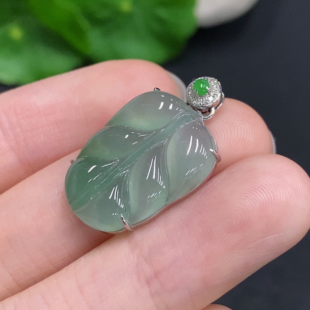 Jadeite Leaf Pendant 18K Gold Total Weight Approx. 3.2g