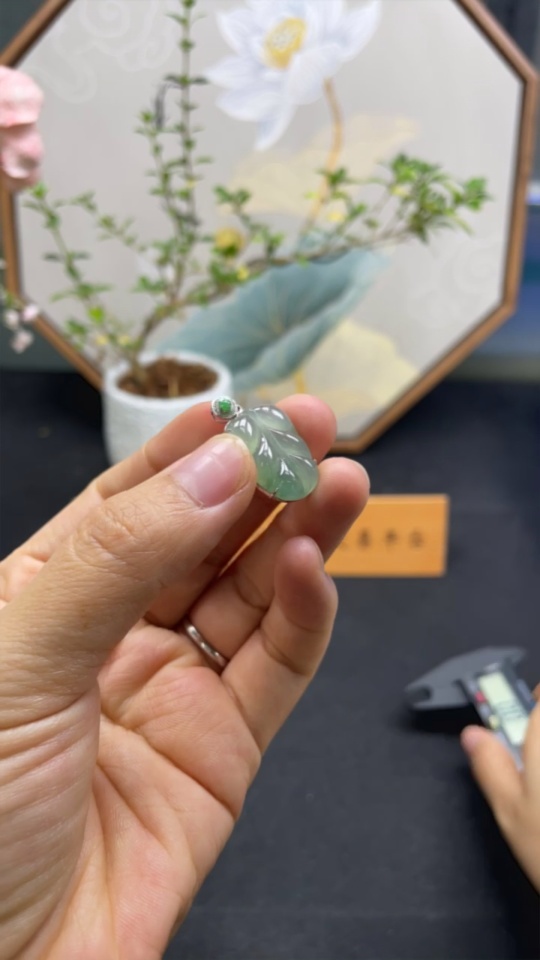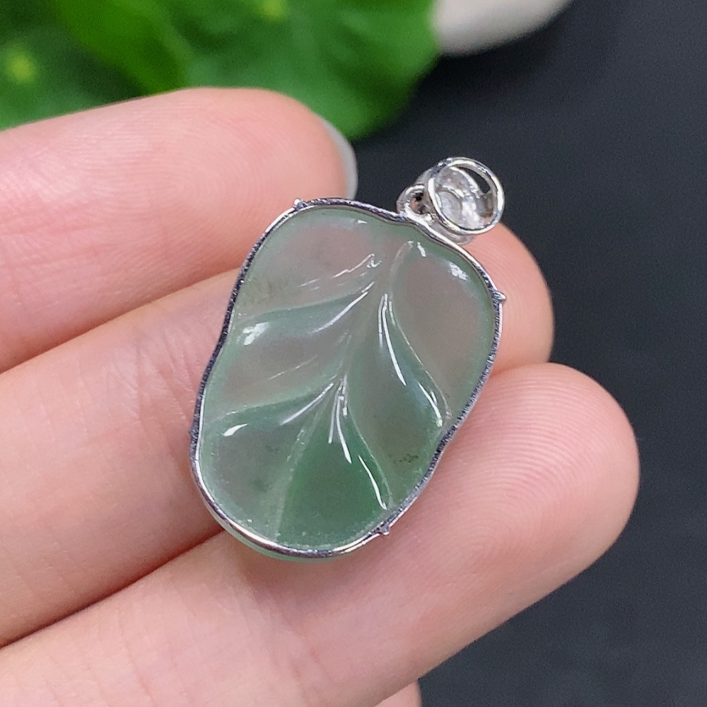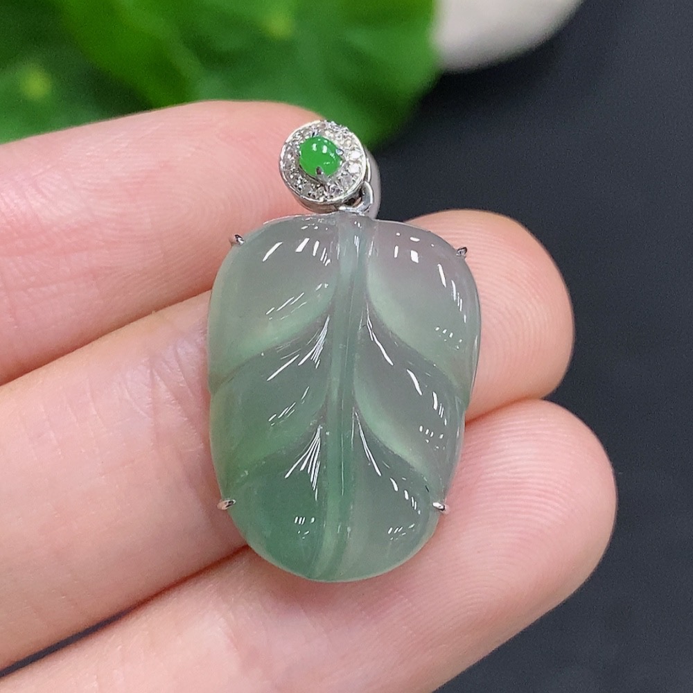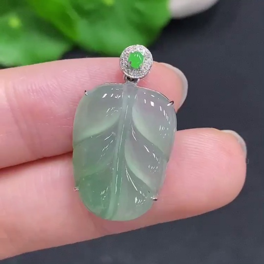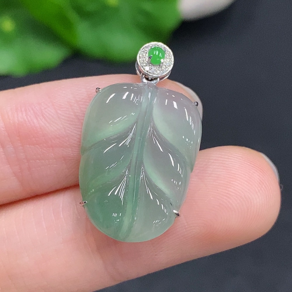 Jadeite Leaf Pendant 18K Gold Total Weight Approx. 3.2g