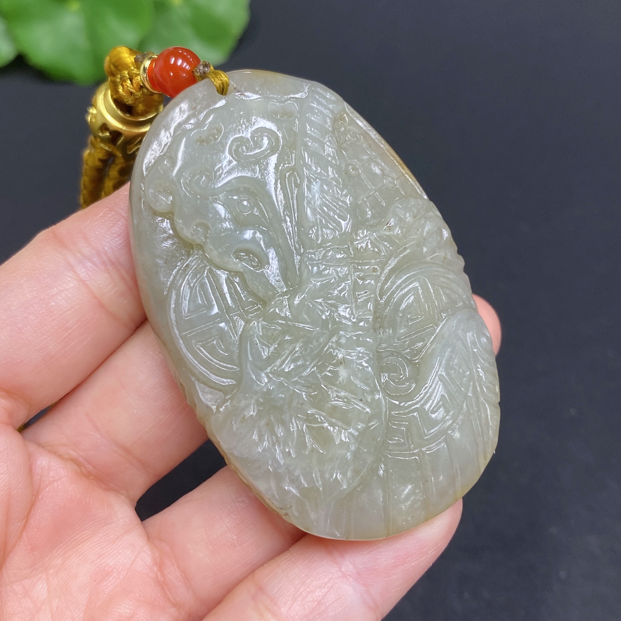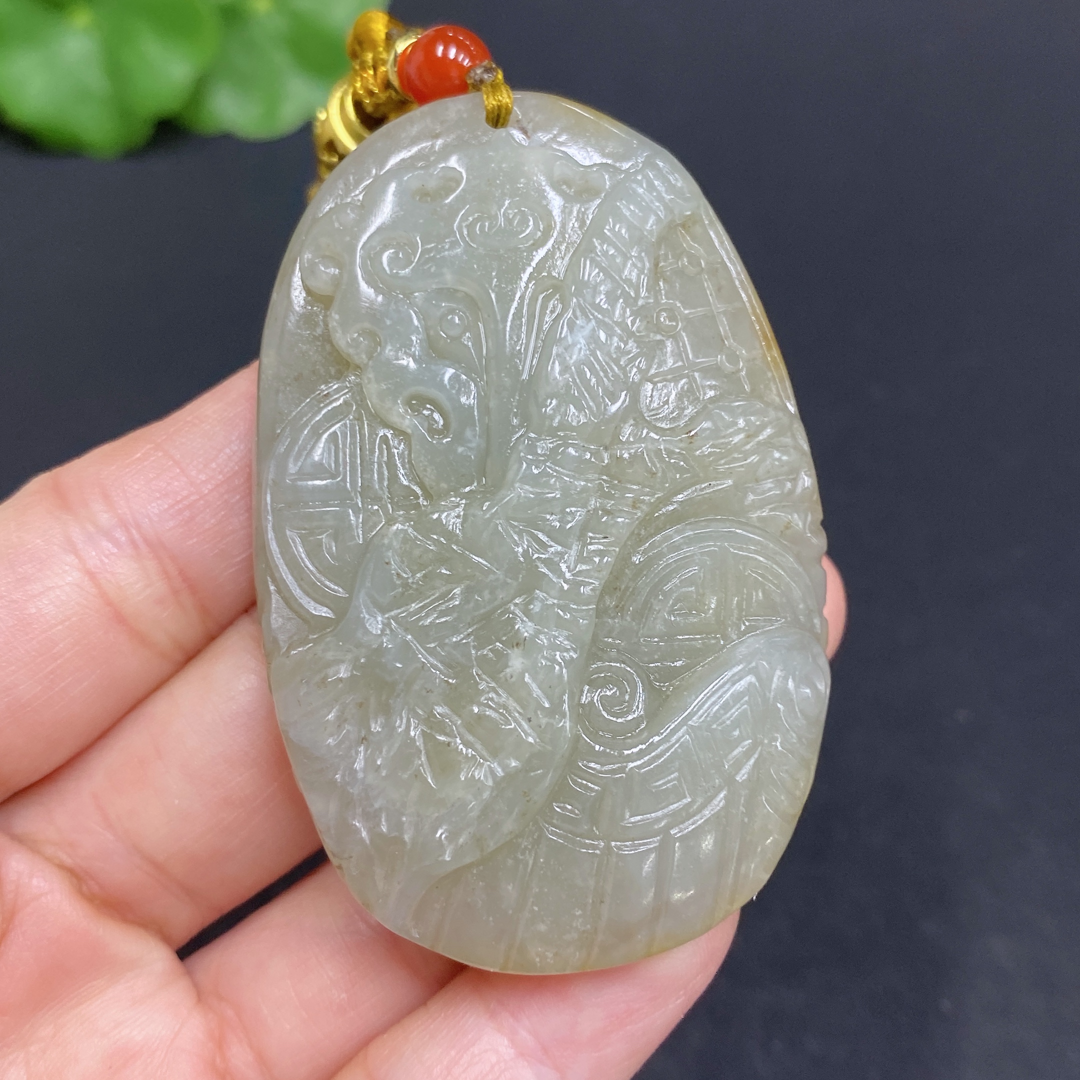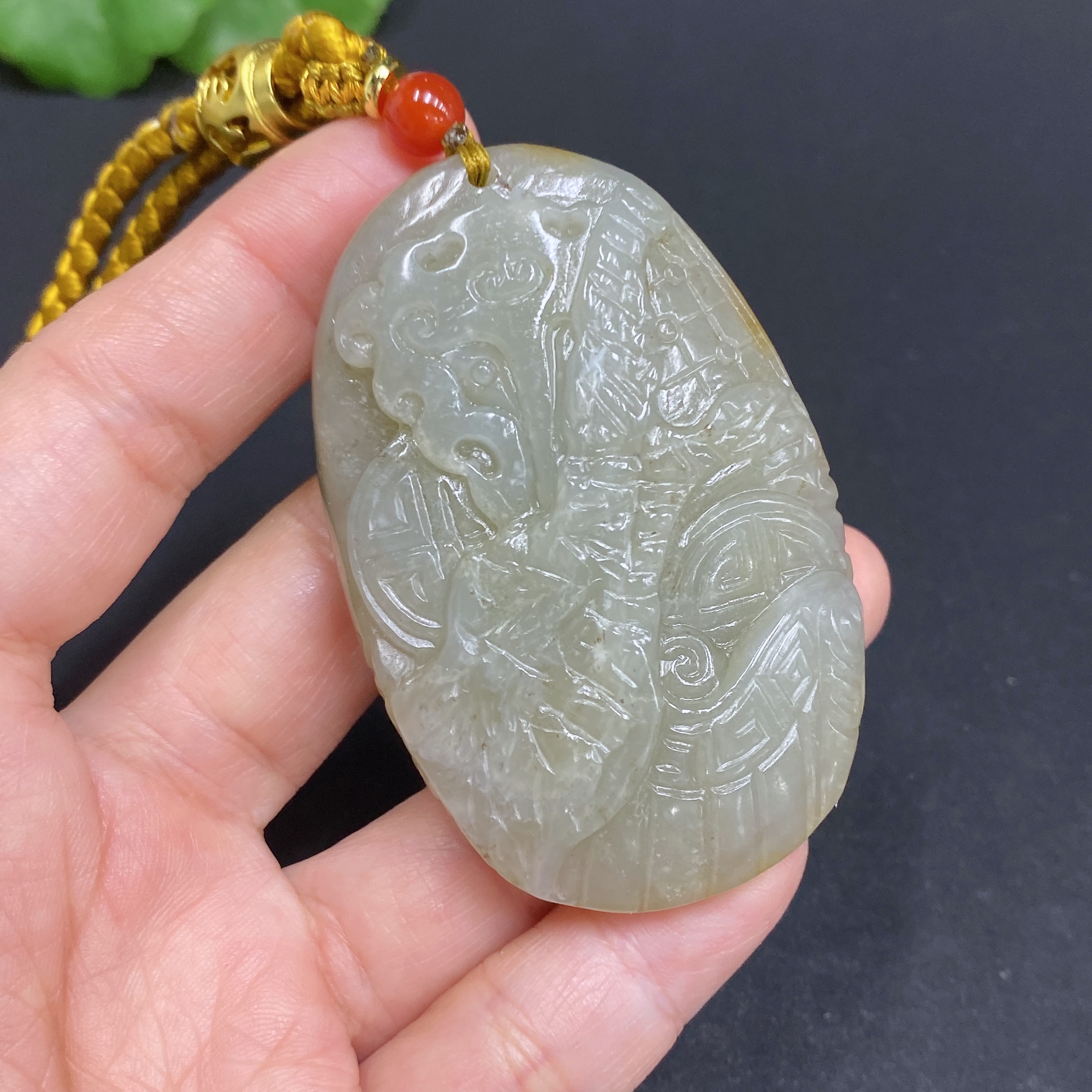 Hetian Jade Pendant, Antique-style Piece, Total Weight Approx. [including cord] 68.7g, Undetermined Skin Color Origin