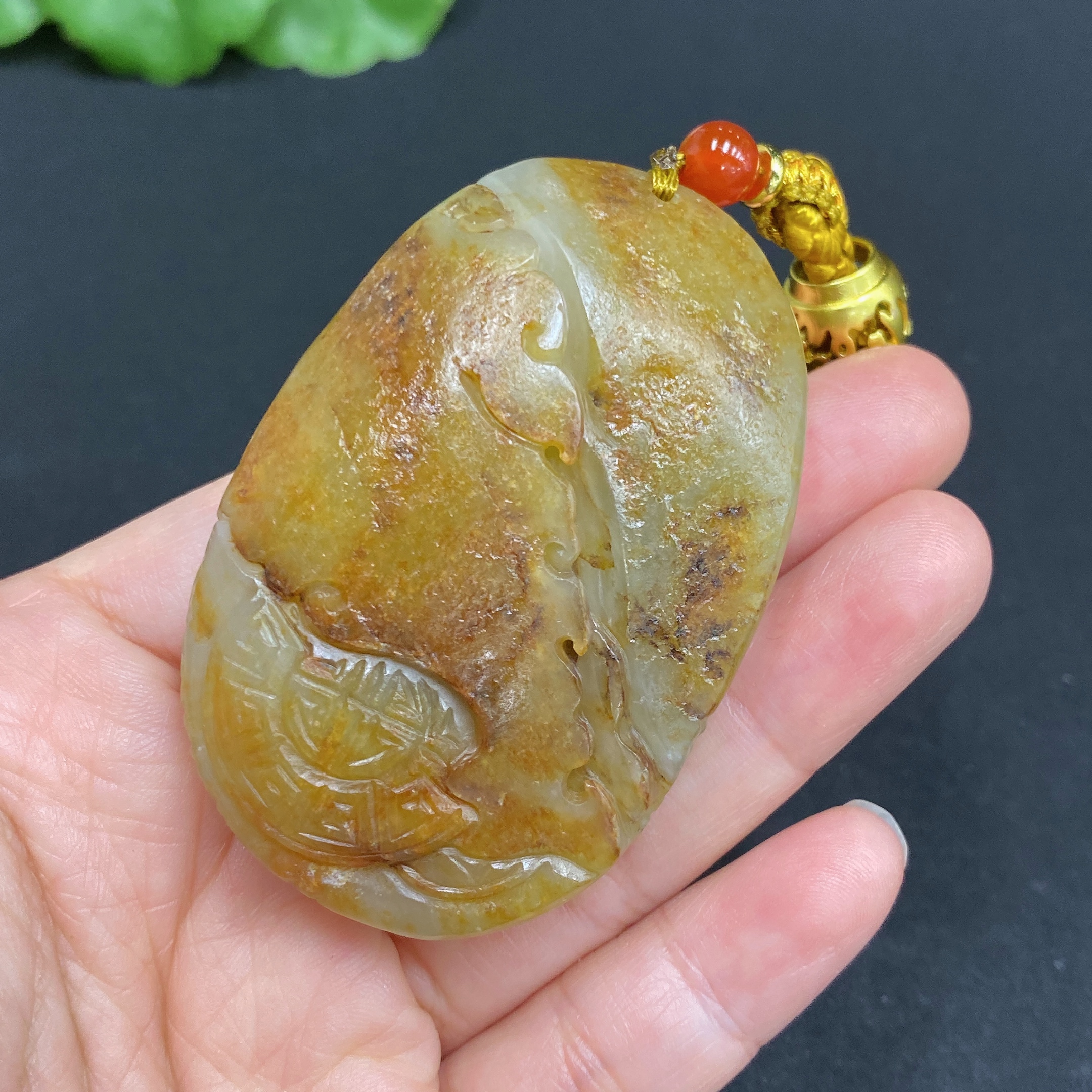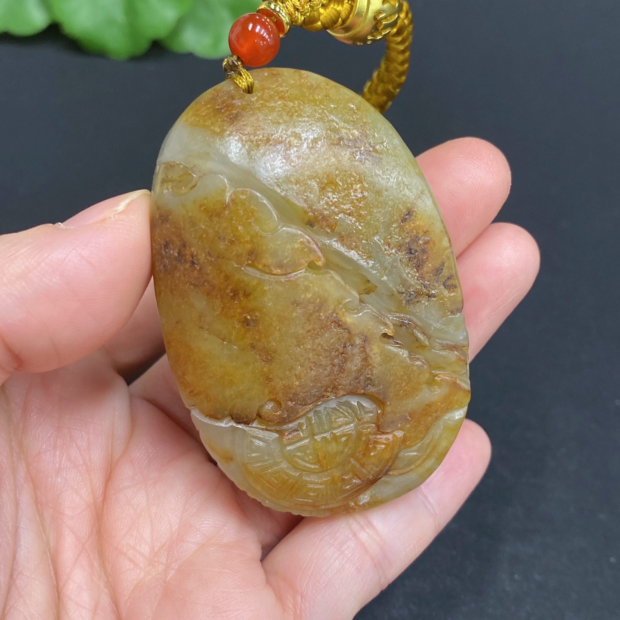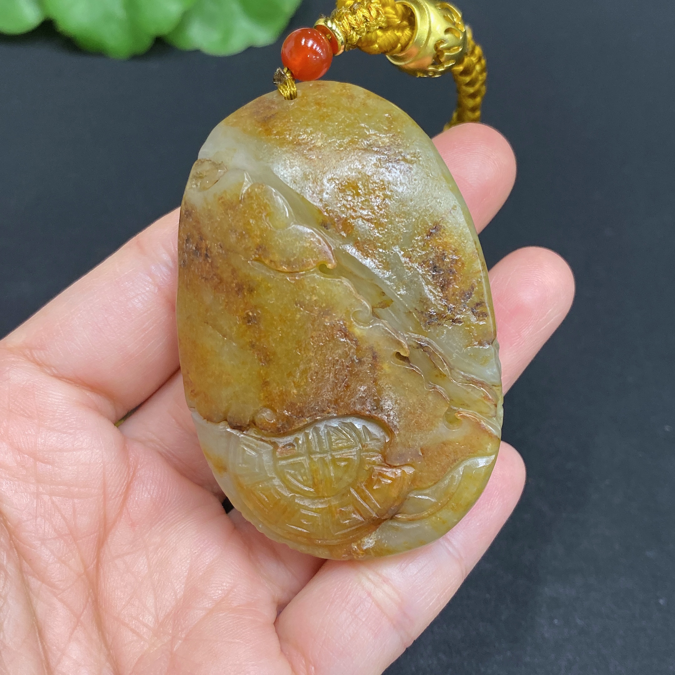 Hetian Jade Pendant, Antique-style Piece, Total Weight Approx. [including cord] 68.7g, Undetermined Skin Color Origin