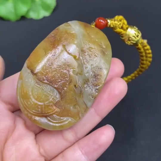 Trezaar - Hetian Jade Pendant, Antique-style Piece, Total Weight Approx. [including cord] 68.7g, Undetermined Skin Color Origin