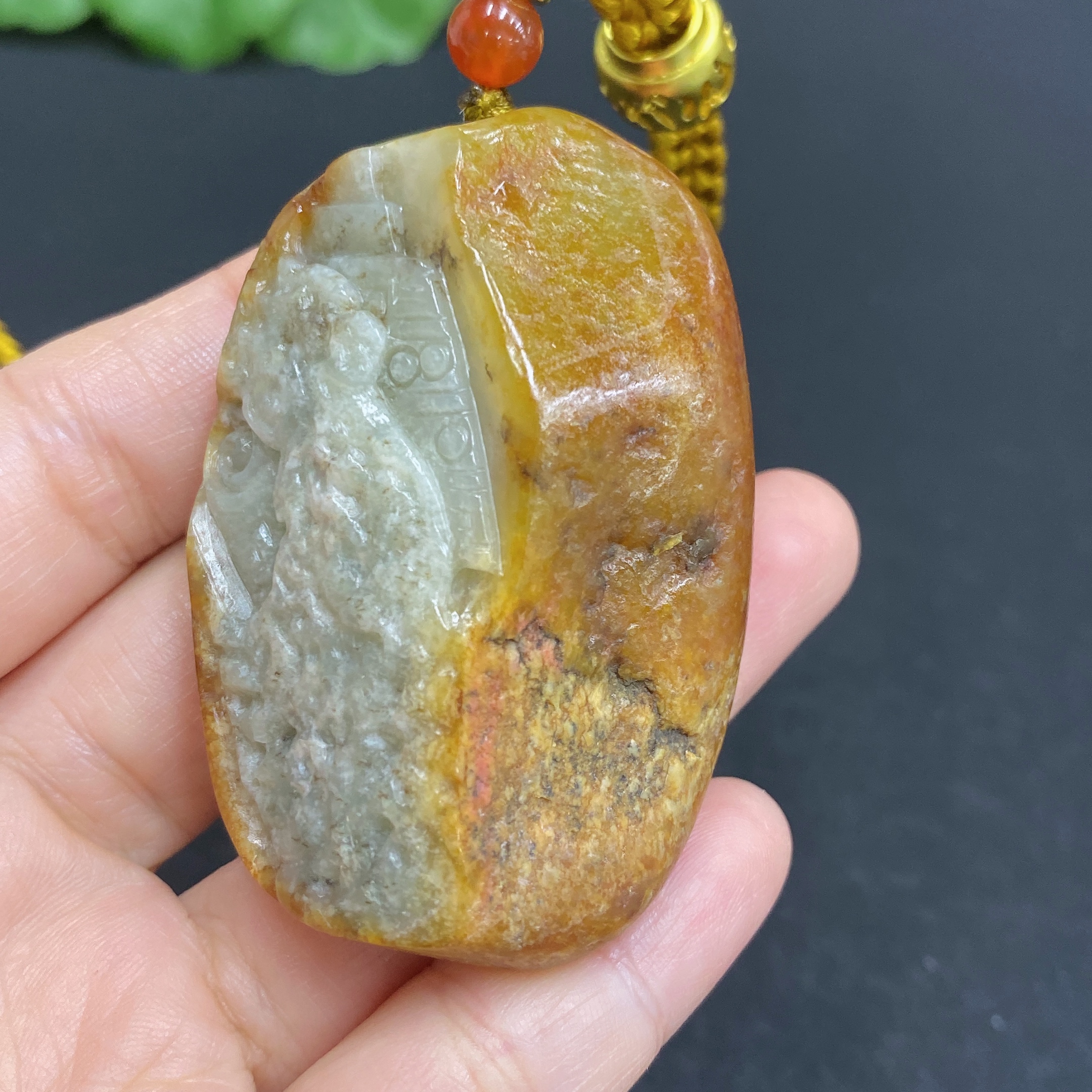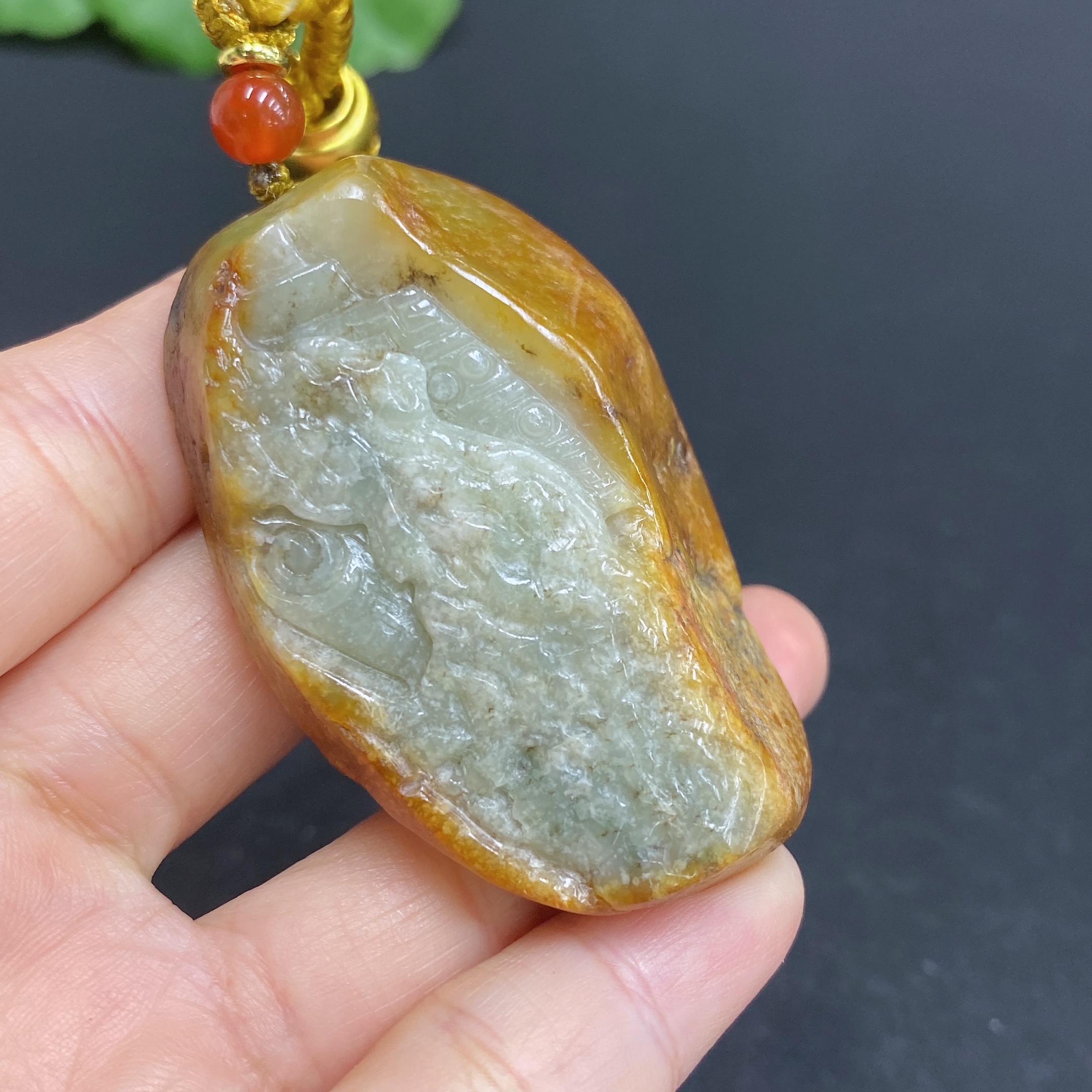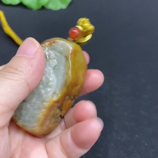 Hetian Jade Handheld Carving Antique-style Piece with Other Mineral Components Undetermined Skin Color Origin Total Weight Approx. [Including String] 67.1g