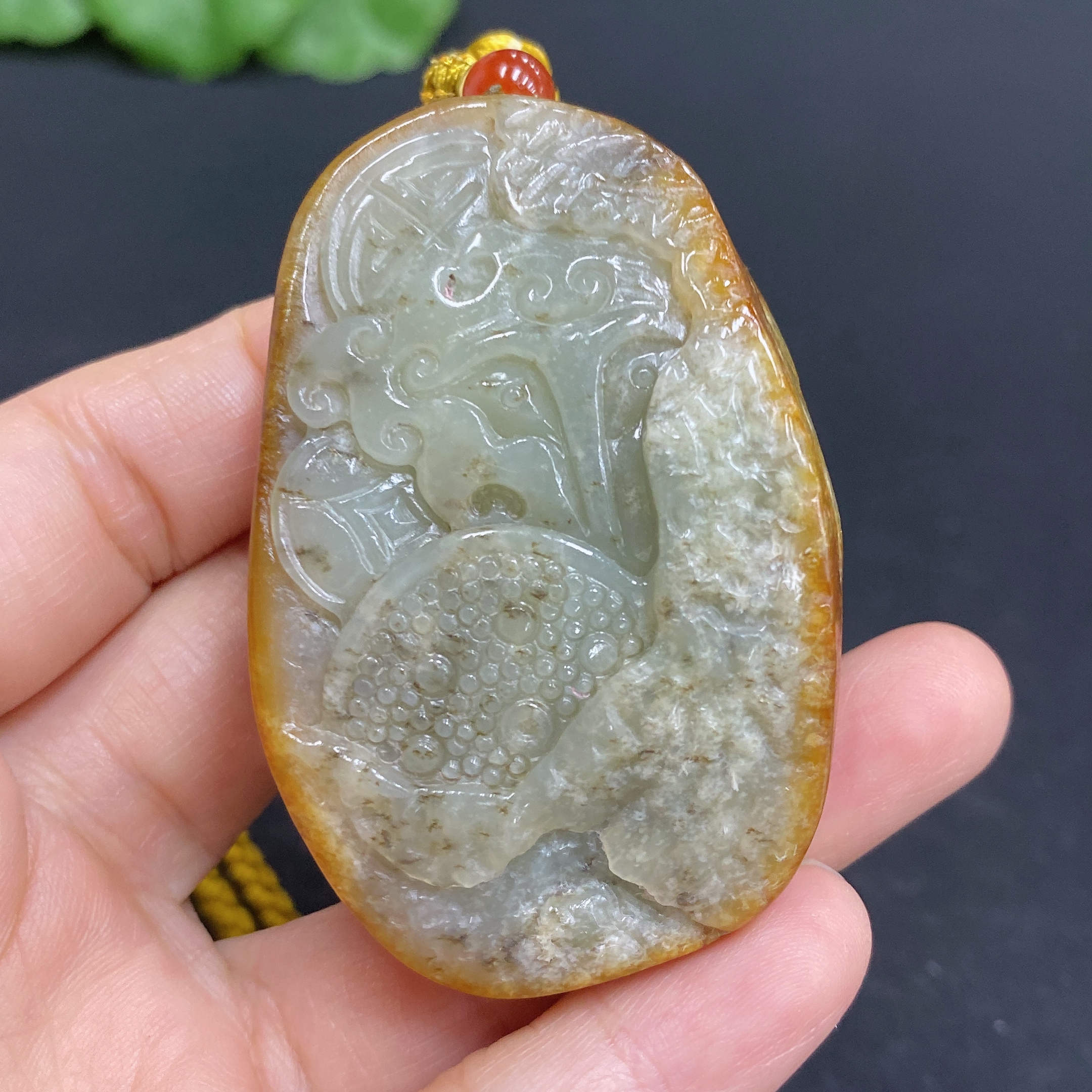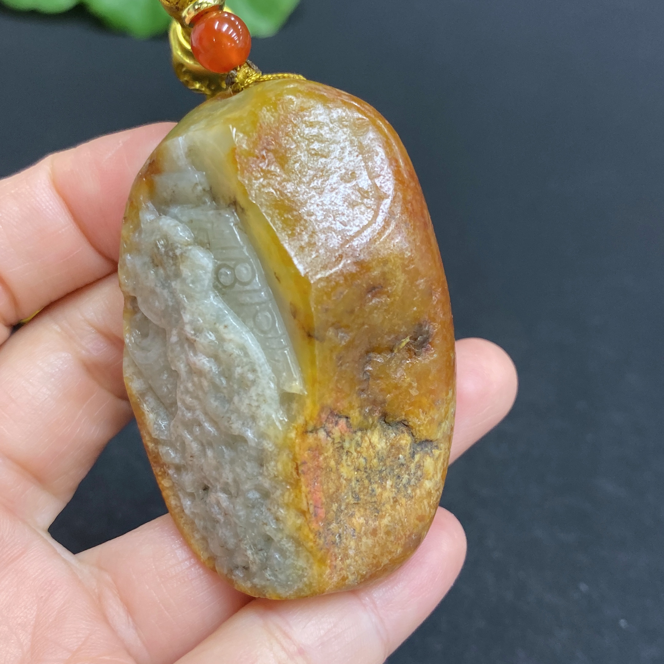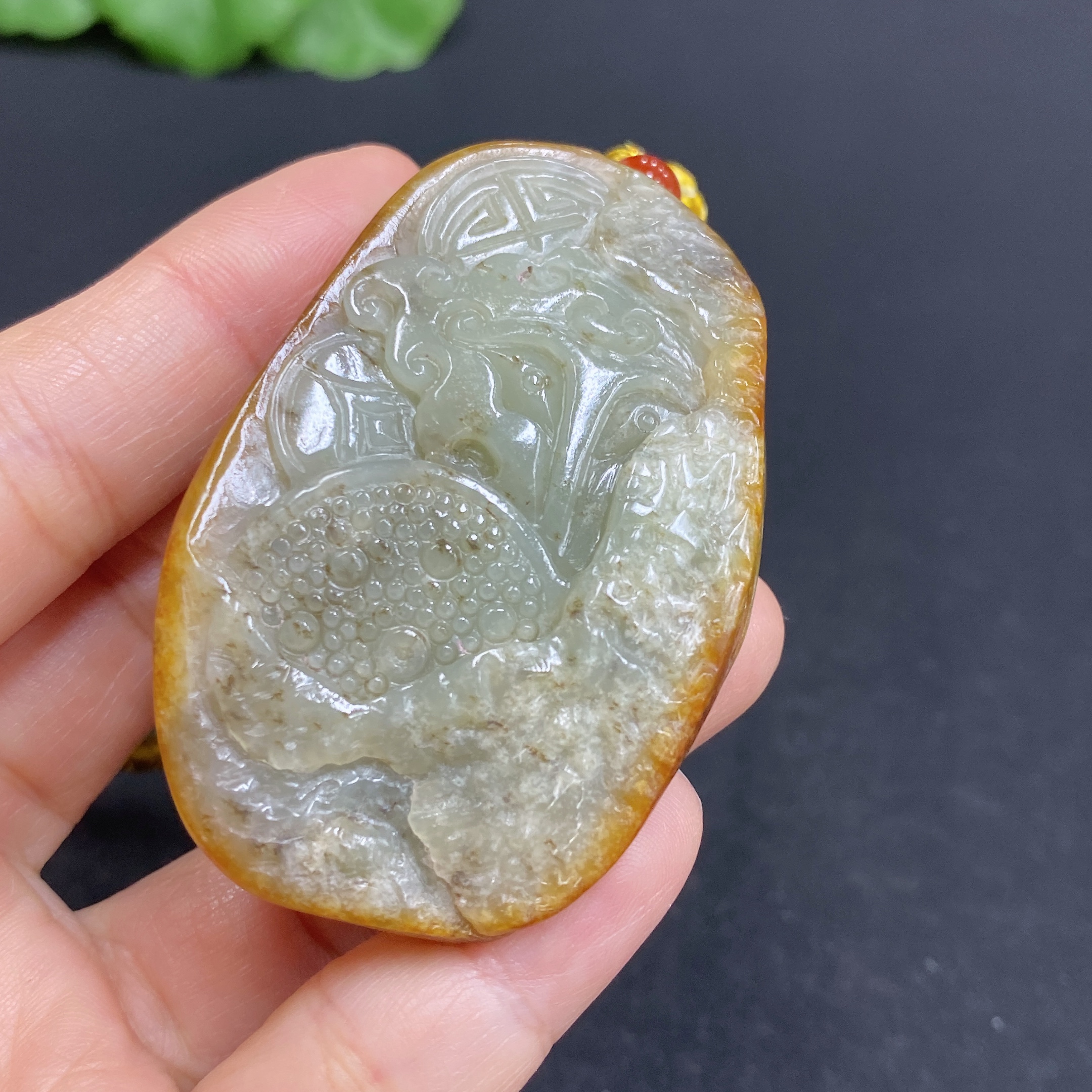 Hetian Jade Handheld Carving Antique-style Piece with Other Mineral Components Undetermined Skin Color Origin Total Weight Approx. [Including String] 67.1g