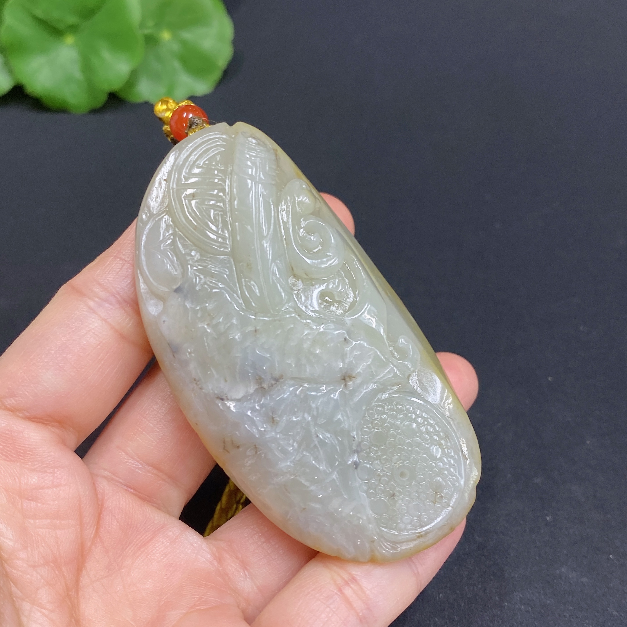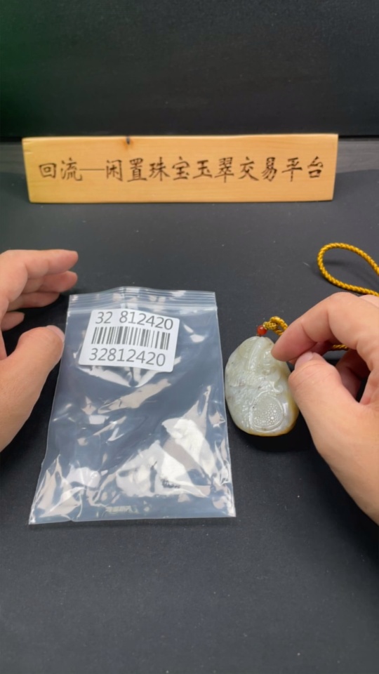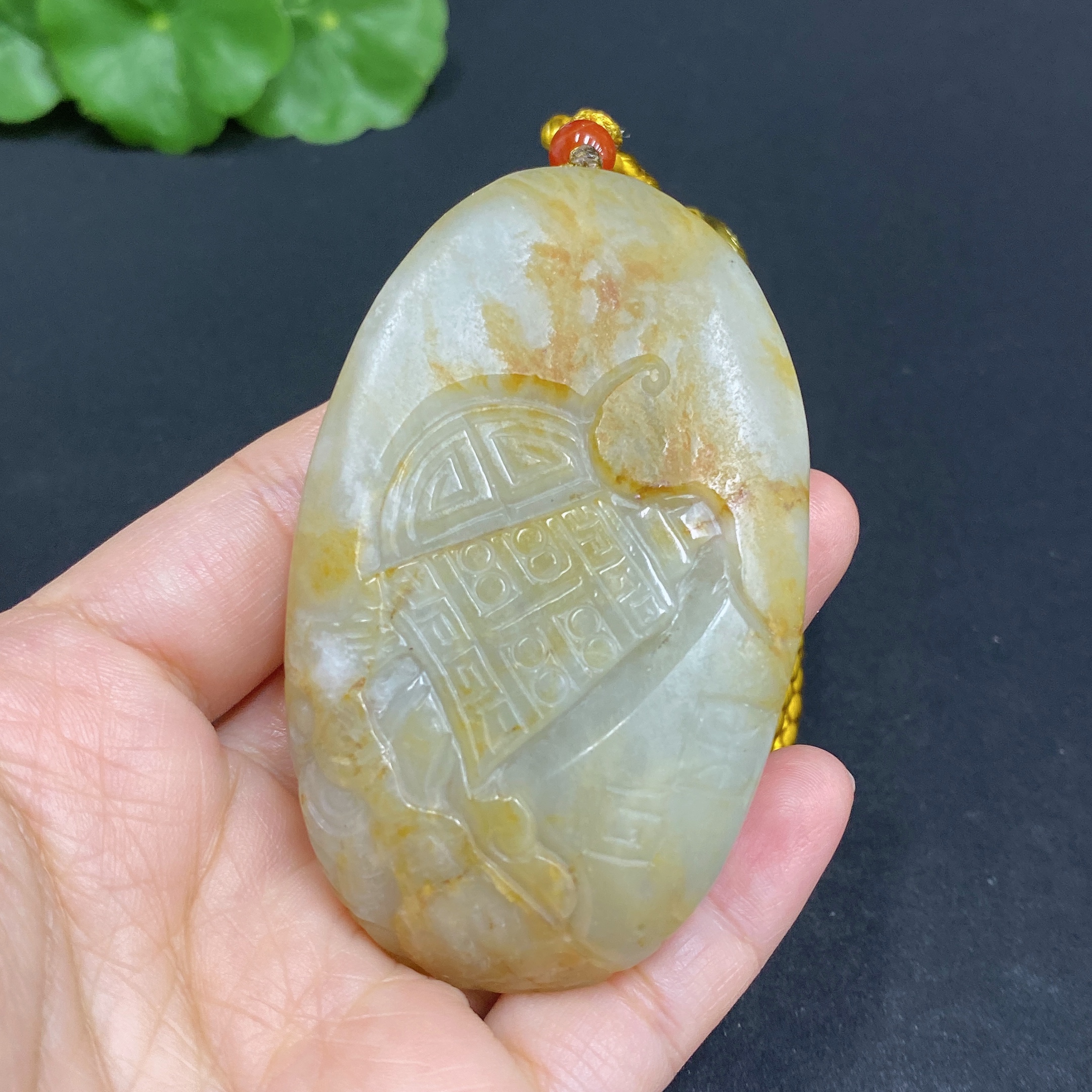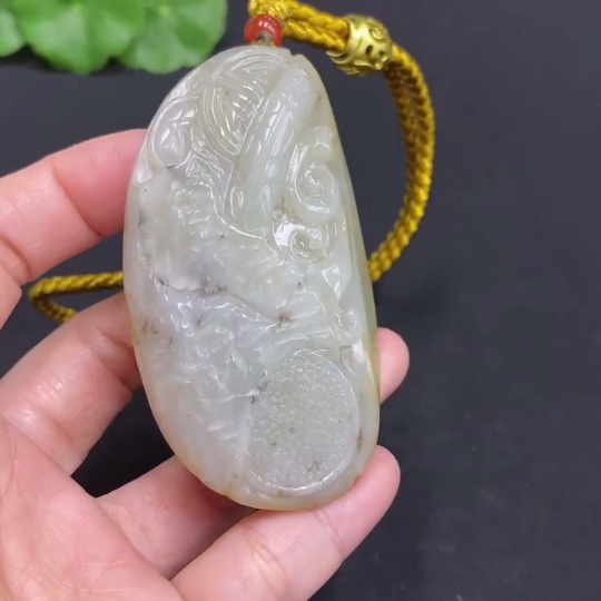 Hetian Jade Handheld Piece, Antique-style Piece, Total Weight Approx. [Including Rope] 92.5g, Undetermined Skin Color Origin