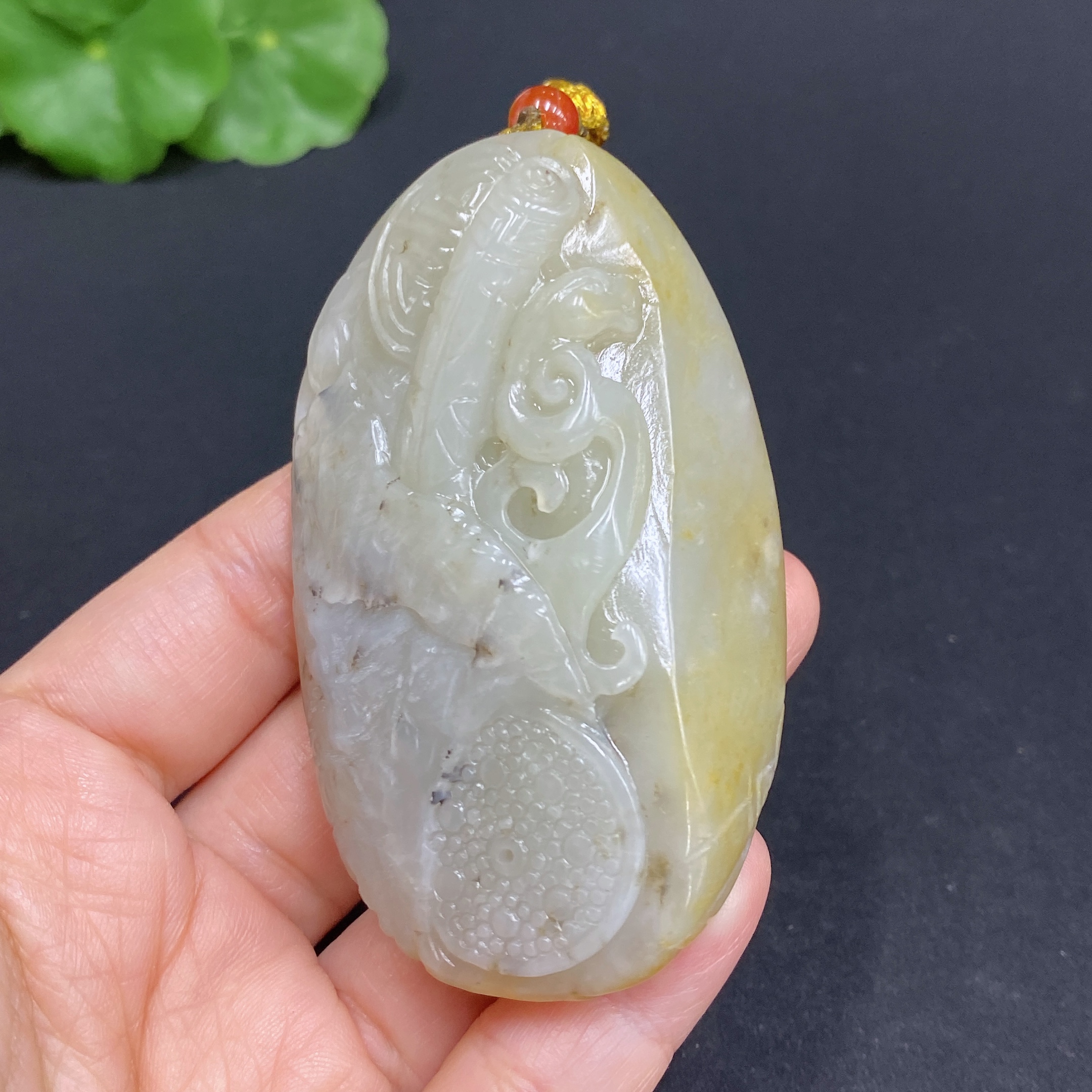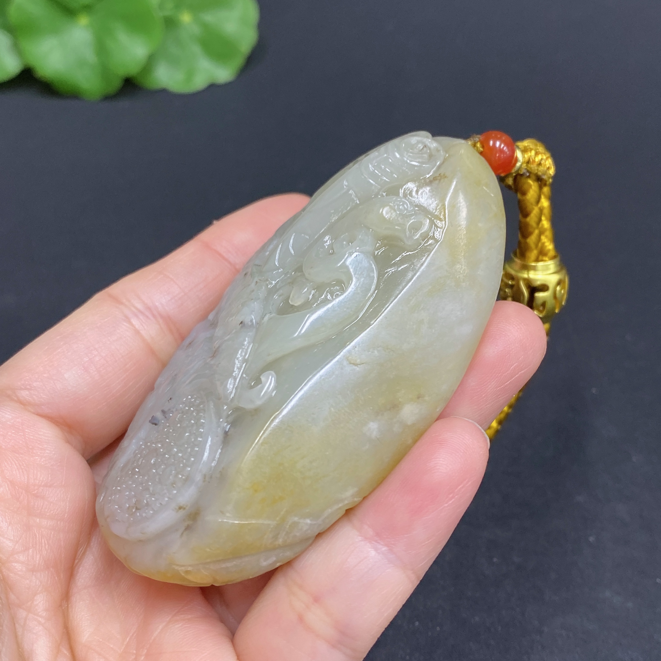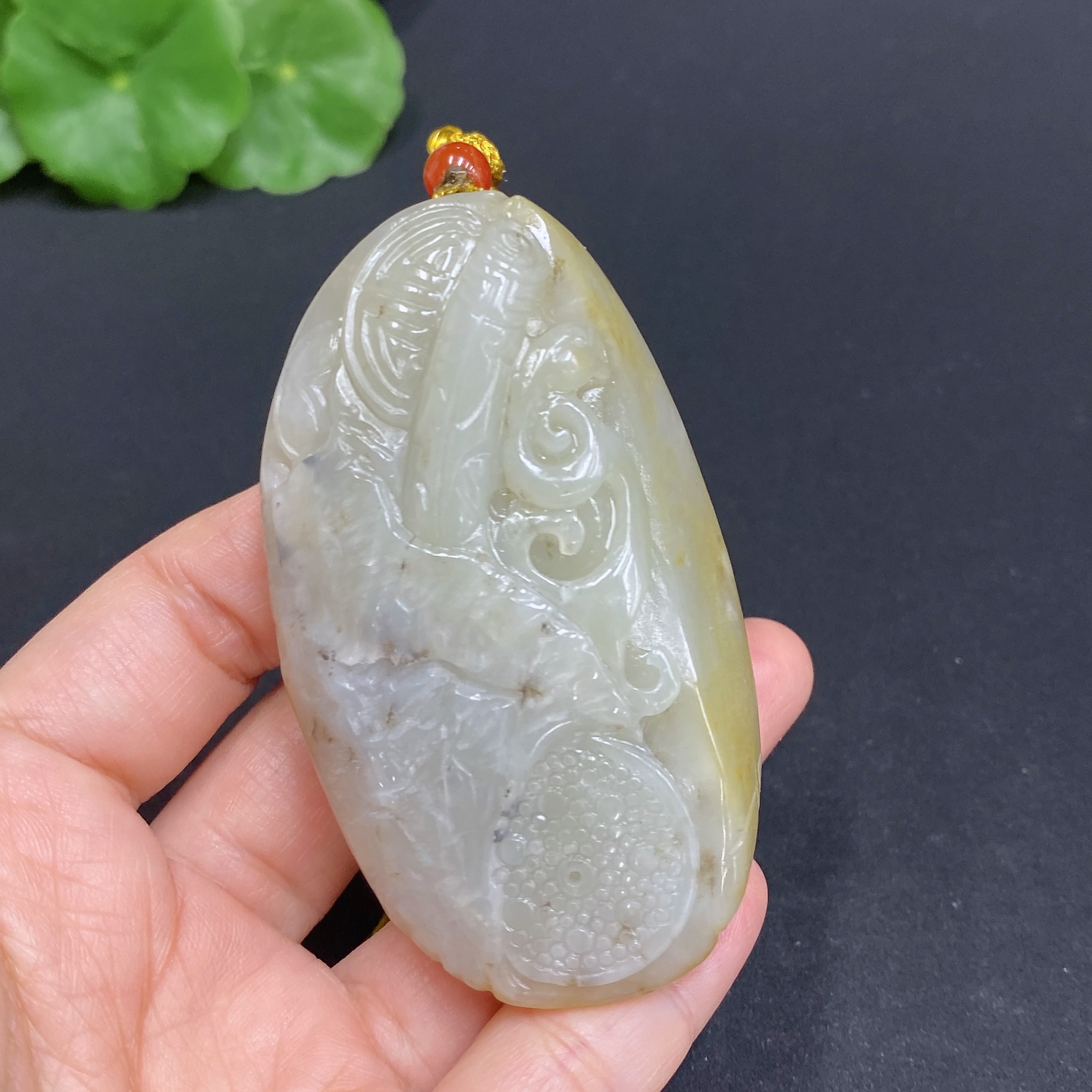 Hetian Jade Handheld Piece, Antique-style Piece, Total Weight Approx. [Including Rope] 92.5g, Undetermined Skin Color Origin