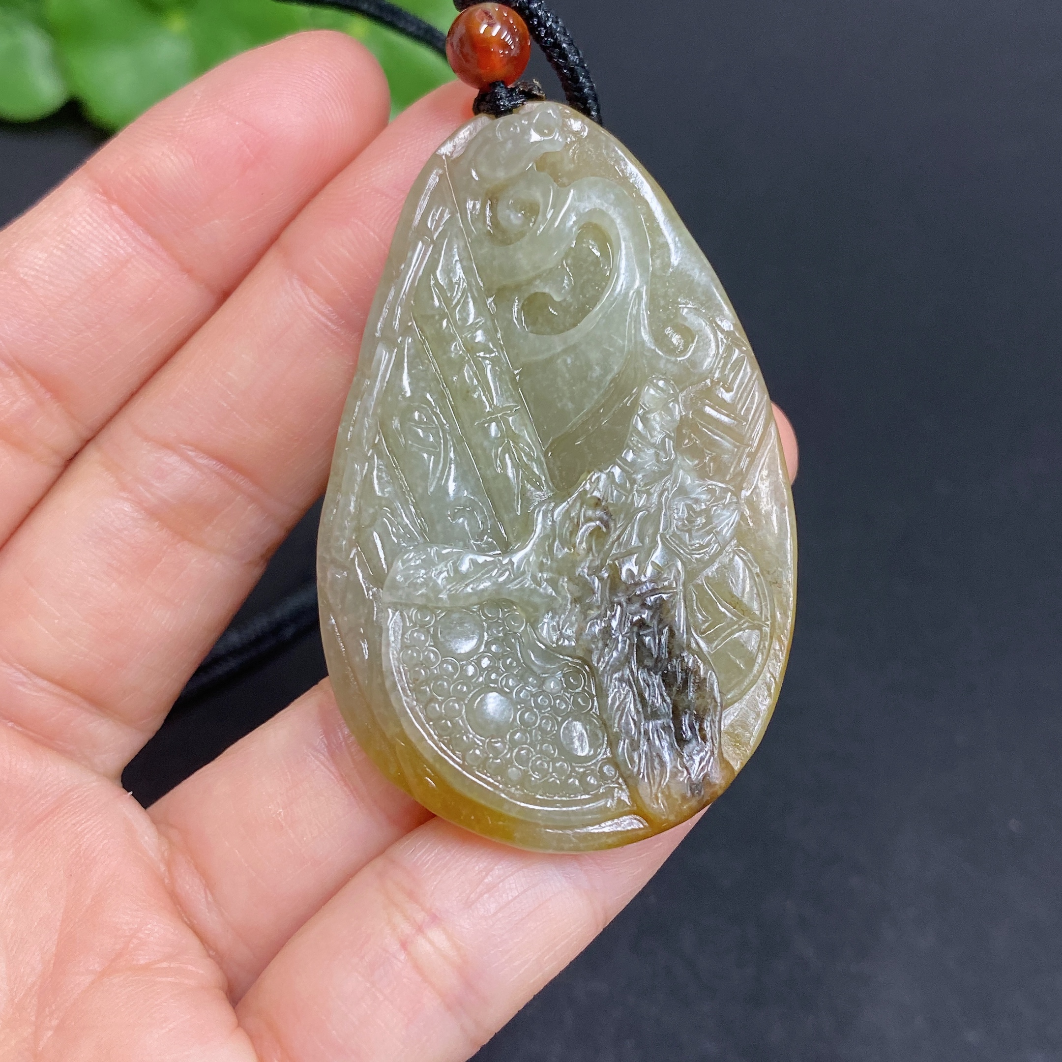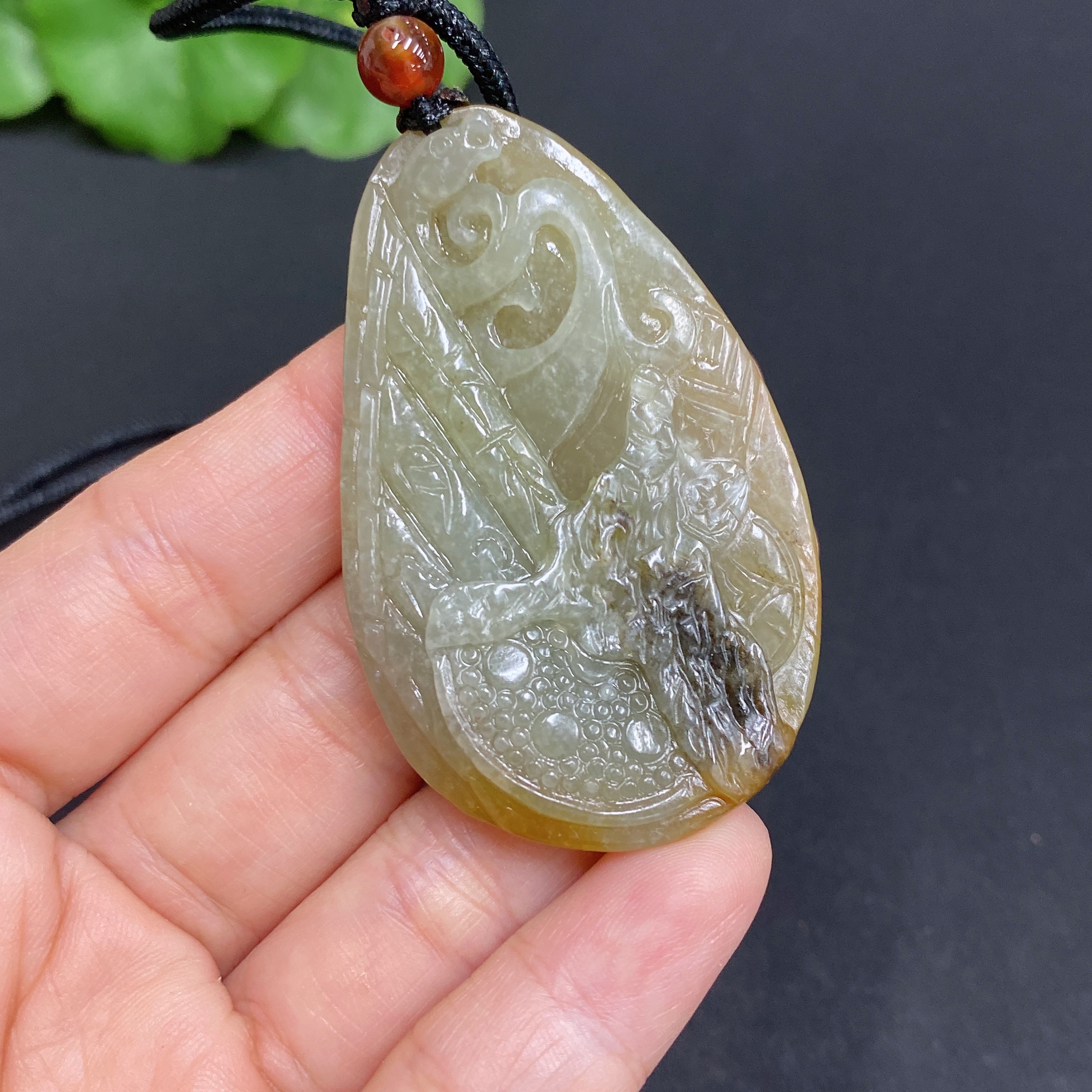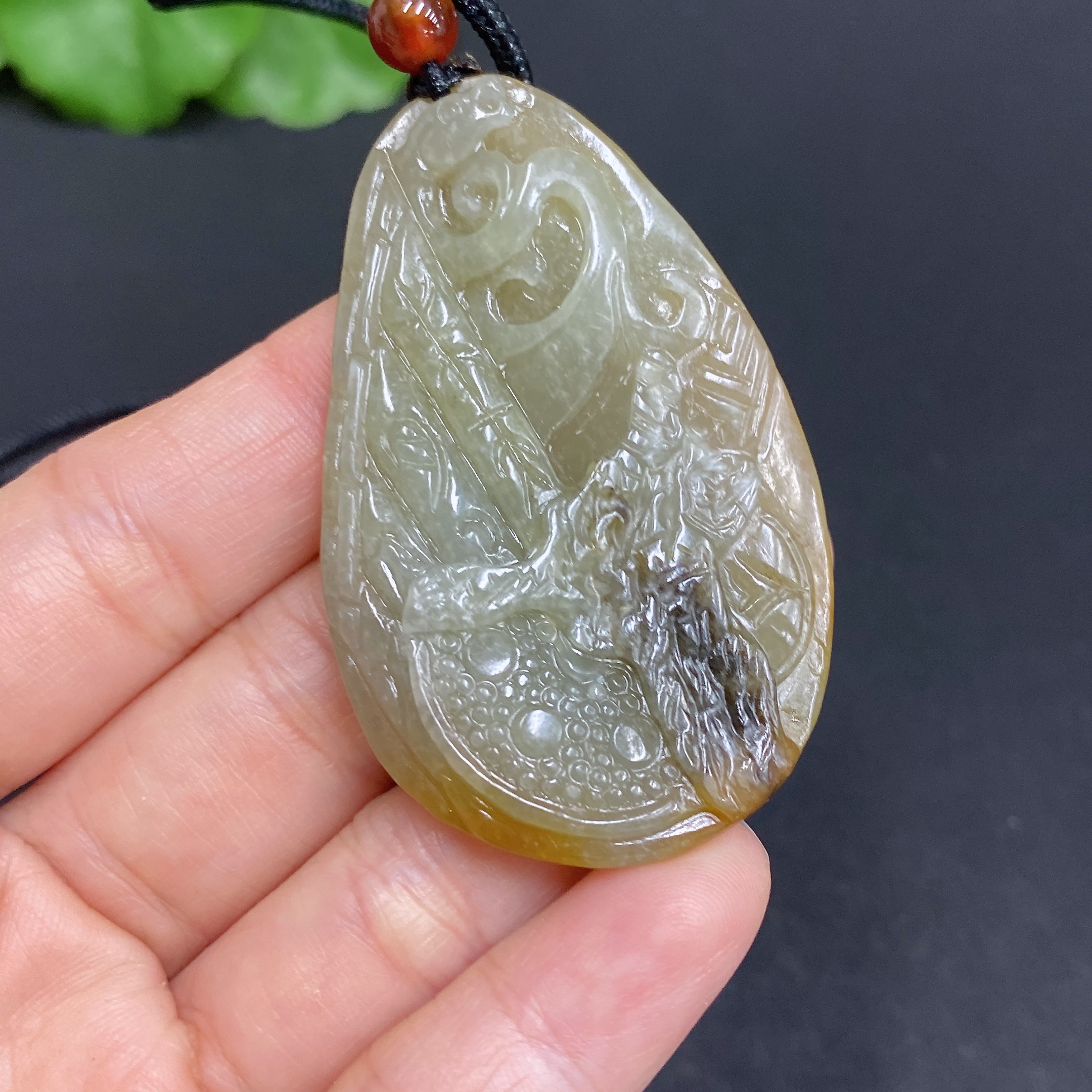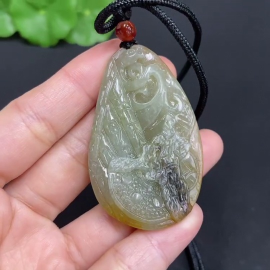 Hetian Jade Seed Material Pendant, Antique Style, Total Weight Approx. [Including Rope] 23.9g