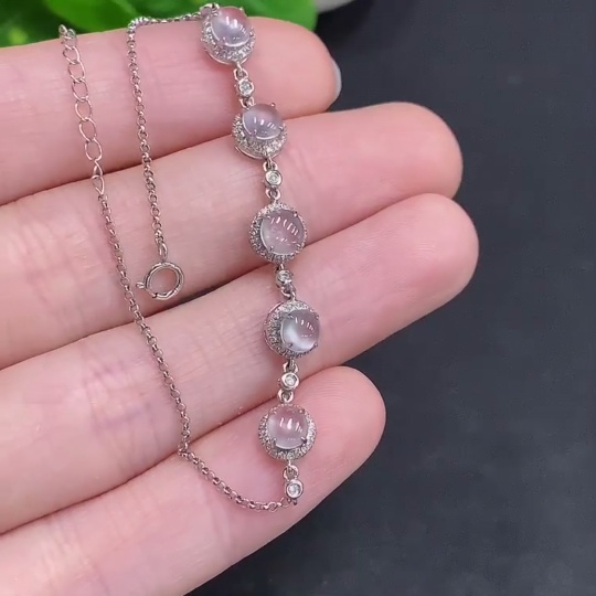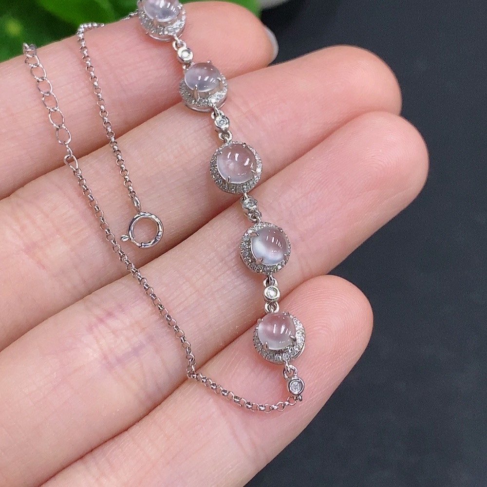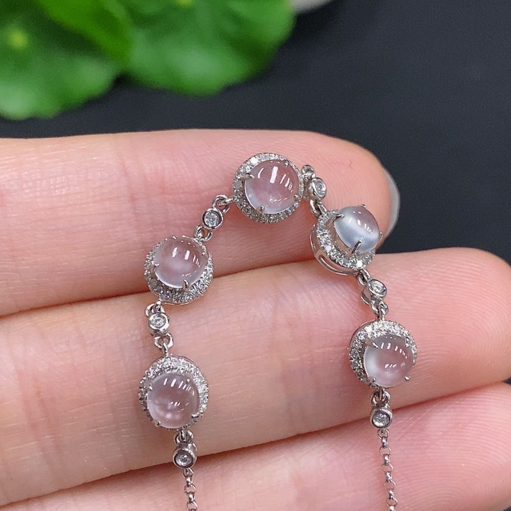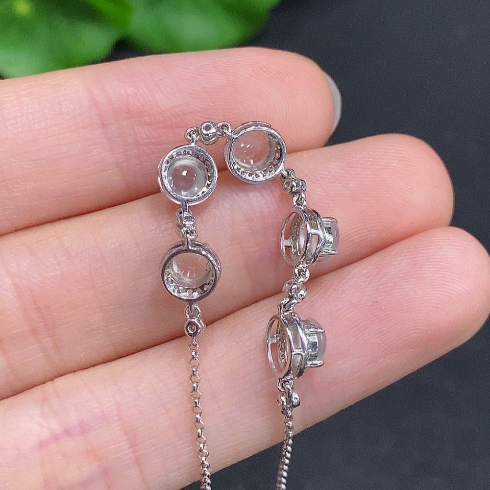 Jadeite Cabochon Inlaid Bracelet 18k Gold Total Weight Approx. 2.4g With Diamond Accents