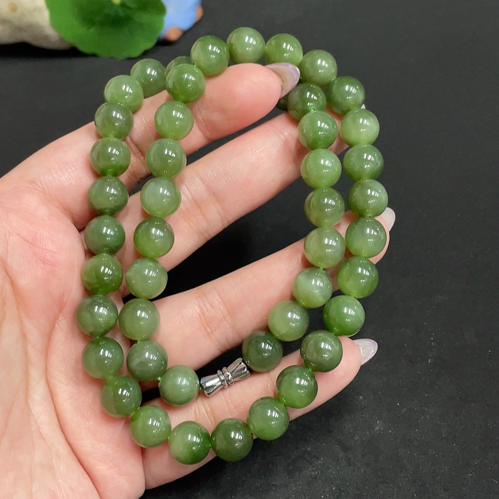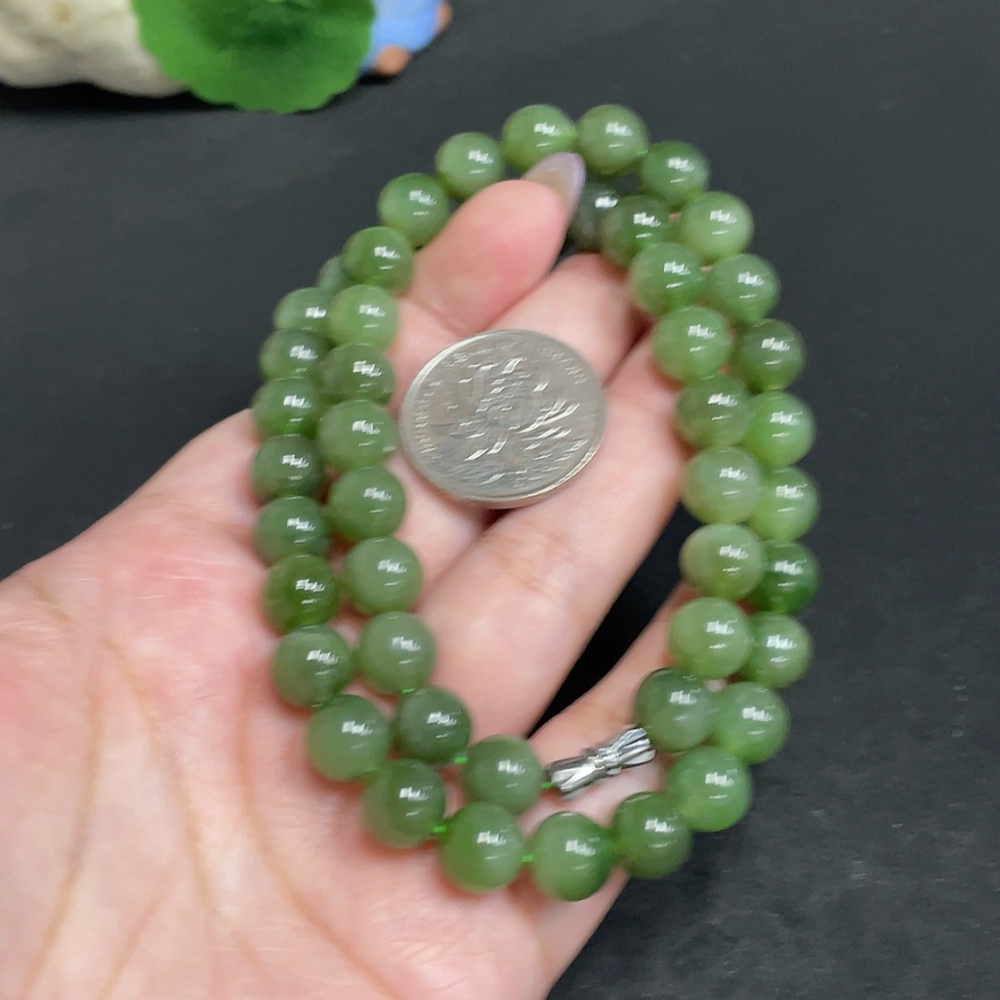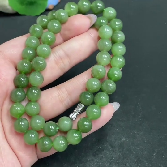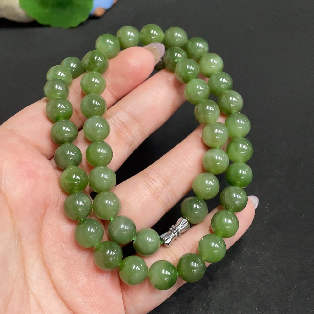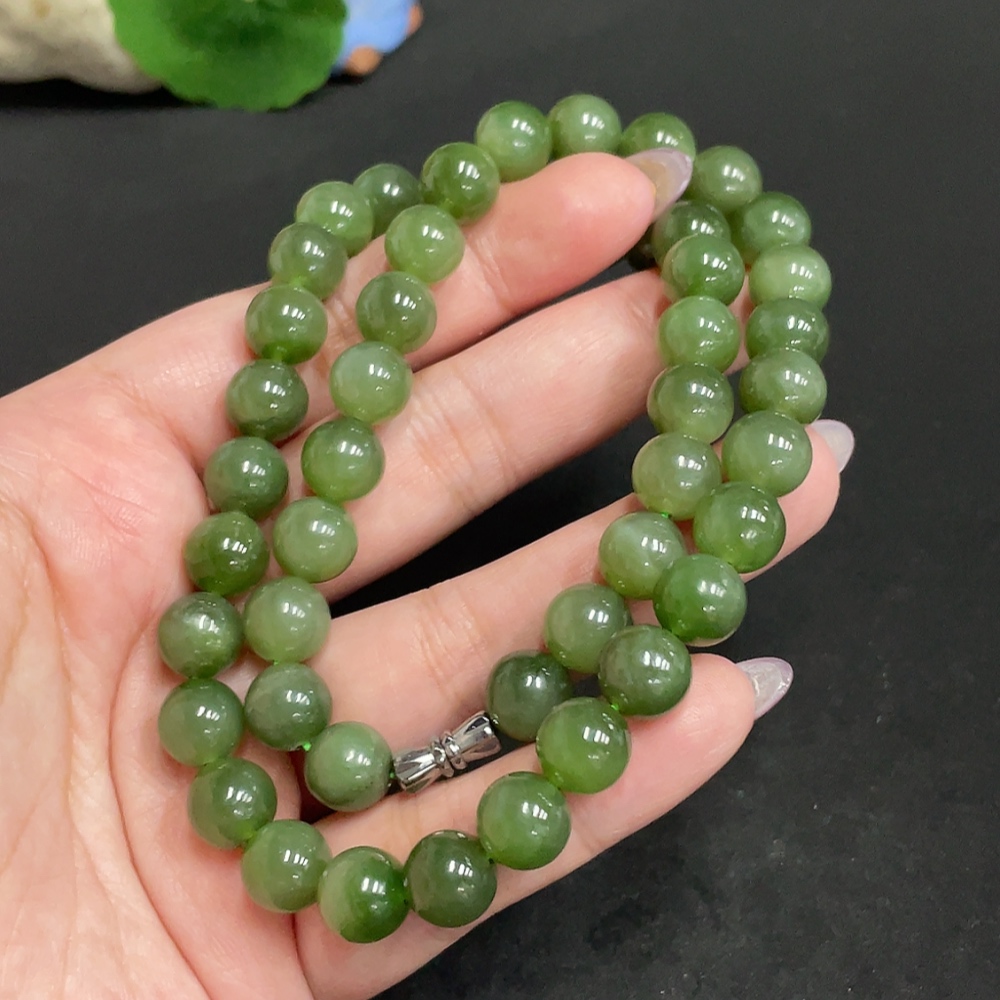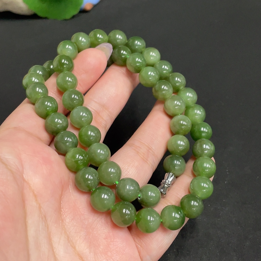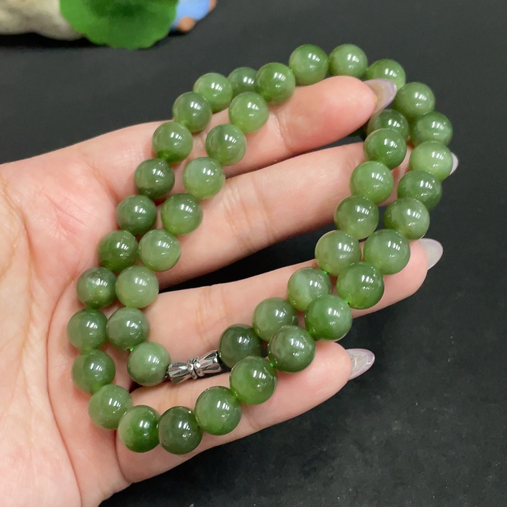 Hetian Jade Bead Necklace, Approx. 9.2 mm, Total Weight Approx. 63.3g