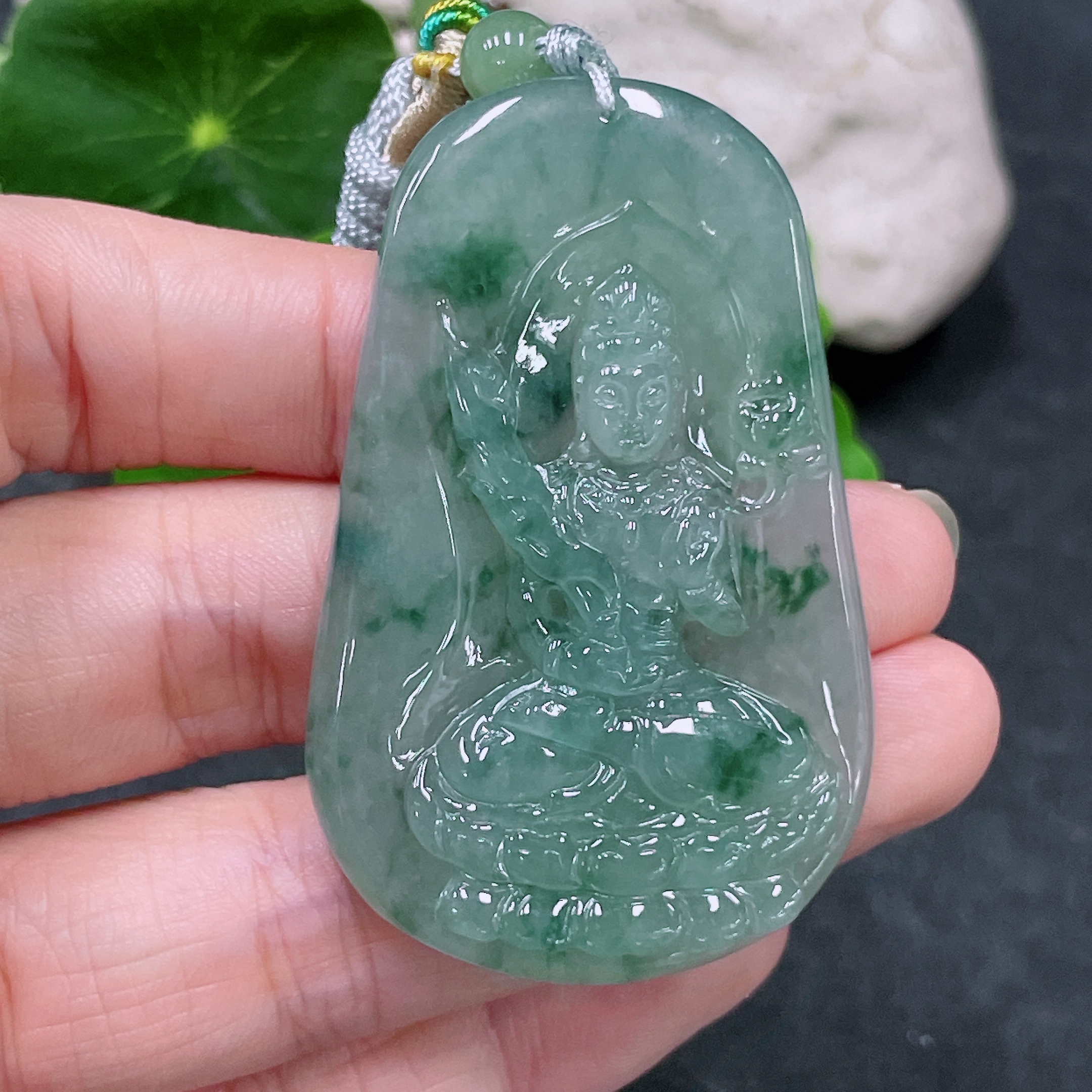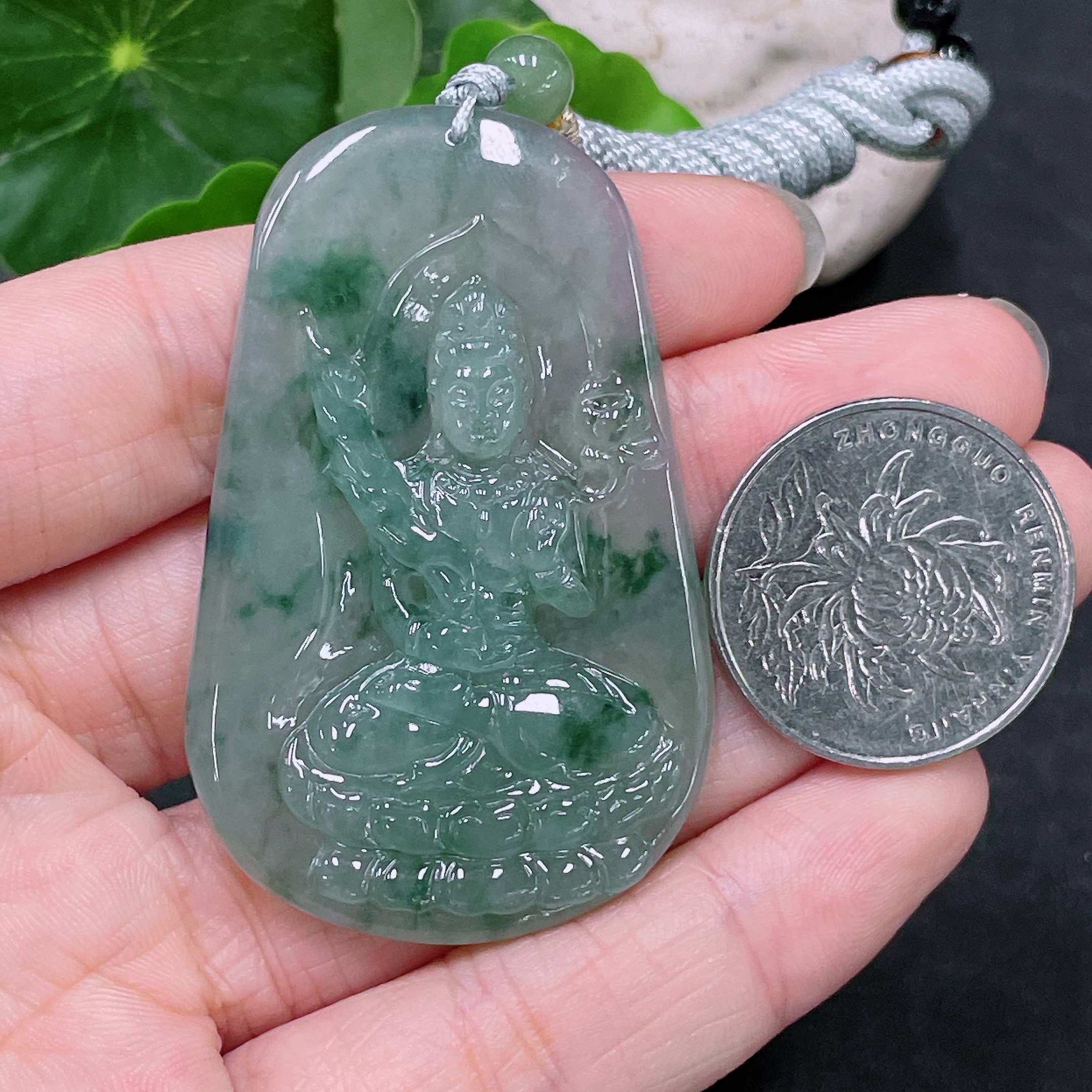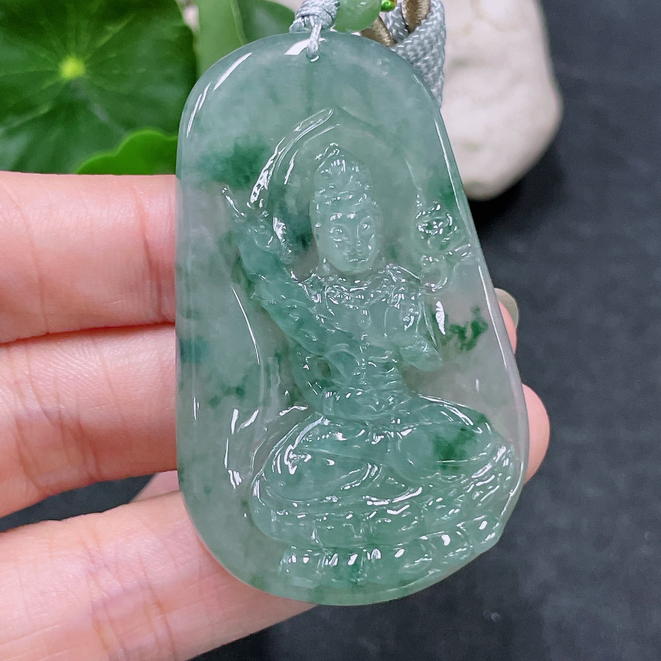 Jadeite Pendant Guanyin with Non-A Beads Including Rope Total Weight Approx. 24.13g