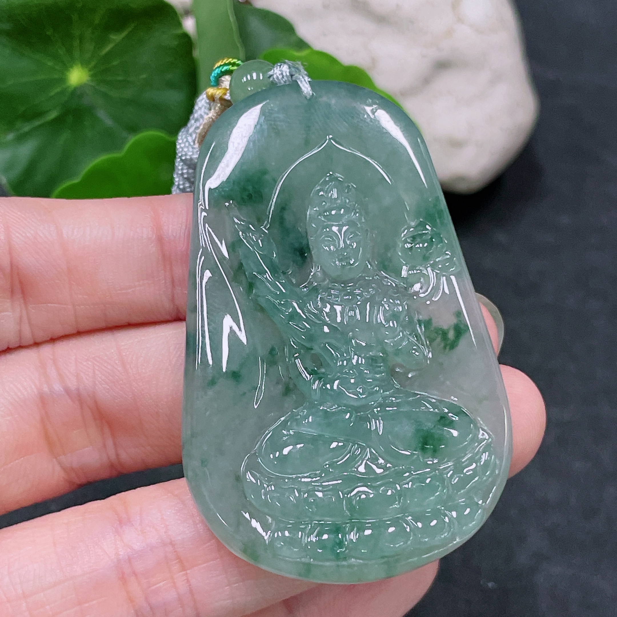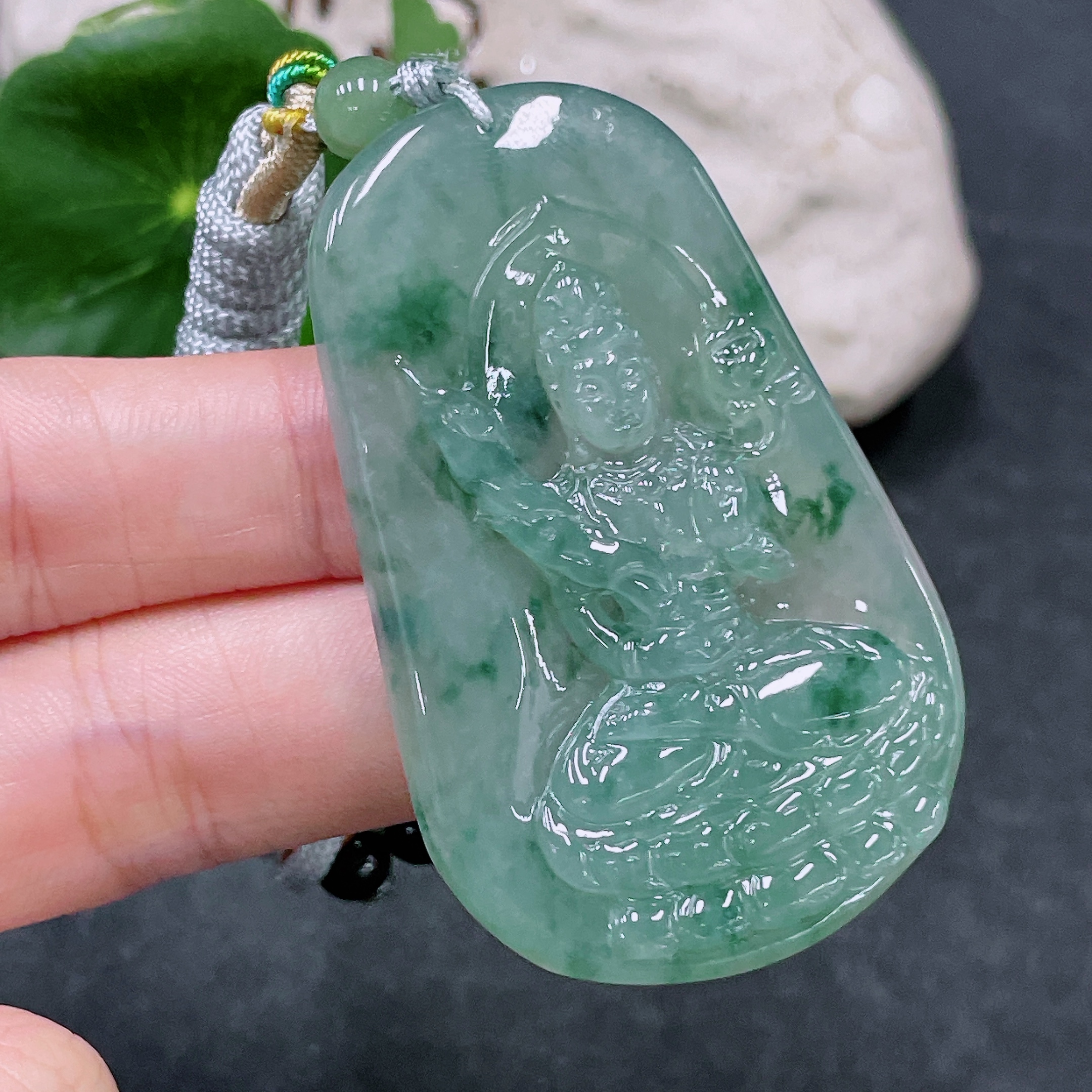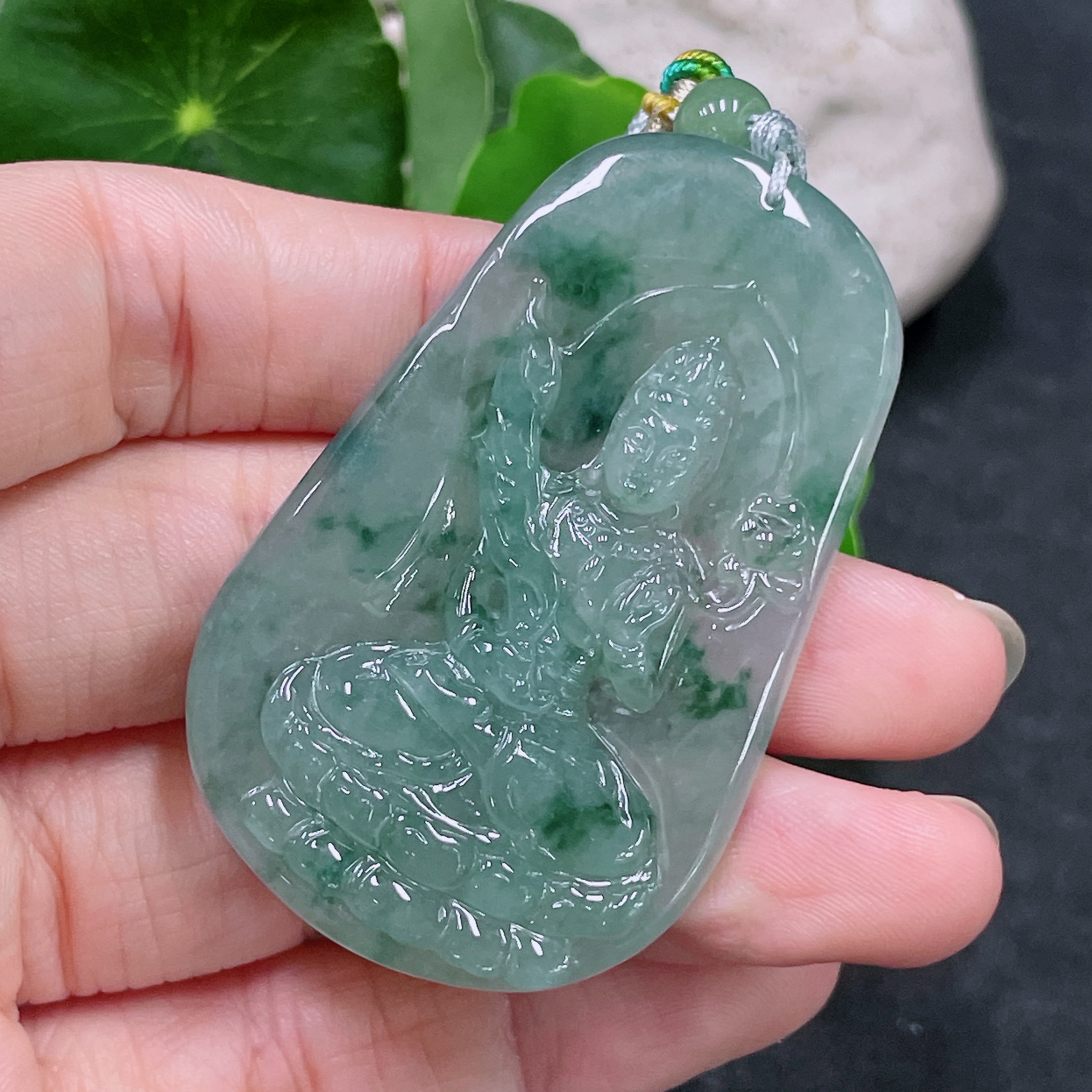 Jadeite Pendant Guanyin with Non-A Beads Including Rope Total Weight Approx. 24.13g