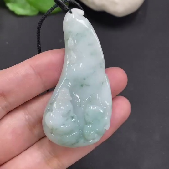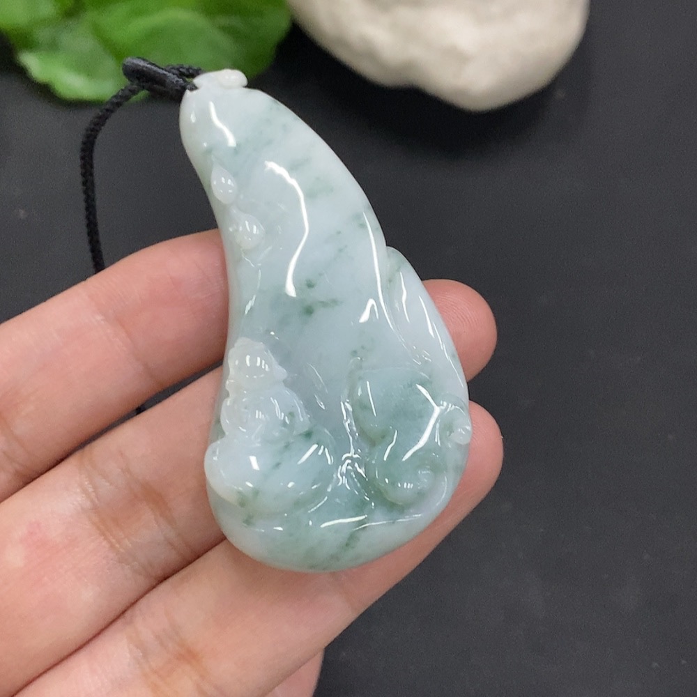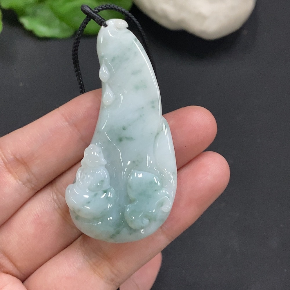 Jadeite Enlightenment Pendant with Cord, Total Weight Approx. 21.6g