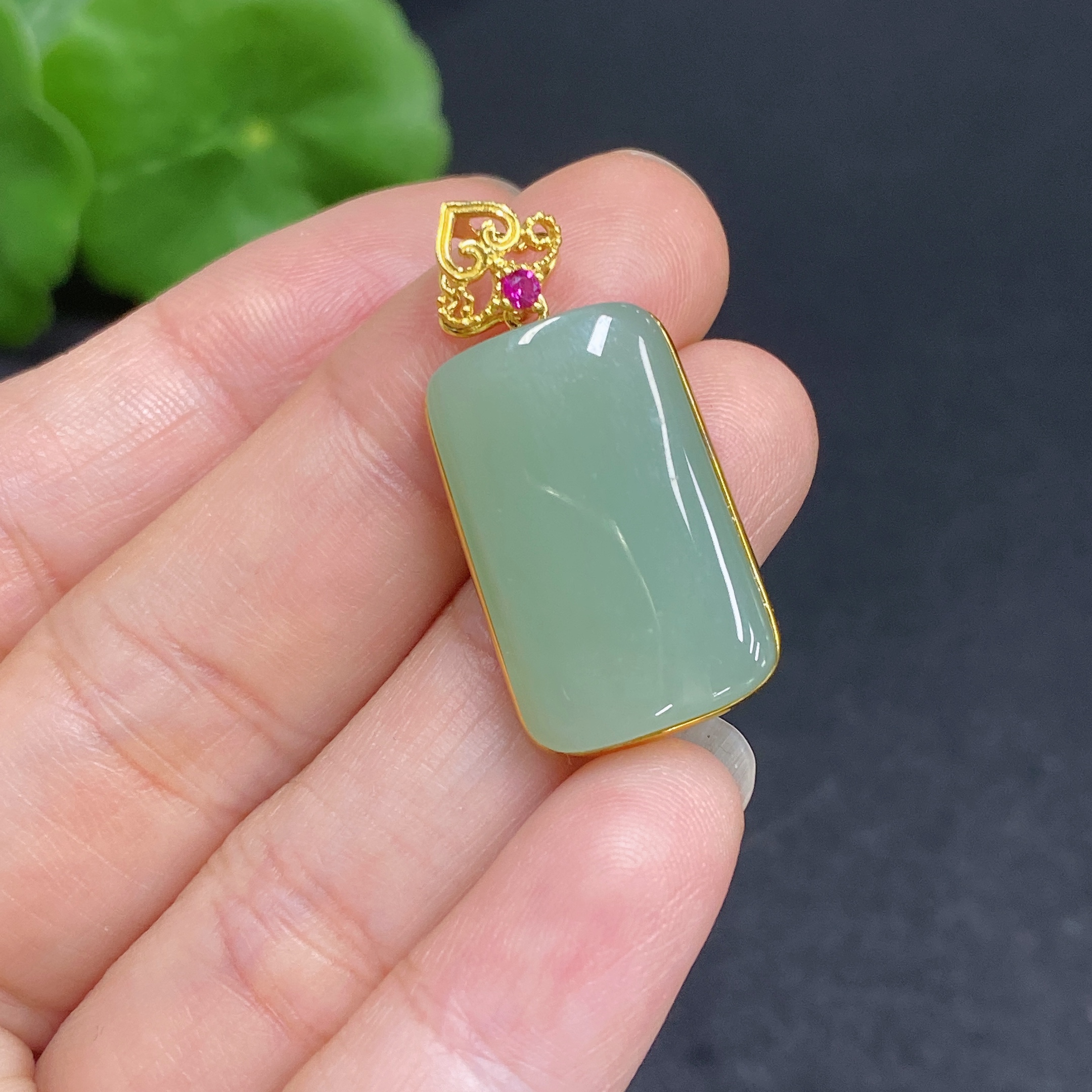 Hetian Jade Pendant with 18K Gold Inlay, Total Weight Approx. 4.5g