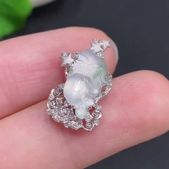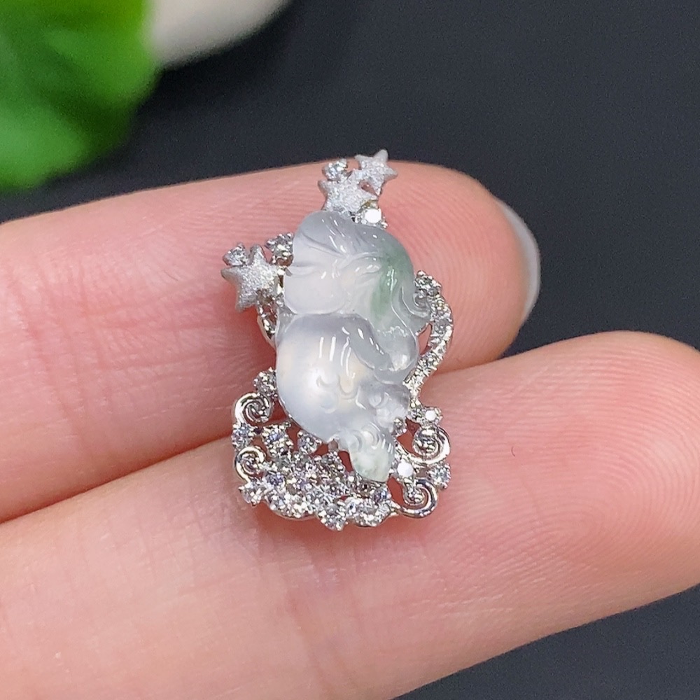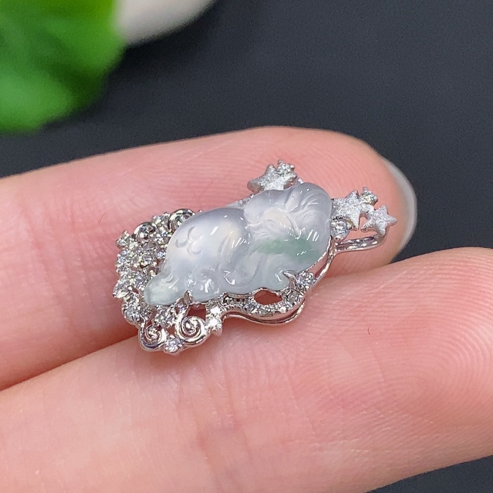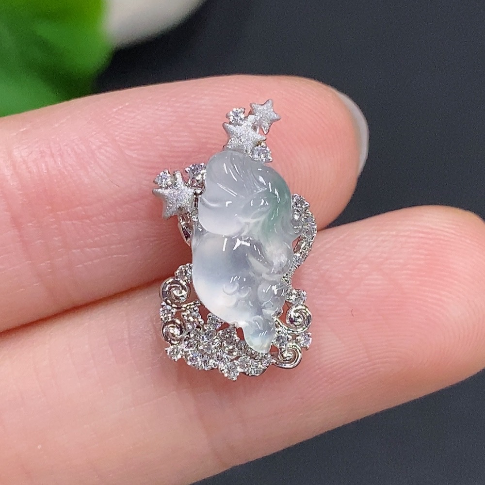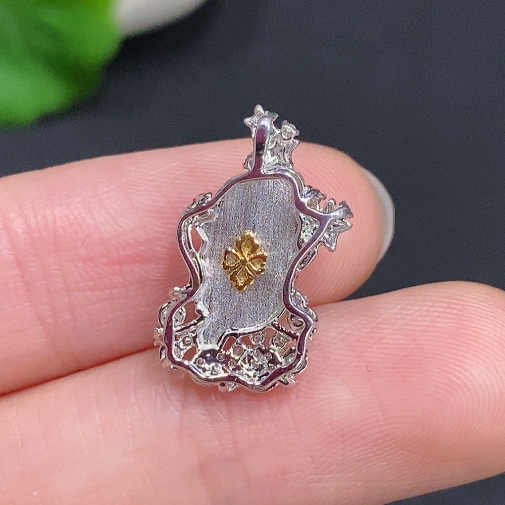 Jadeite Angel Pendant with 18K Gold and Diamond Accents, Total Weight Approx. 1.5g