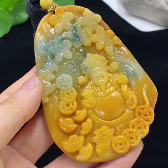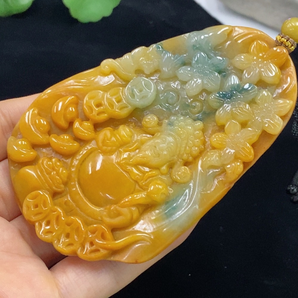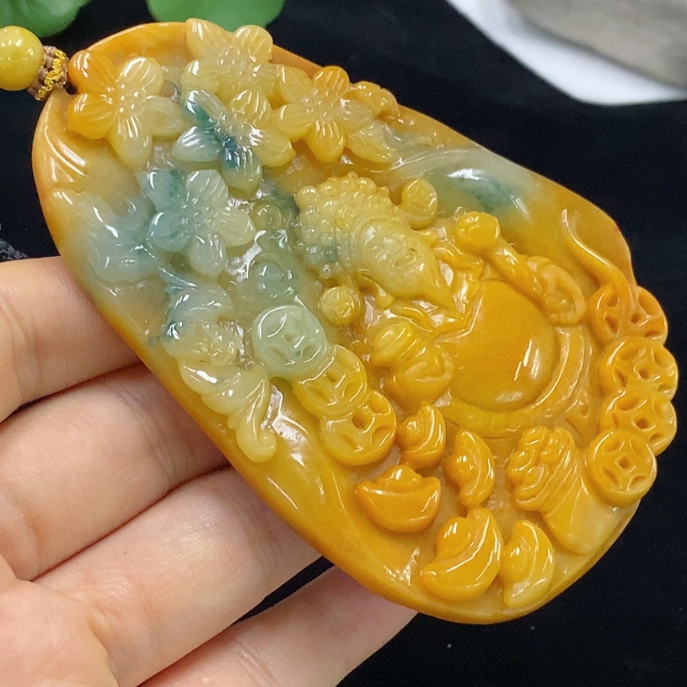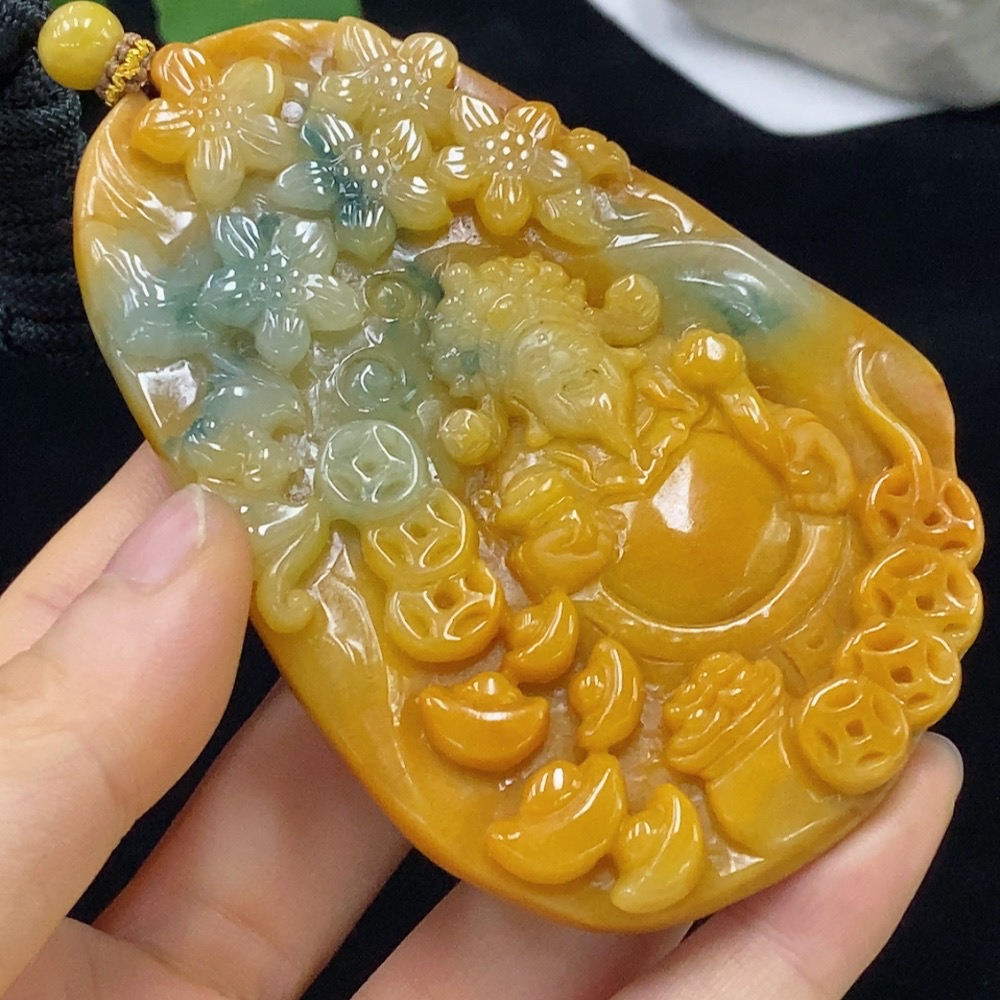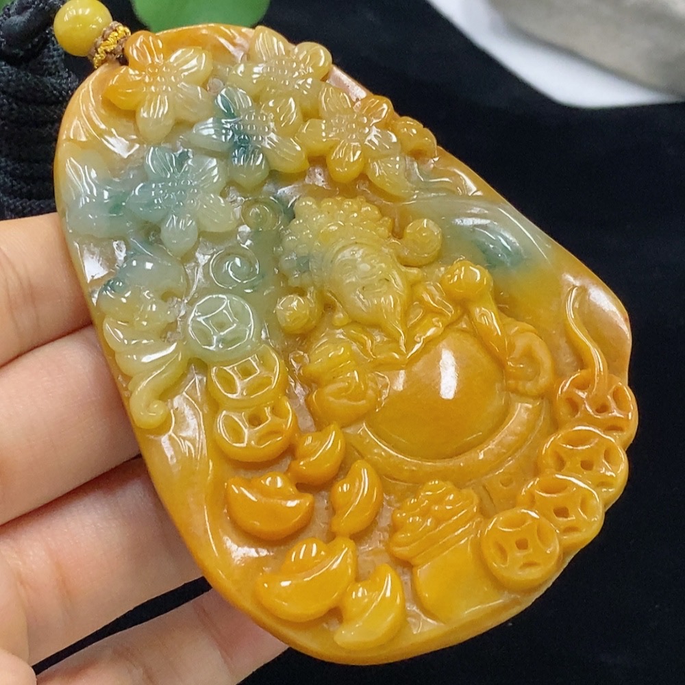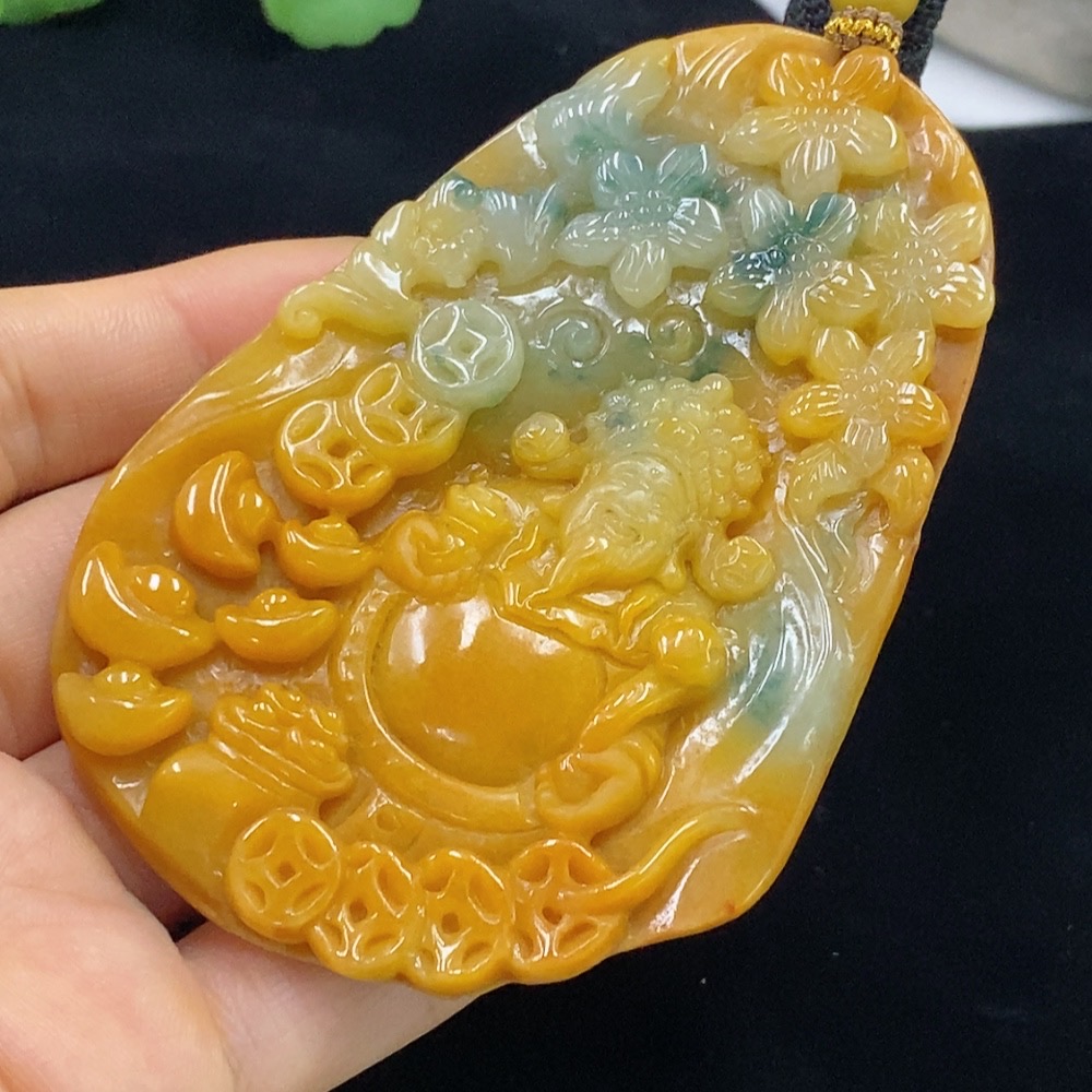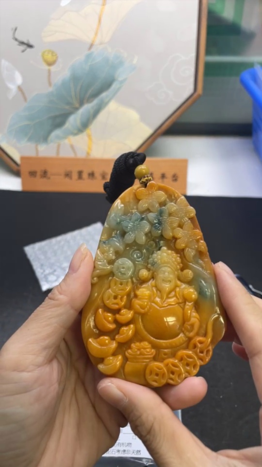 Jadeite God of Wealth Pendant Total Weight Approx. 97.05g (including rope weight) Color origin undetermined