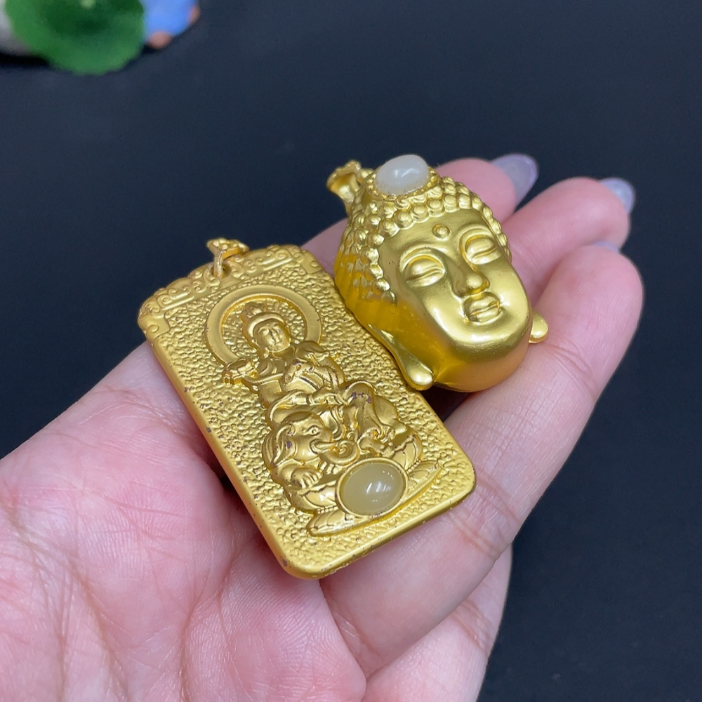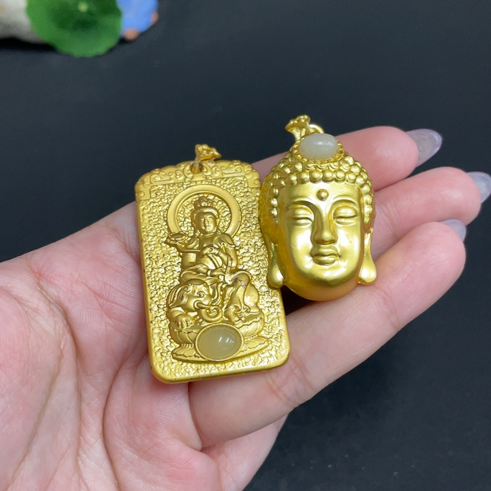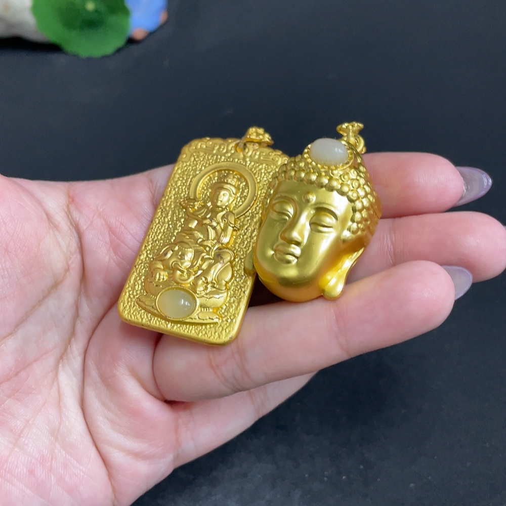 Hetian Jade Inlaid Pendant, Total Weight Approx. 45.7g, Non-Gold