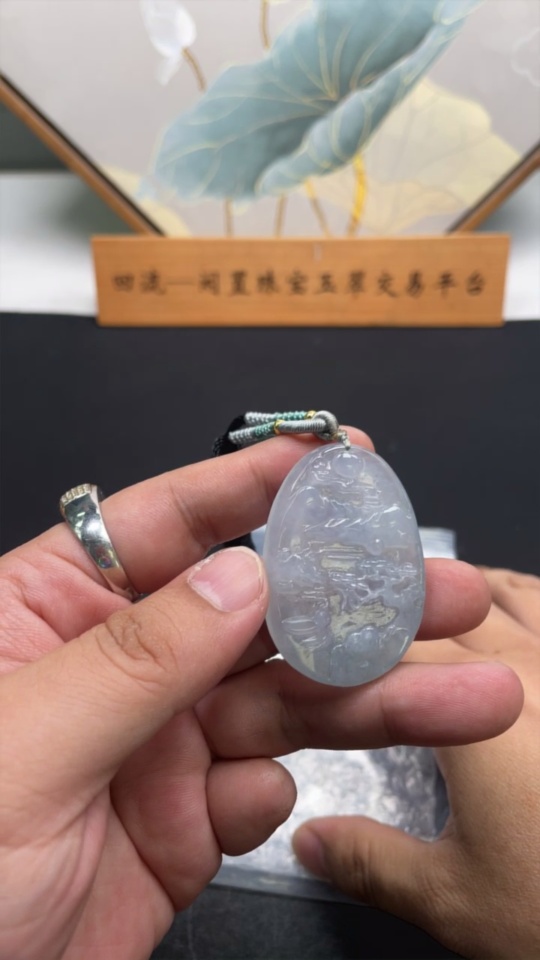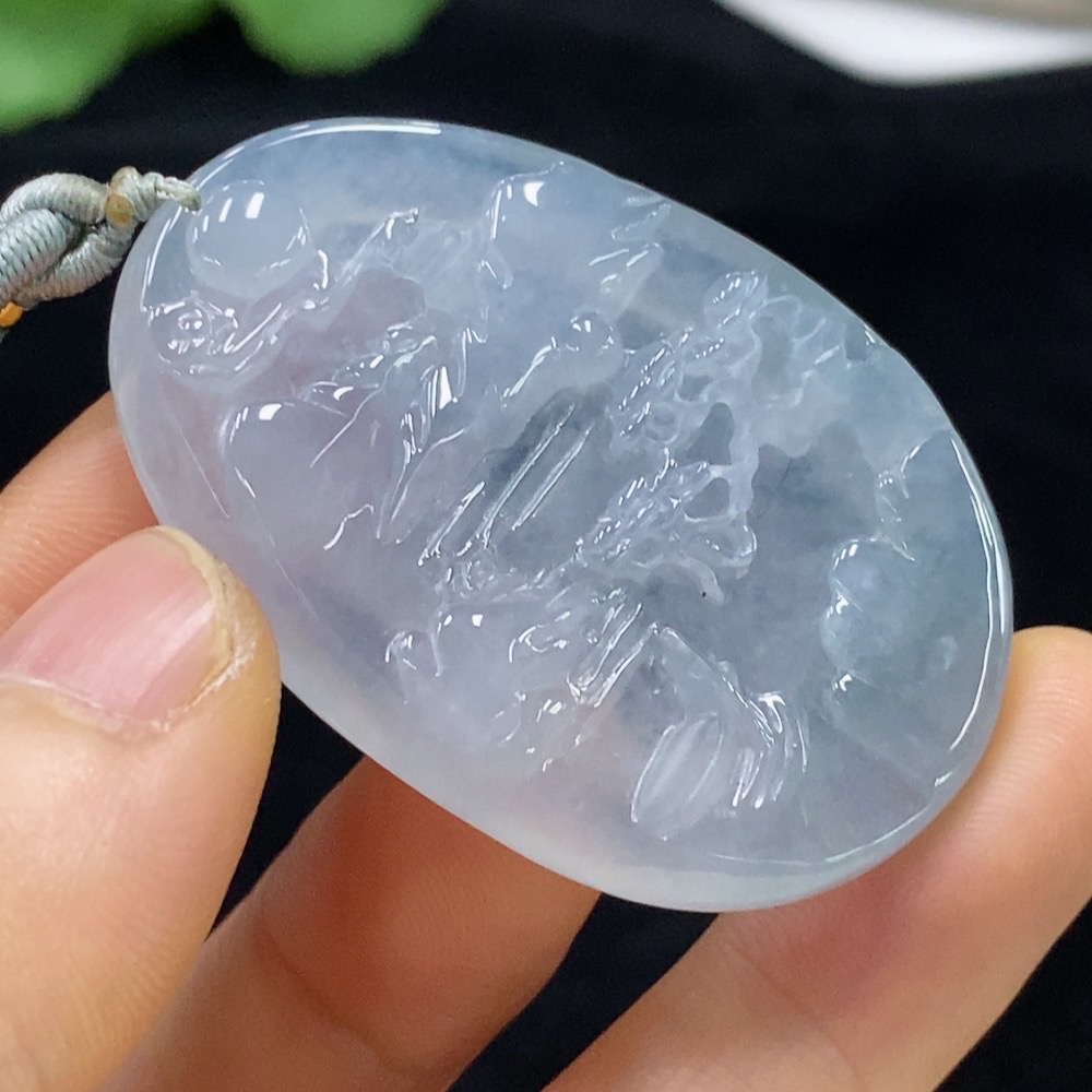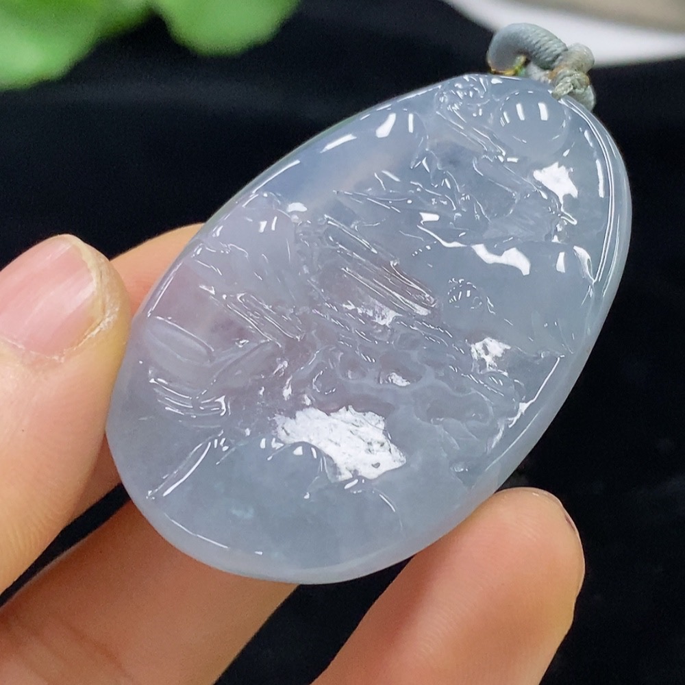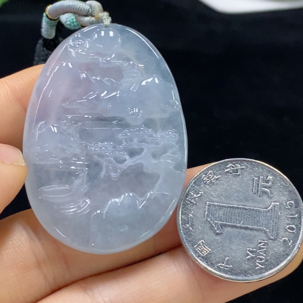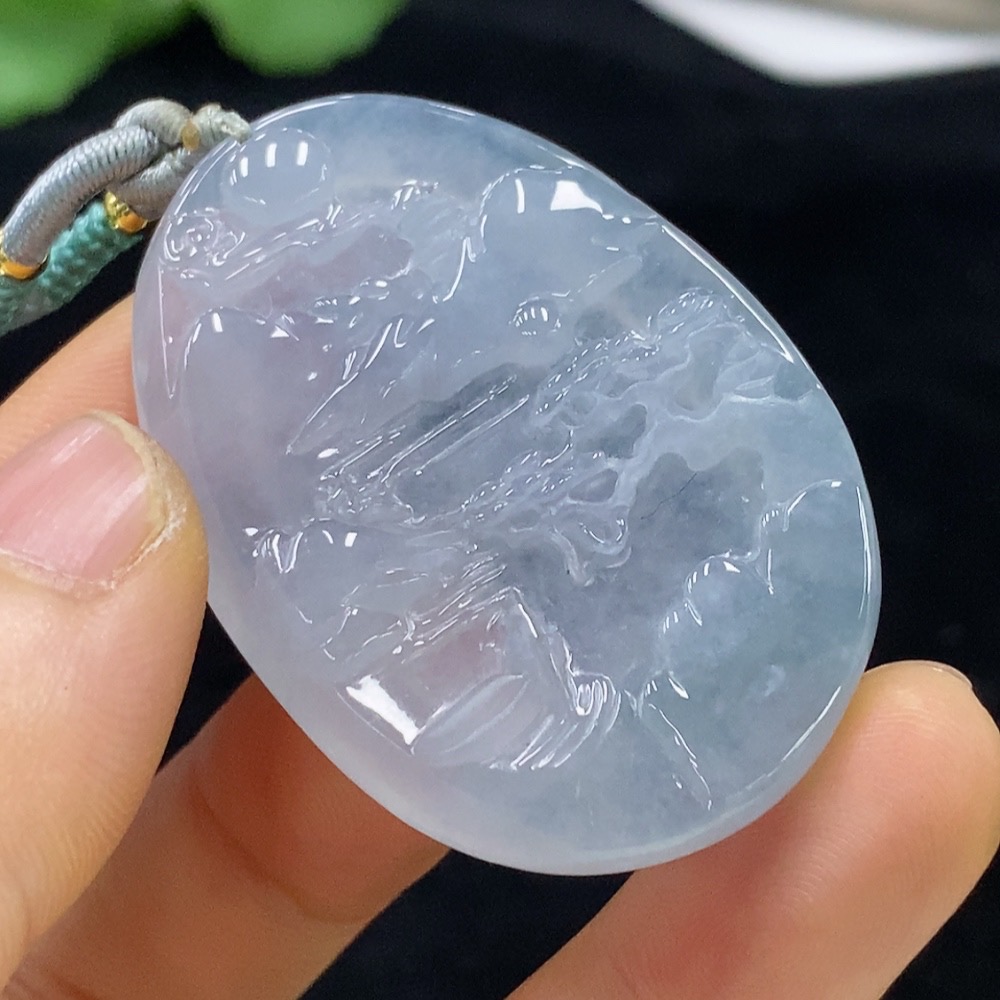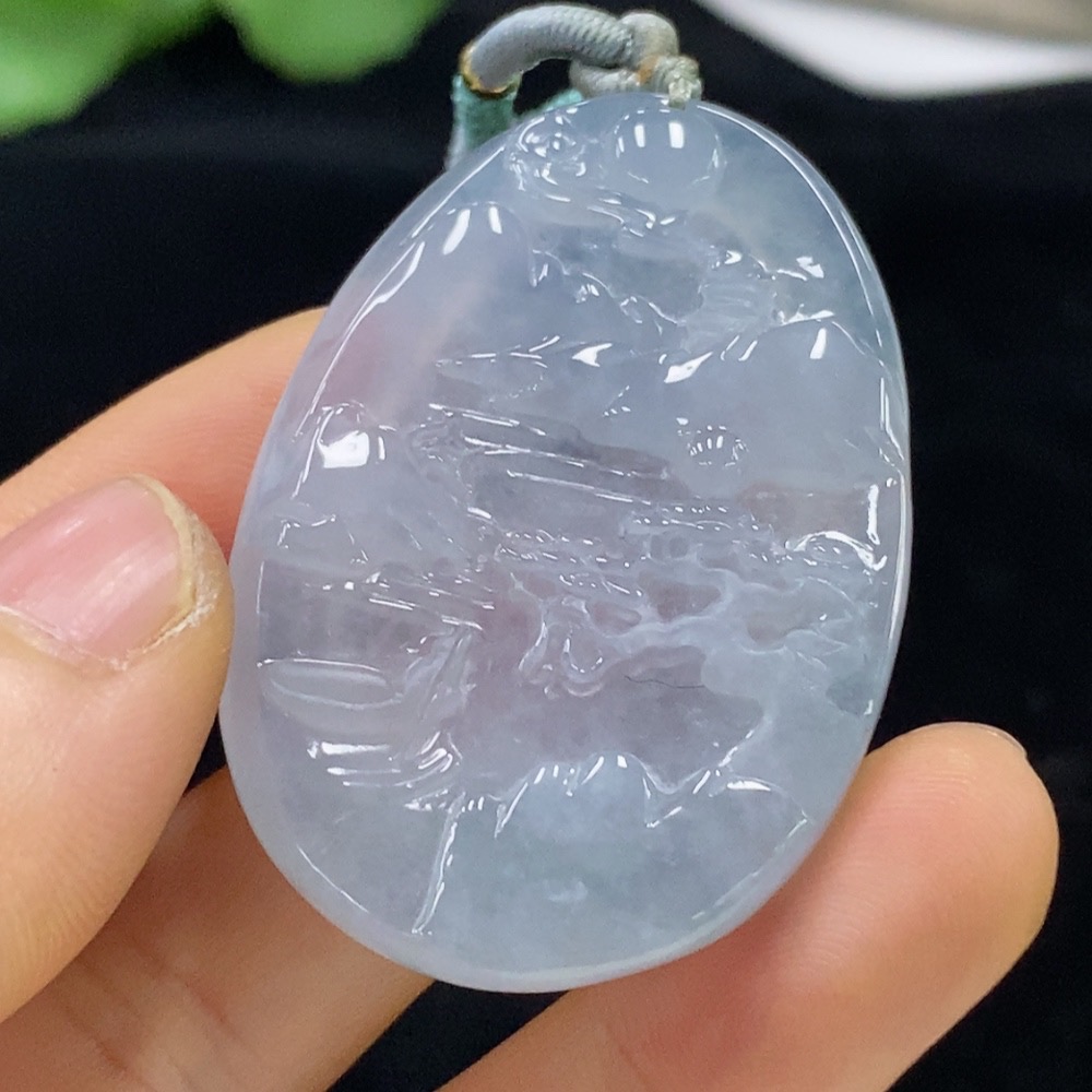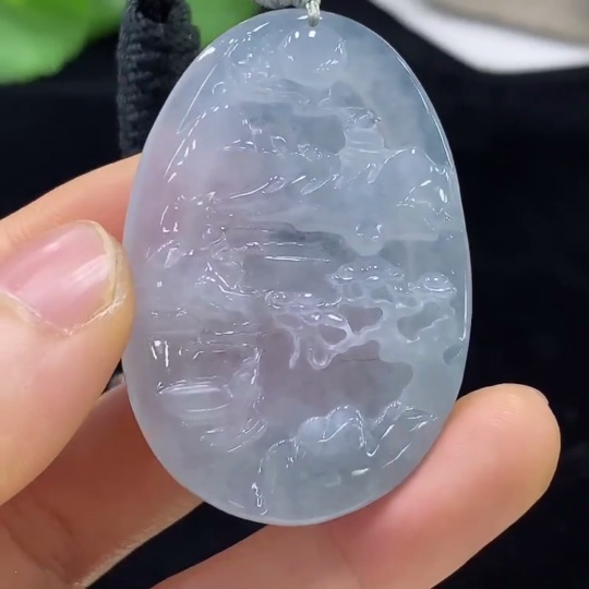 Jadeite Landscape Pendant Total Weight Approximately 23.69g (Including Cord Weight)