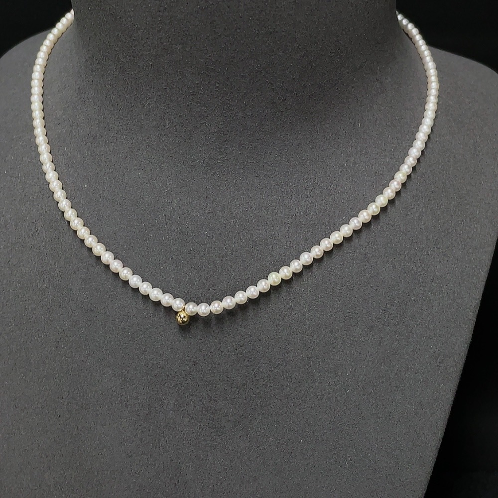 Pearl Necklace Marked Red Not Gold Rest 18K Gold Total Weight Approx. 6.98g Size About 3.4mm